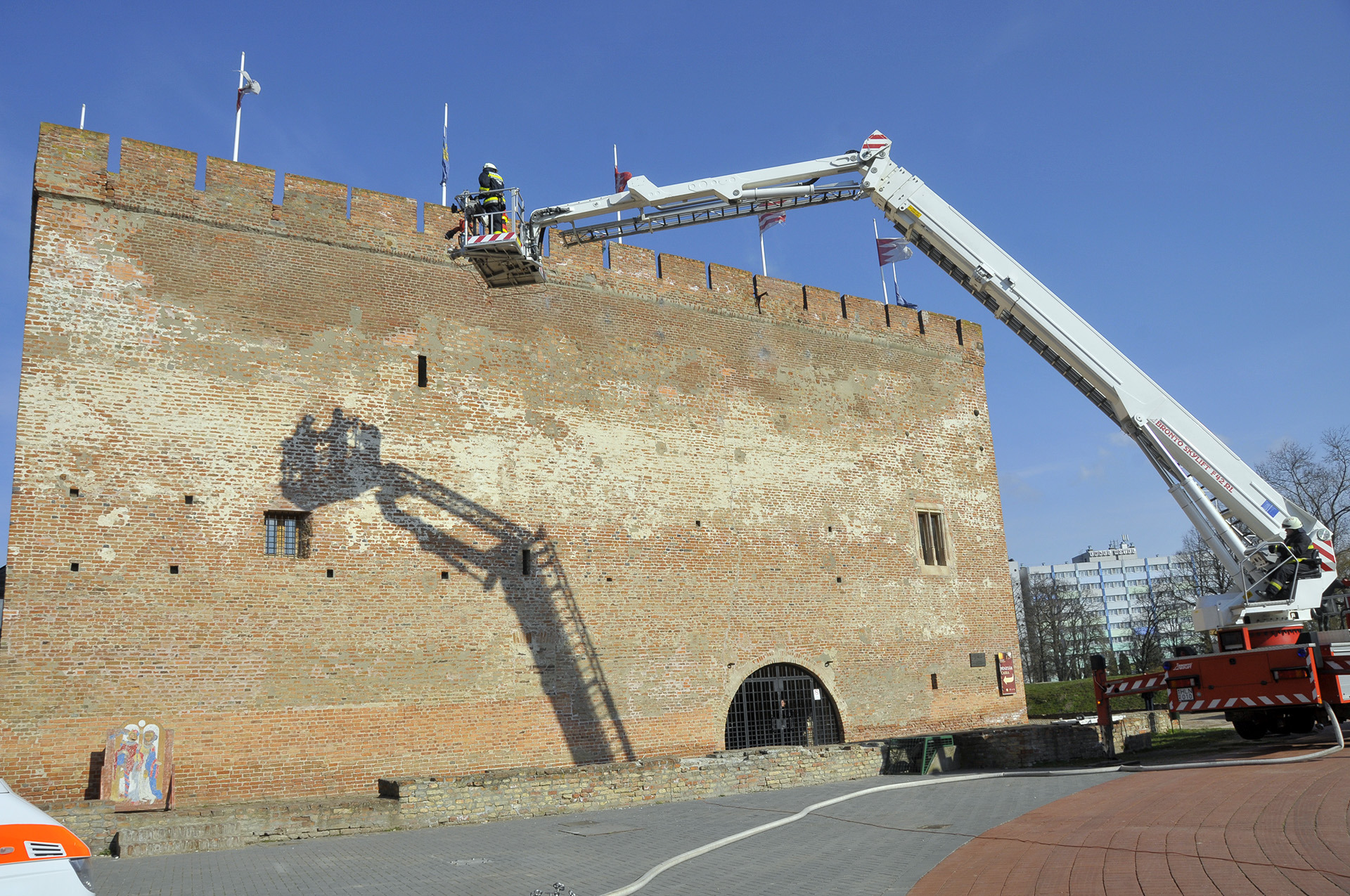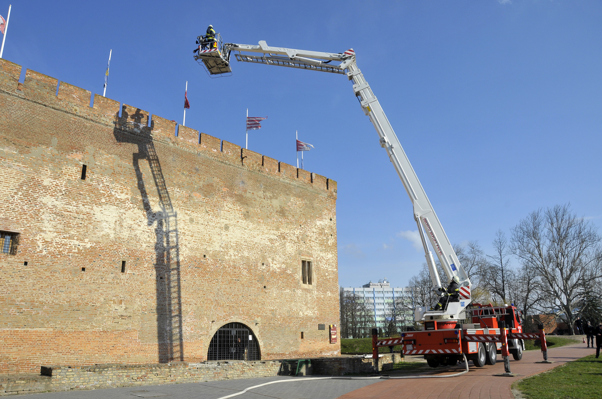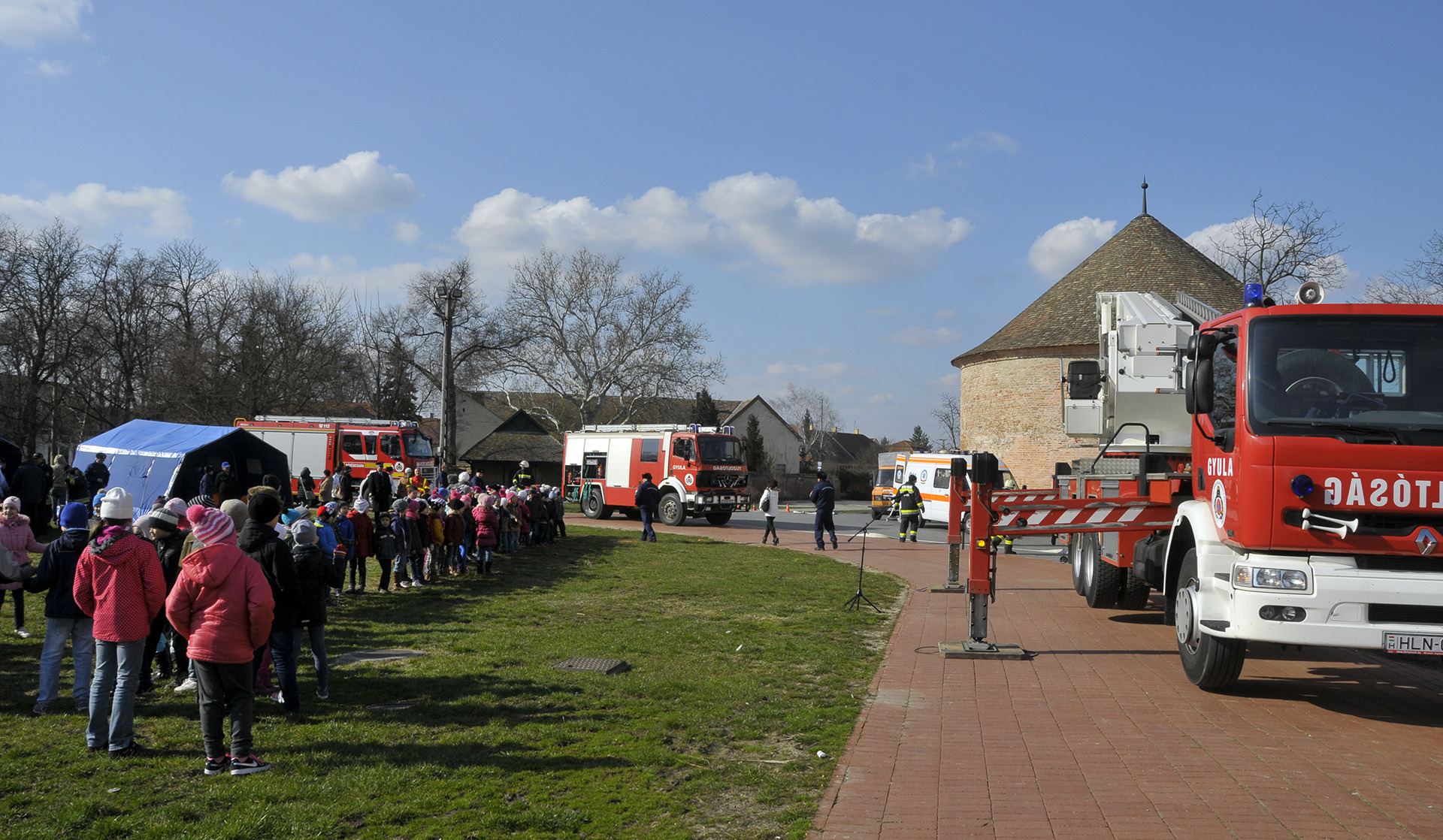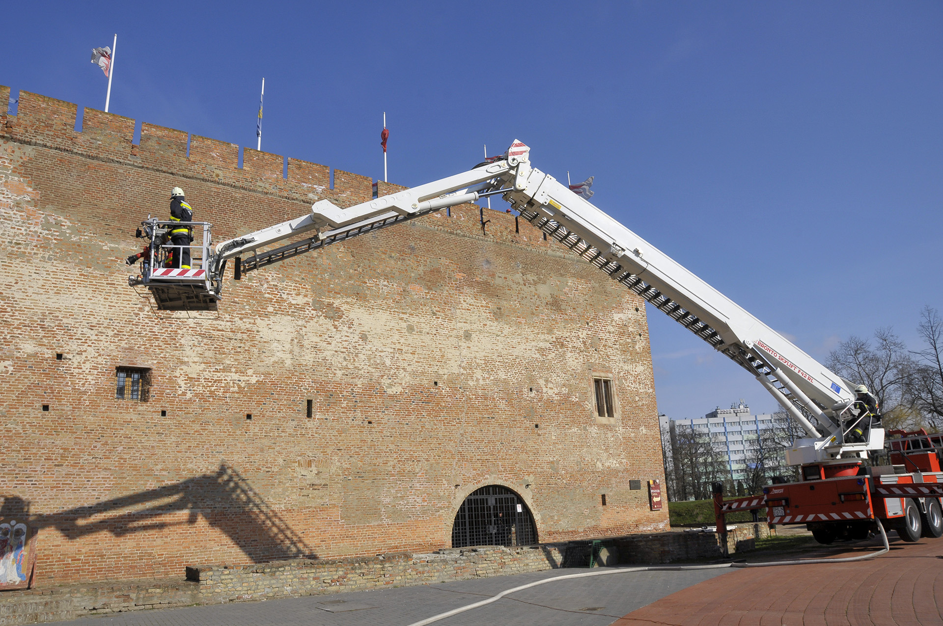 Látványos rendszerbeállító gyakorlat keretében ismerhették meg a gyulaiak a Bronto Skylift típusú, emelőkosaras, magasból mentő tűzoltószert március 6-án a gyulai várkertben. A járművet a Belügyminisztérium Országos Katasztrófavédelmi Főigazgatóságának főigazgatója, dr. Bakondi György tű. altábornagy bocsátotta Gyula város, illetve Békés megye rendelkezésére a közelmúltban.