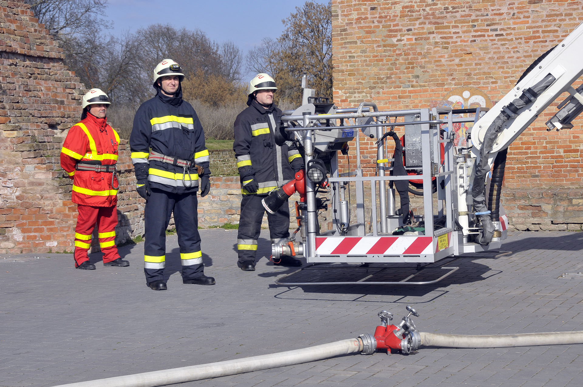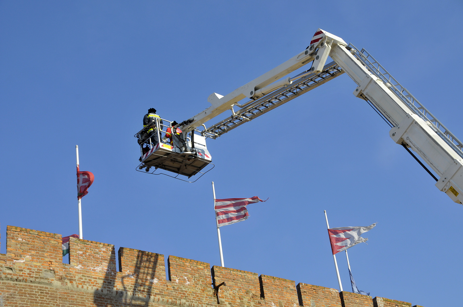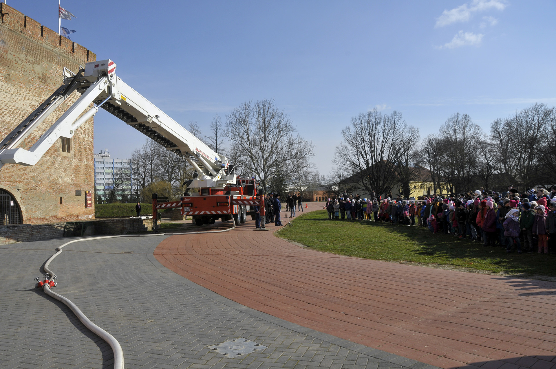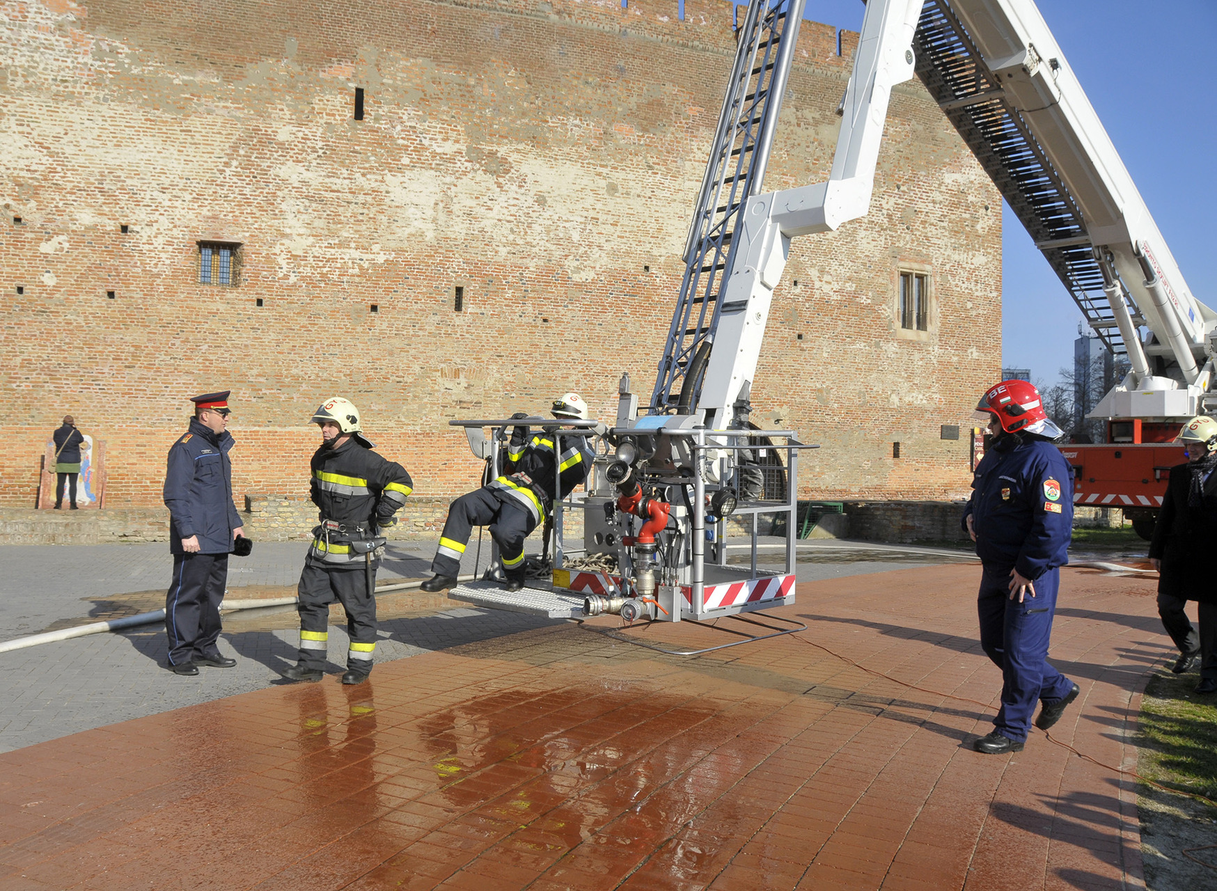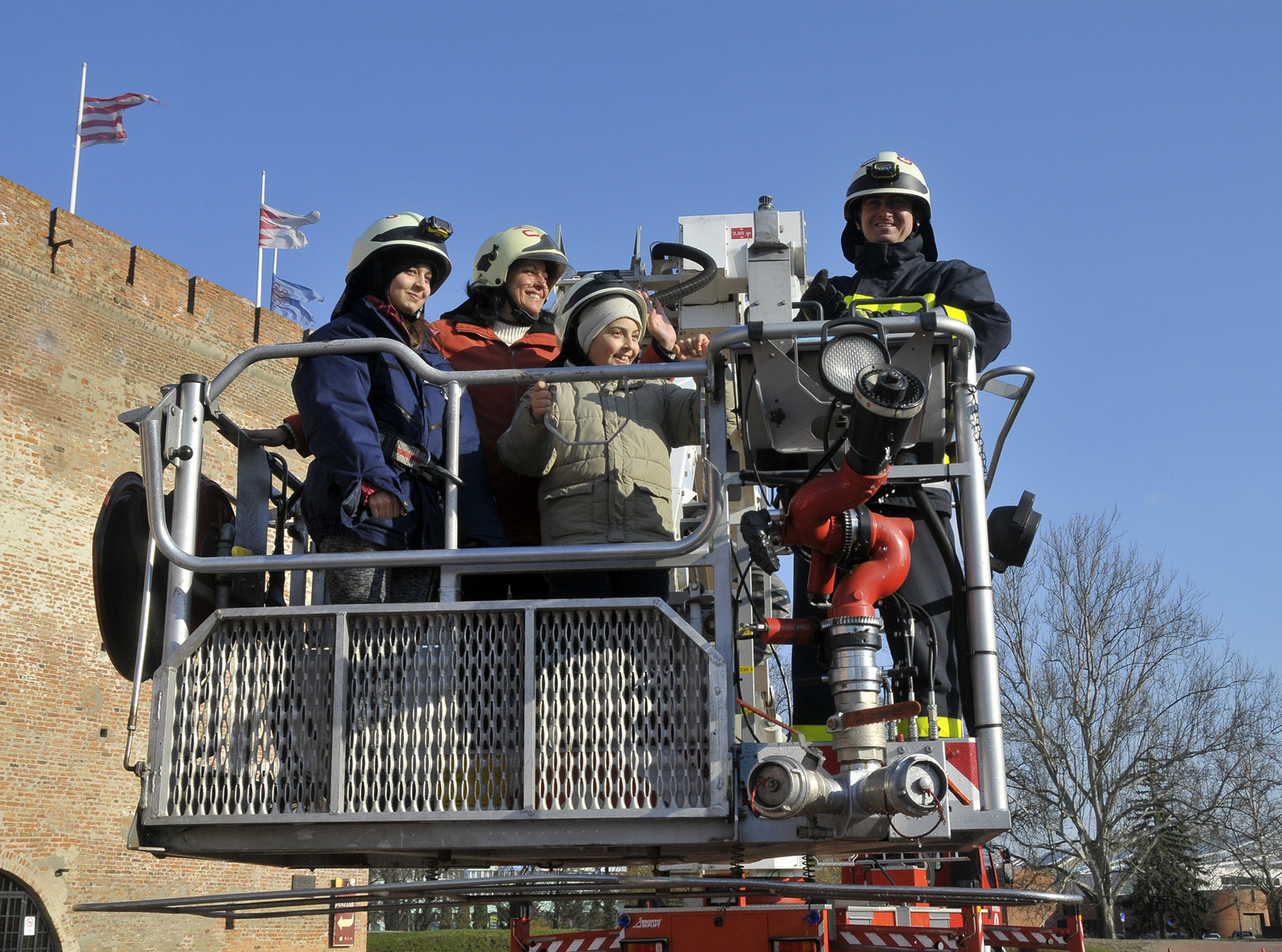A bemutató után a tűzoltók szigorú felügyelete mellett a közelgő nőnap alkalmából a legbátrabb hölgyek ki is próbálhatták, milyen érzés a "kosárban utazni".