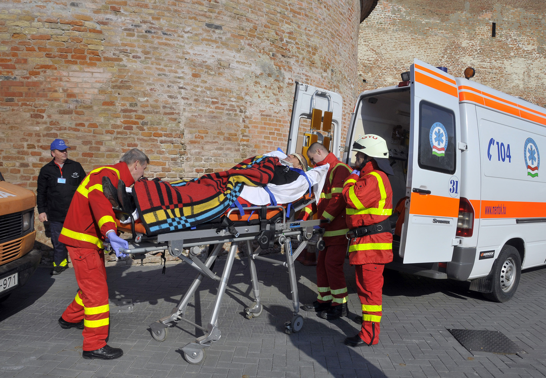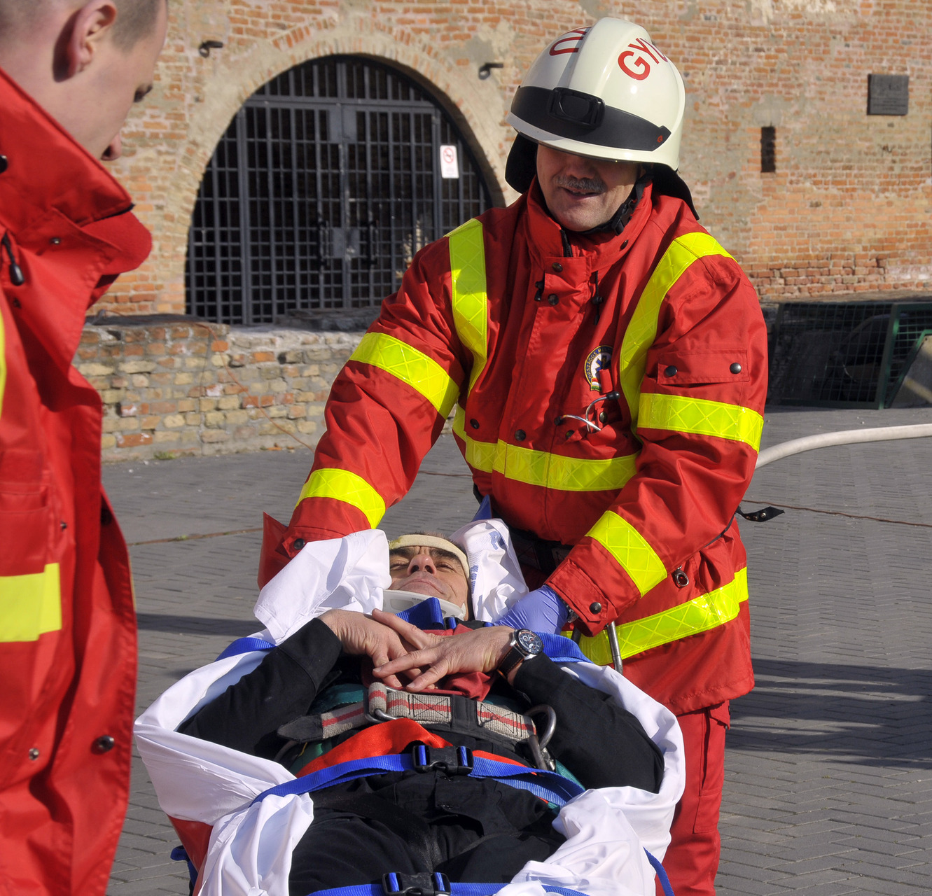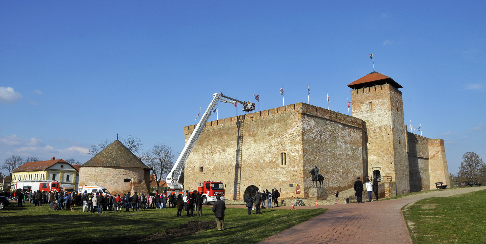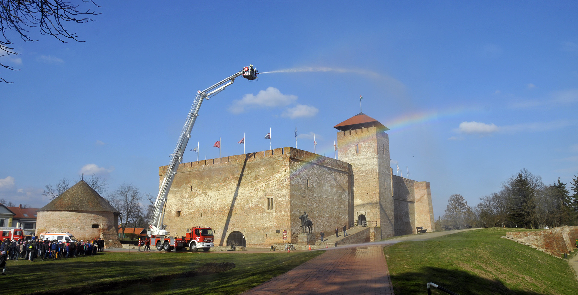 A rendszerbeállító szimulációs gyakorlatot Maczek Szilárd tűzoltó őrnagy, a Békés Megyei Katasztrófavédelmi Igazgatóság megyei tűzoltósági főfelügyelője vezényelte le. A bemutató során a Gyulai Hivatásos Tűzoltó-parancsnokság és a gyulai mentőállomás munkatársai a várfal legfelső szintjéről mentettek ki egy magasban rekedt karbantartót, majd figyelemmel kísérhettük a vízágyúval történő tűzoltás gyakorlatát is.