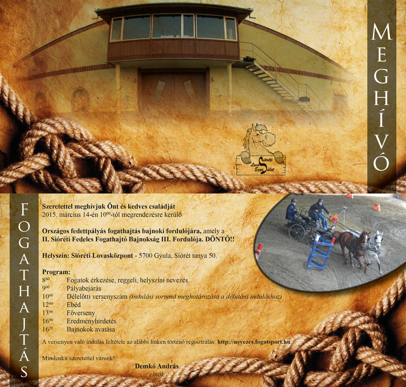 Második alkalommal rendezik meg a Sióréti Fedeles Fogathajtó Bajnokság III. fordulóját, illetve döntőjét március 14-én, szombaton a Sióréti Lovasközpontban (Gyula, Siórét tanya 50.).