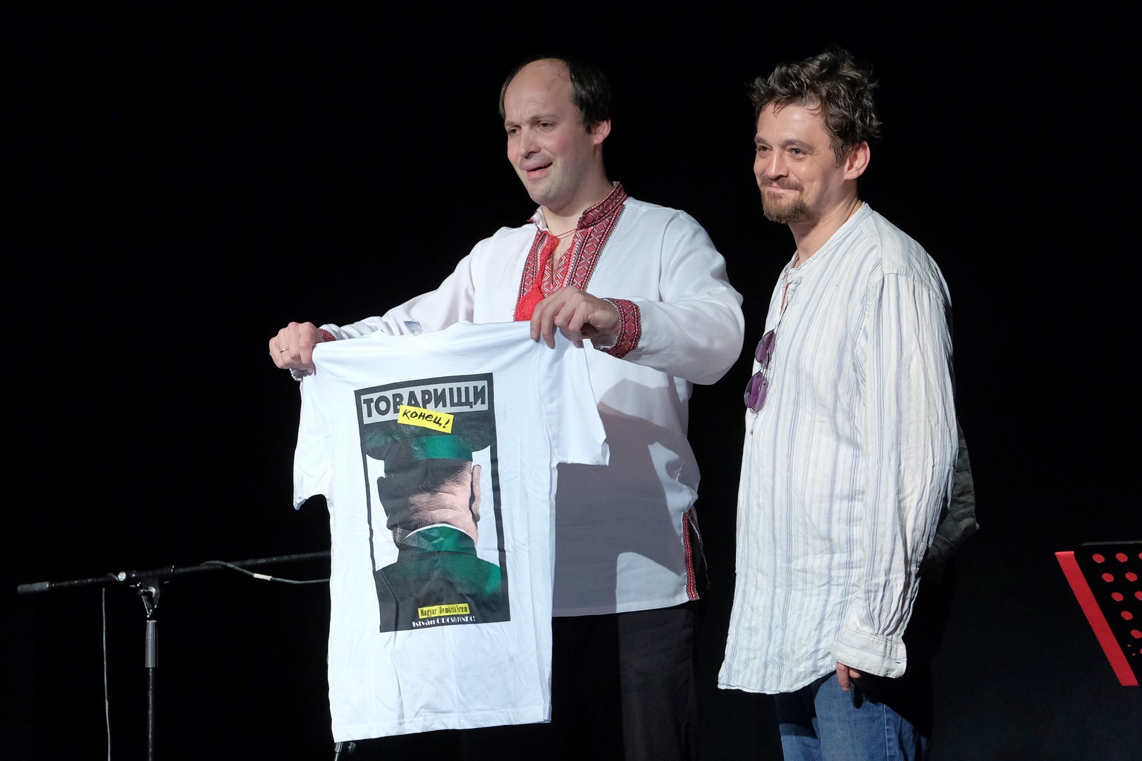 A kettejük közti játékra vevő a közönség, Vilnula Mihajlo minden oroszul kimondott szavának szimpatikus fogadtatása van, és bár láthatóan magyarul is mindent ért, a legvégén maga is elárulja, valamennyire beszéli nyelvünket, és azt is, hogy ez épp a 40. előadás, aminek köszöneteként szemünk láttára ajándékozza meg alkotótársát.