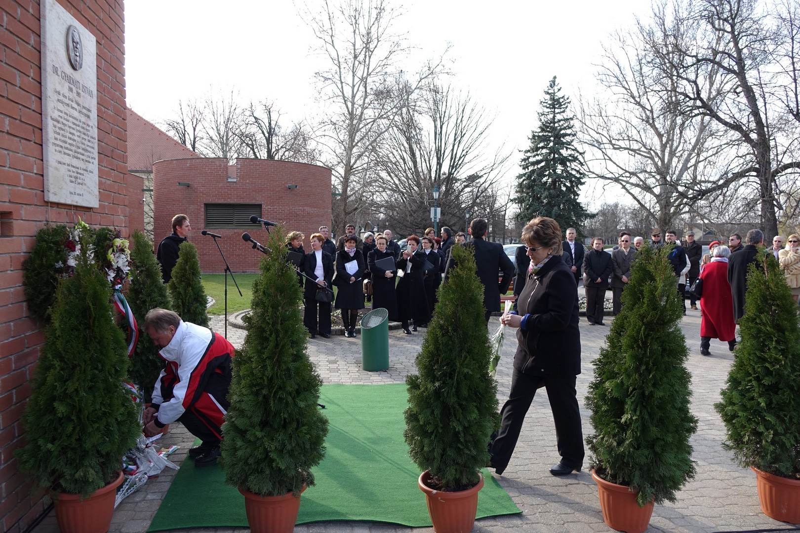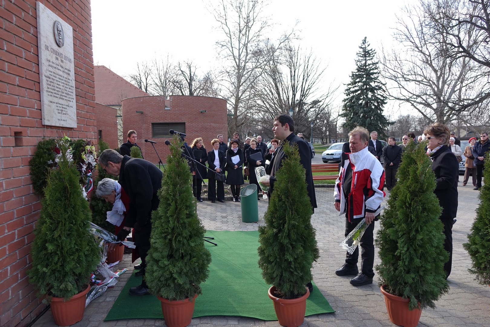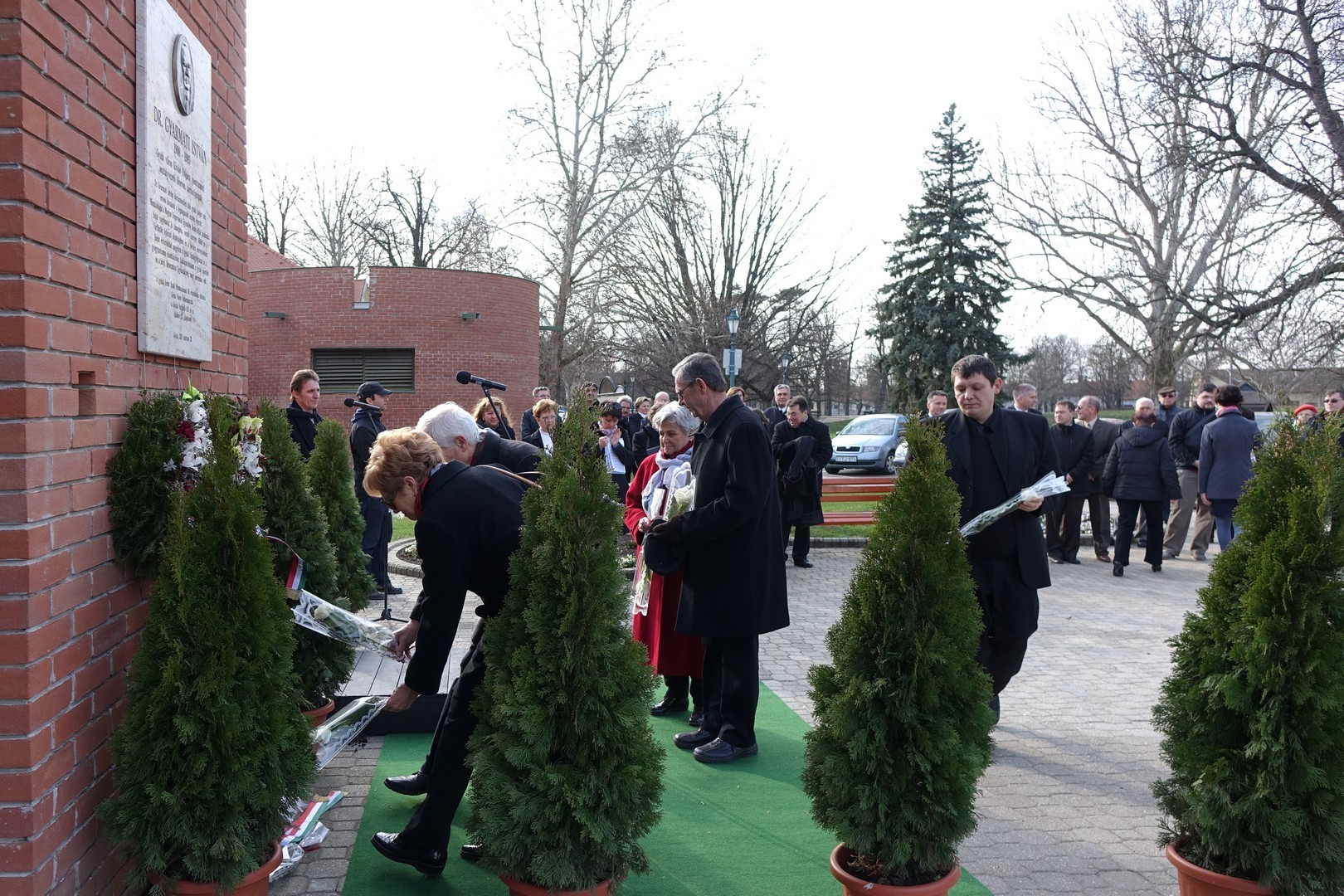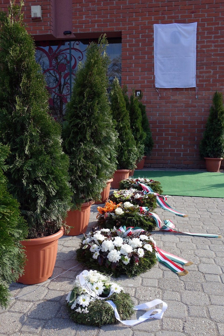 Az ünnepség végén a jelenlévők elhelyezték koszorúikat és virágaikat a fürdő téli főbejáratának falánál. Az ott helyet kapó emléktáblát Szőke Sándor szobrászművész és Csőke Péter kőfaragómester készítette.