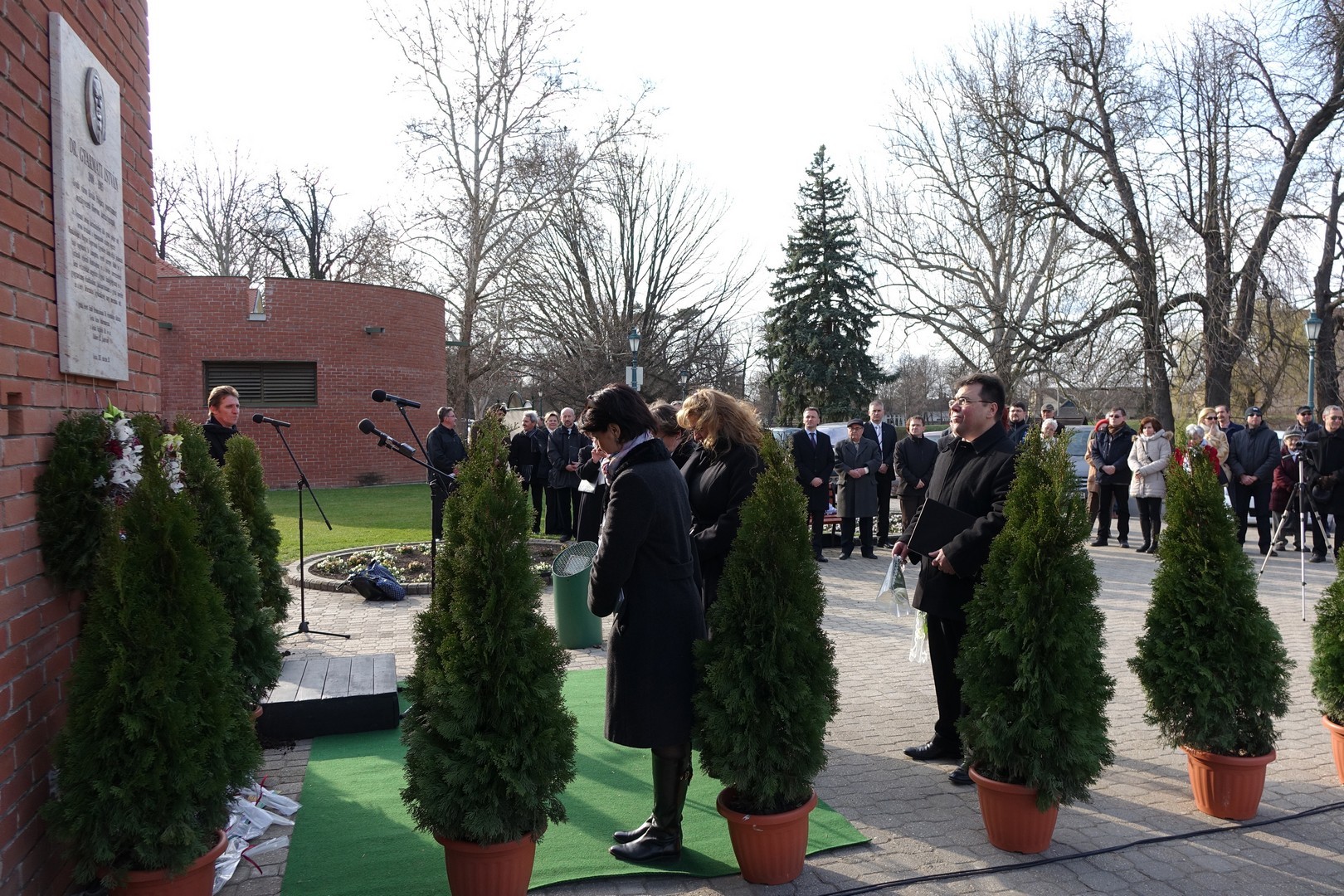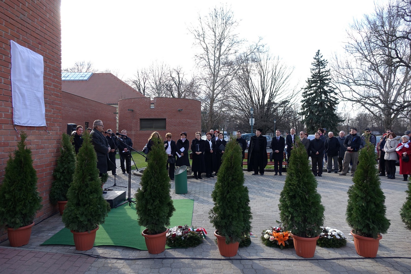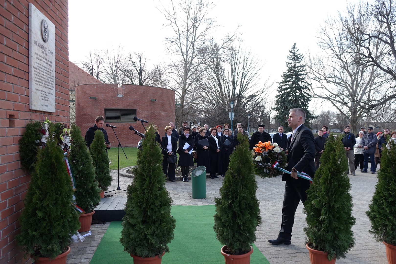 Az ünnepség végén a jelenlévők elhelyezték koszorúikat és virágaikat a fürdő téli főbejáratának falánál. Az ott helyet kapó emléktáblát Szőke Sándor szobrászművész és Csőke Péter kőfaragómester készítette.