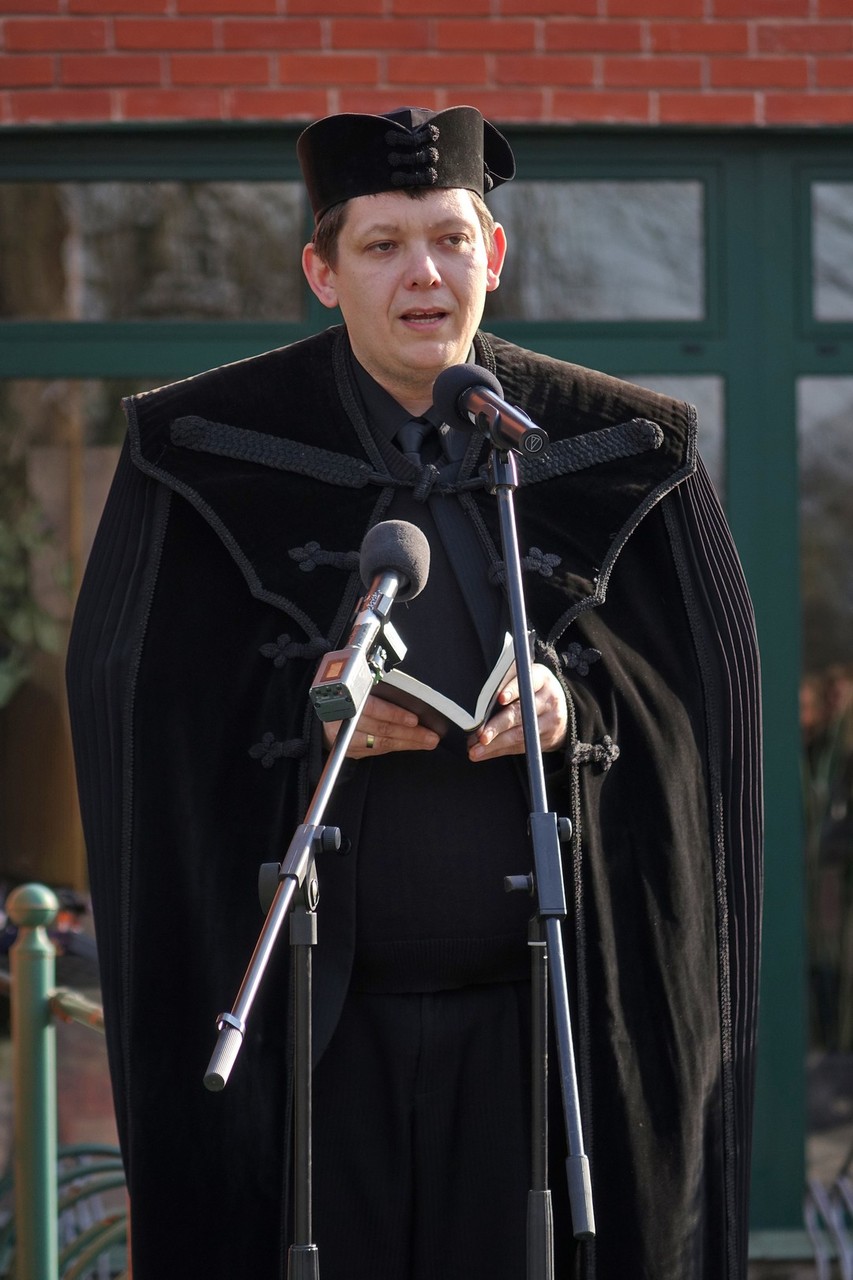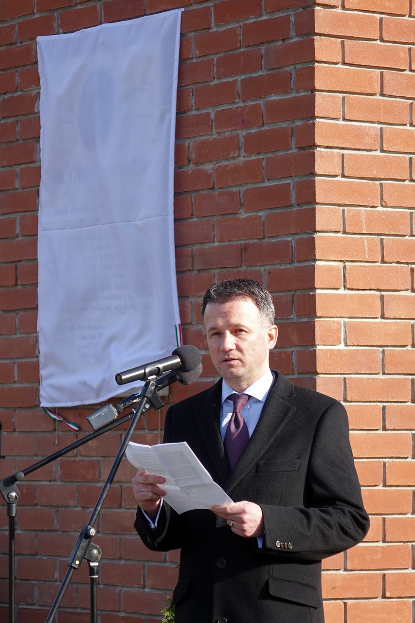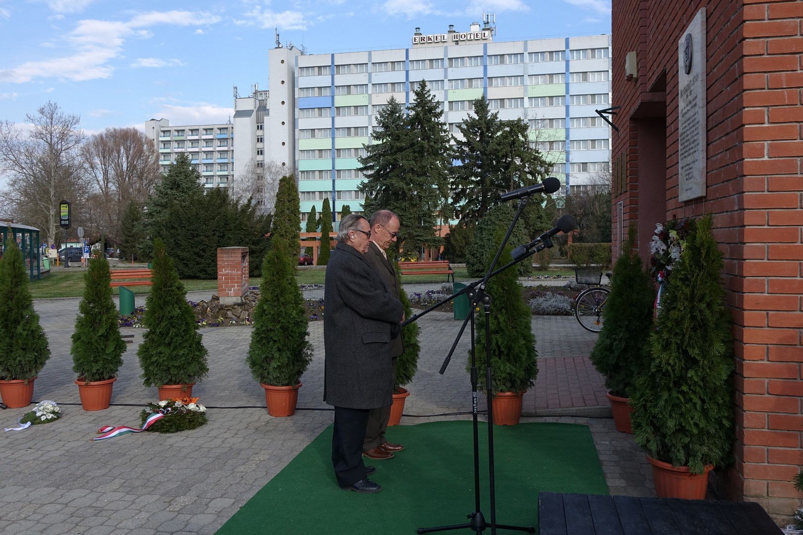 M. Szabó András, az emléktábla-állítás kezdeményezője, Gyula ’56-os polgármestere hangsúlyozta: a gyulai ’56-osok régi adósságukat törlesztették az emléktábla-avatással.