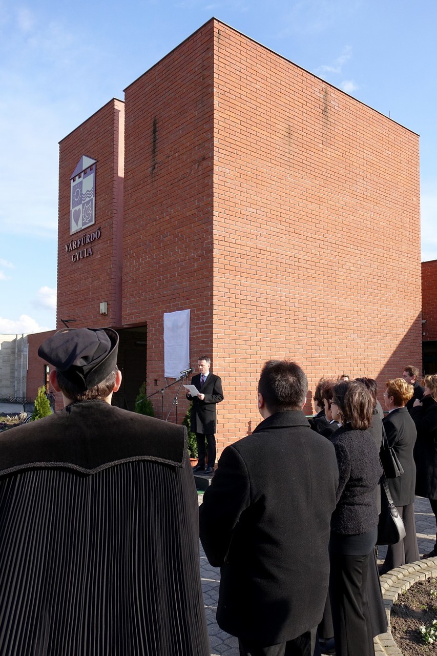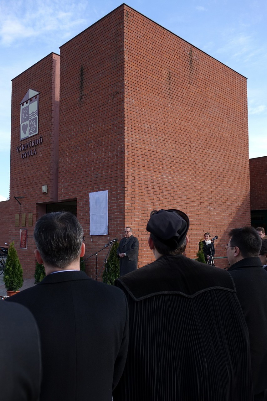 A rendezvényt a református kamarakórus előadása nyitotta meg, majd Boros László Attila, a Gyulai Várfürdő ügyvezetője köszöntötte a megjelenteket. Az igazgató kiemelte: az avatóünnepség azt bizonyítja, hogy a város és a Gyulai Várfürdő méltón ápolja hagyományait, emlékezik meg azokról, akik munkájukkal sokat tettek Gyuláért.