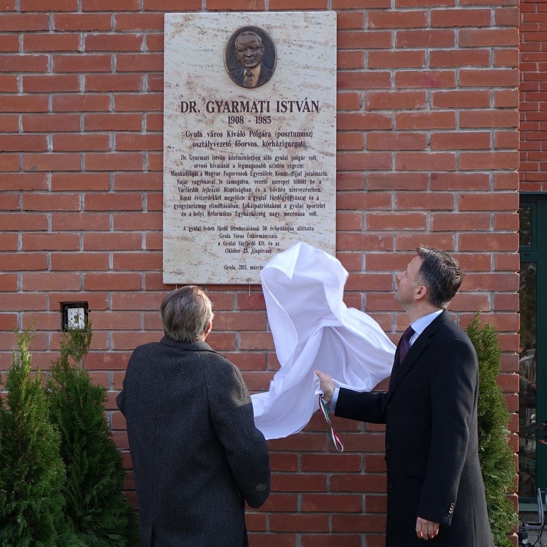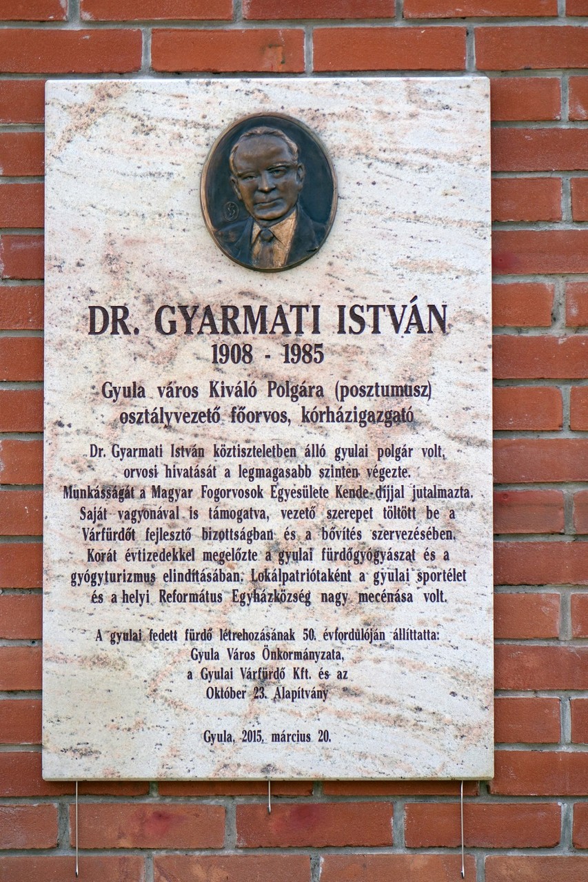 Az orvos 1945-ben kezdeményezte, hogy a kórház területhez juthasson, és gyógyfürdőt alakíthasson ki a kastély környékén – hangzott el a megemlékezésen. Dr. Görgényi Ernő kiemelte: dr. Gyarmati István felismerte a fürdőgyógyászatban és az erre alapozható gyógyászati turizmusban rejlő lehetőségeket, a gyulai hévíz gyógyításáról készített szakvéleményét a megyei kórház főorvosi kara 1967-ben felterjesztette az Egészségügyi Minisztériumhoz.