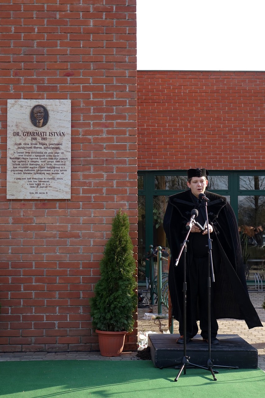 – A főorvos gyülekezetünk néhai főgondnoka volt, és számos egyéb egyházi tisztséget is betöltött. Élete példa arra, hogy az Istenbe vetett élő hit gyökeret és szárnyakat ad – fogalmazott Baráth János református lelkipásztor. Mint kiemelte, dr. Gyarmati István „korát megelőzve olyan lehetőségeket ismert fel, amelyek megvalósítása nélkül sem gyülekezetünk, sem városunk nem tartana ott, ahol most tart”.