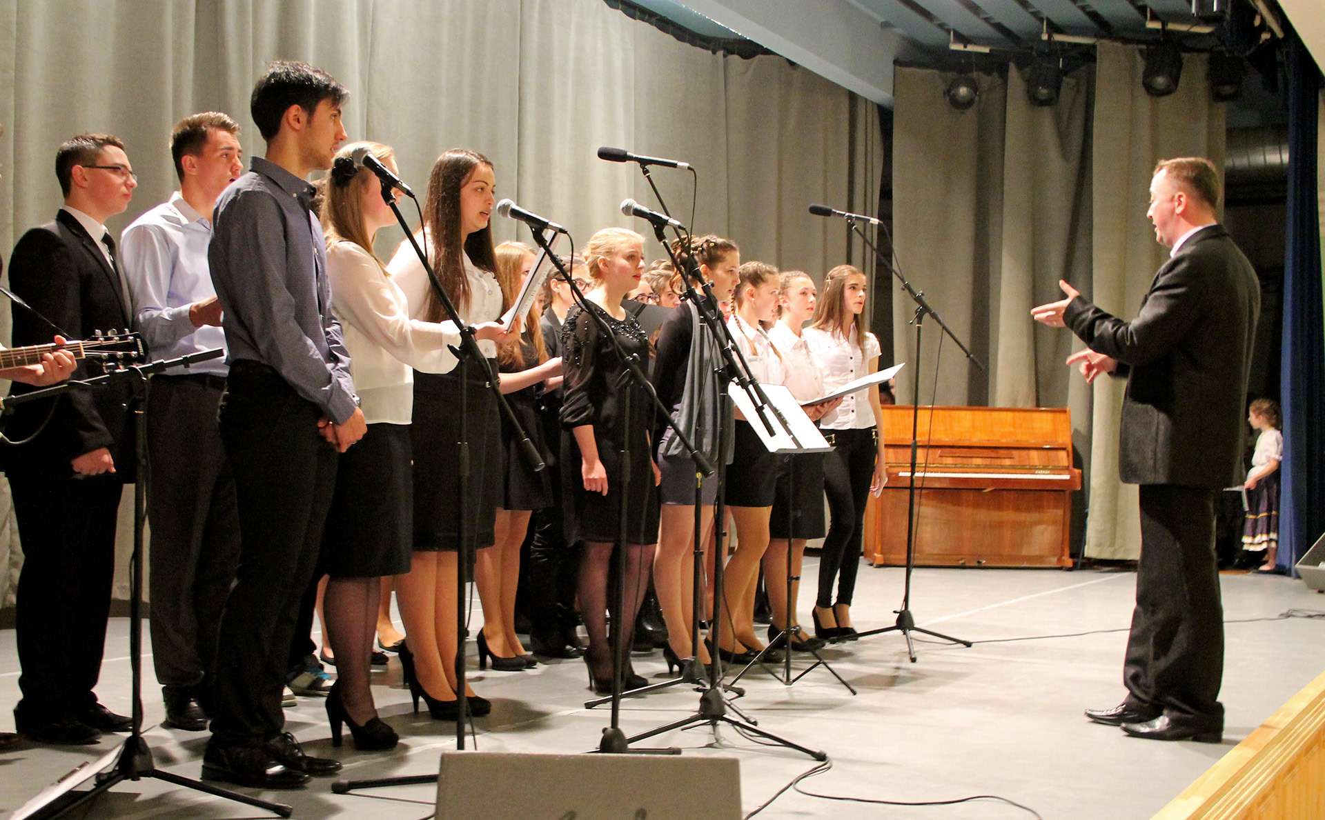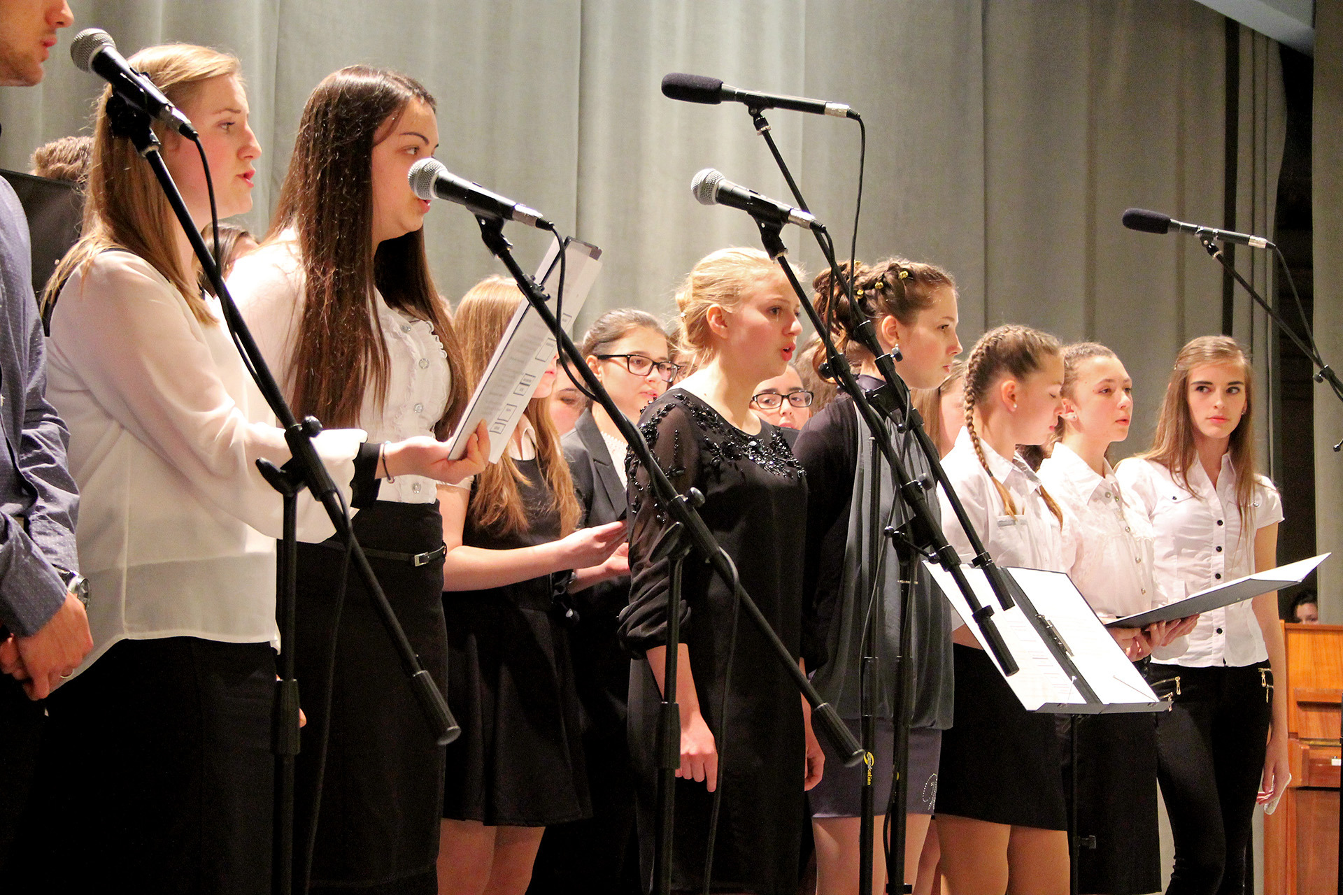 A mintegy 280 vendég az iskola kórusának kedves műsorát hallgathatta meg, majd a gimnázium igazgatója, Czeglédiné dr. Gurzó Mária román és magyar nyelven is köszöntötte a jelenlévőket.