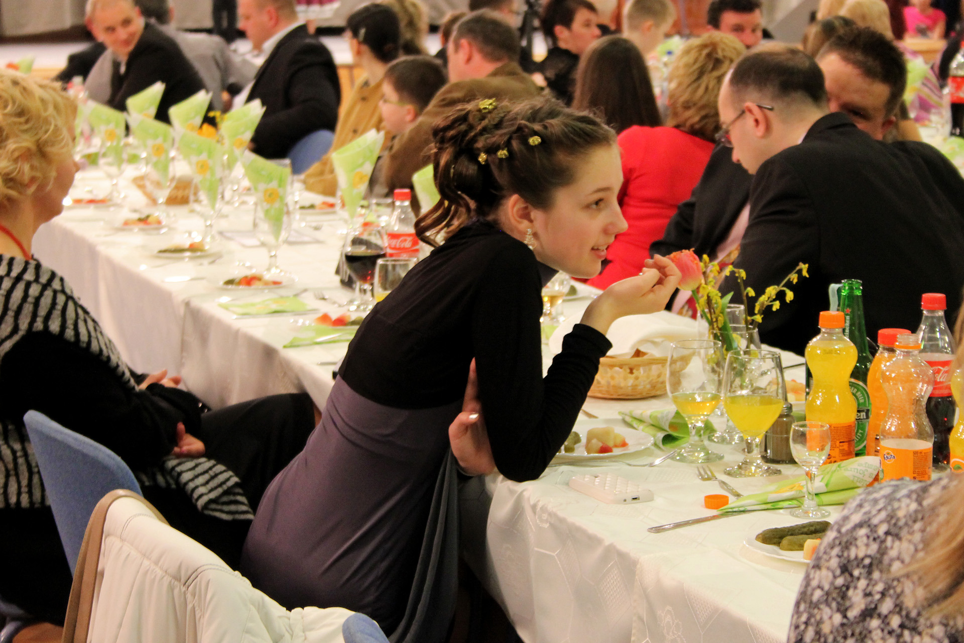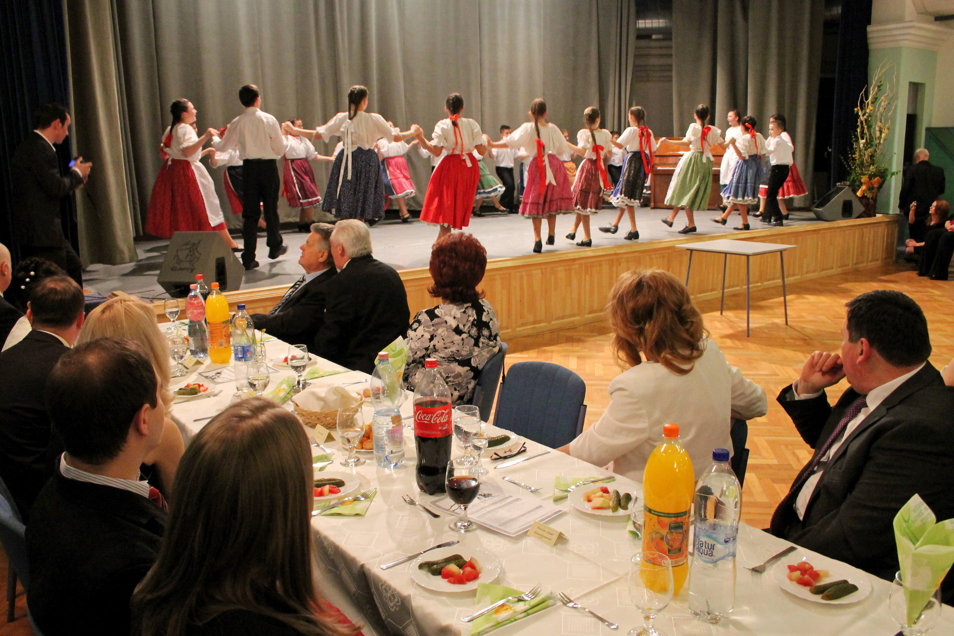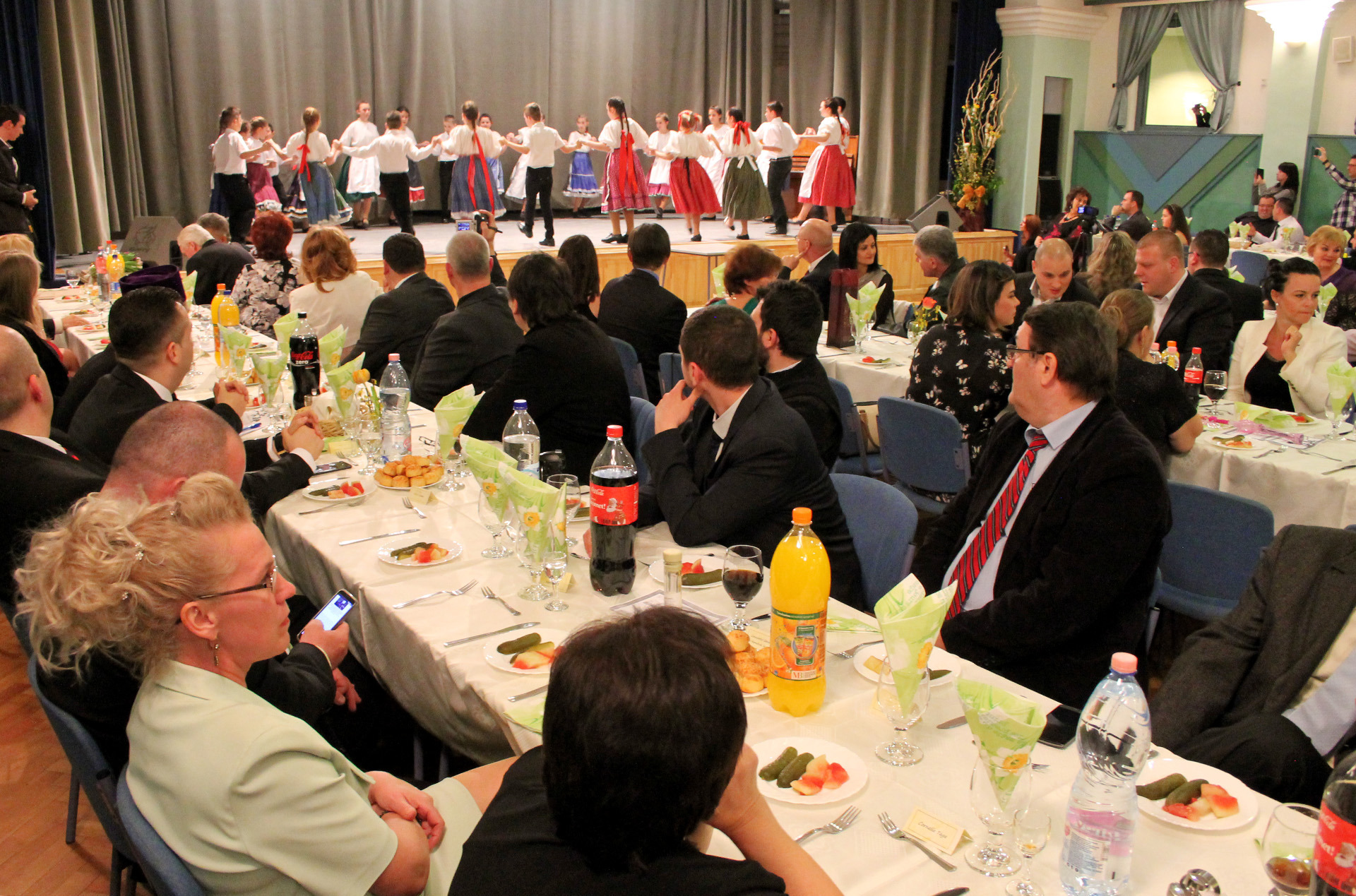 Az izgalmak után a bálozók az iskola diákjainak néptáncbemutatóin, népdalprodukcióin és egyéb zenés-táncos műsorszámokon szórakozhattak.