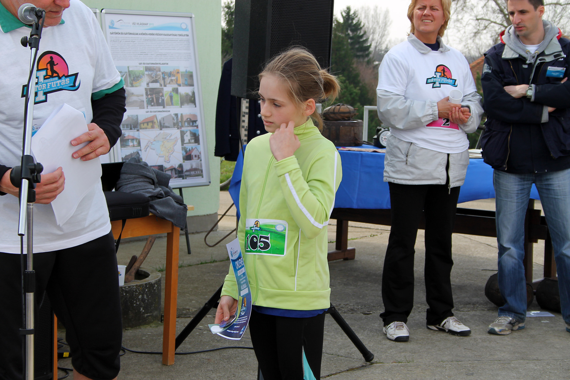 A tábor egyik tagja viszont igencsak kitűnt a tömegből, hiszen gumicsizmában, vízügyes munkaruhában és lapáttal a kezében futotta le a 3 kilométeres távot.