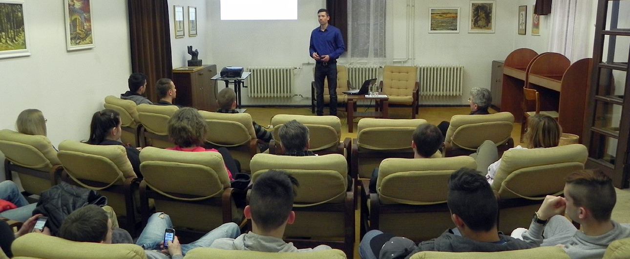 Szász András, a Göndöcs Benedek Szakképző Iskola közgazdaság tanára március 19-én este várta az érdeklődőket a könyvtár előadótermében. Tartalmas, sokrétű prezentációjában többek között az új online kommunikációs trendekről, startupokról esett szó. Körbejárta azokat a marketingstratégiákat, melyek egy alkalmazás vagy termék bevezetését megelőzhetik, valamint kitért az online és hagyományos vásárlás közös pontjaira, és érintette a jövő lehetőségeit is.