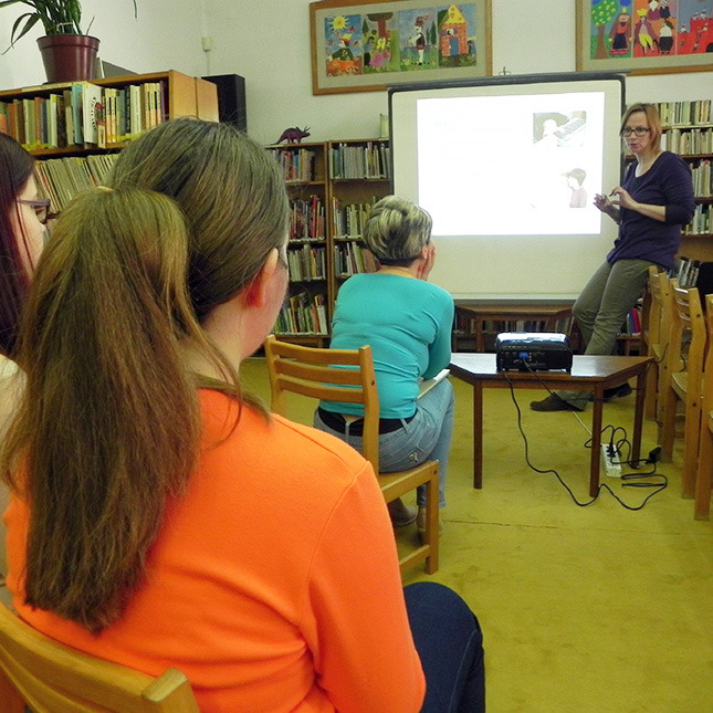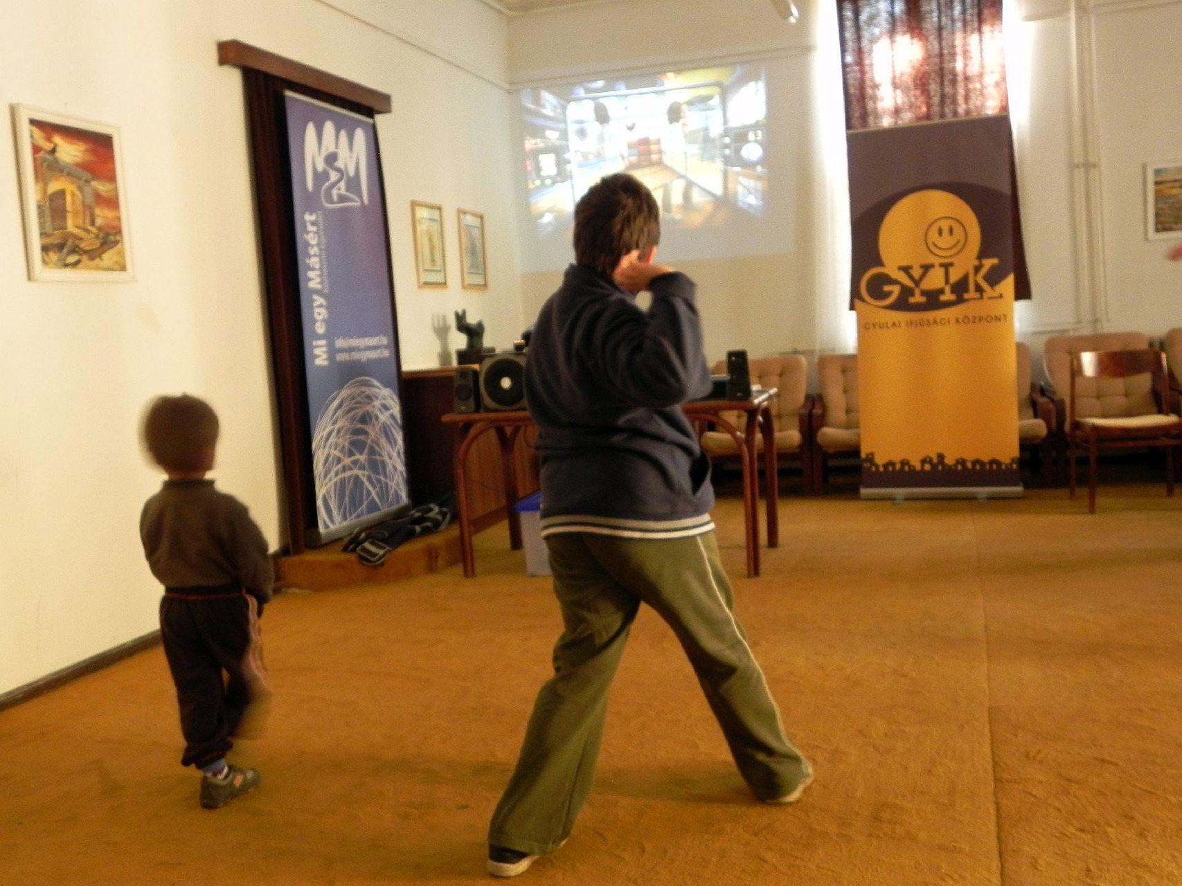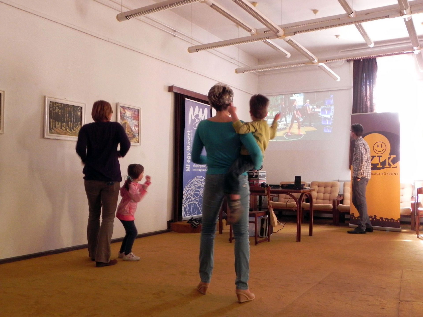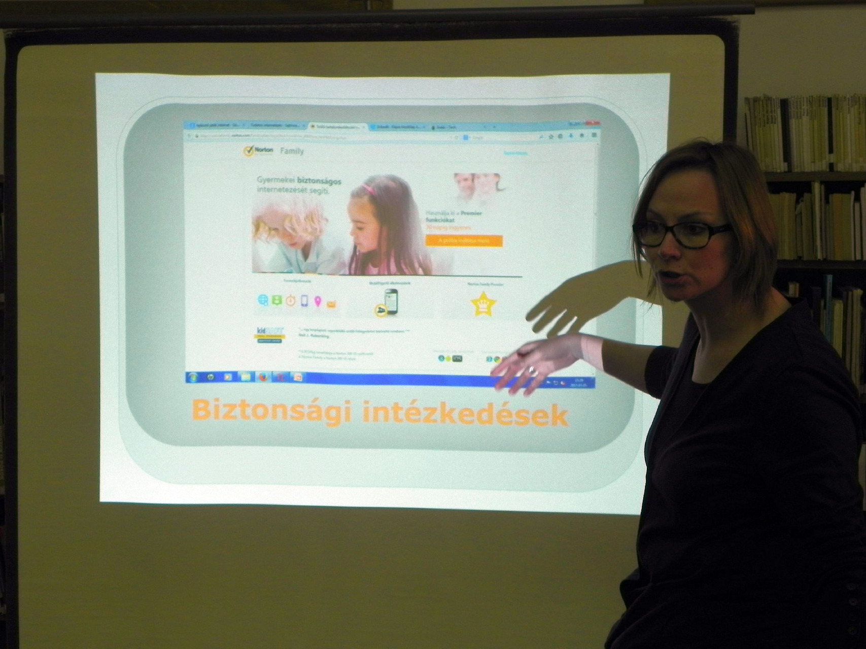 Amíg a gyerekek a kinecttel ismerkedtek, addig a kisgyermekes szülők ismertterjesztő előadást hallgathattak a biztonságos internetes játékok témakörében. Schriffert-Tóth Eszter könyvtáros beszámolójában szó volt a szülői jelenlét fontosságáról, a védelmi lehetőségekről és a fejlesztő jellegű játékokról az asztali és mobil gépeken egyaránt. A kíváncsiabbak számára pedig lehetőség nyílt a hasznos oldalak megtekintésére, kipróbálására is.