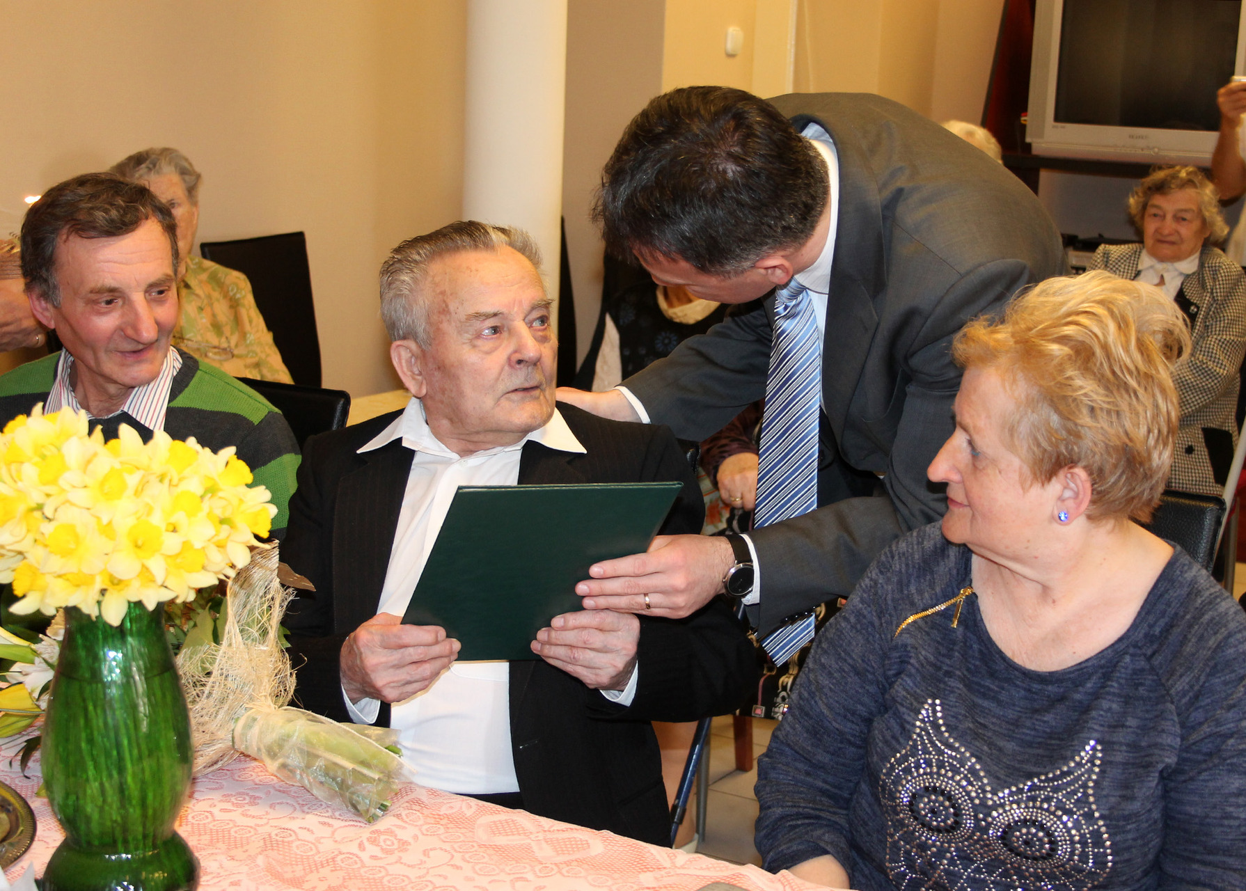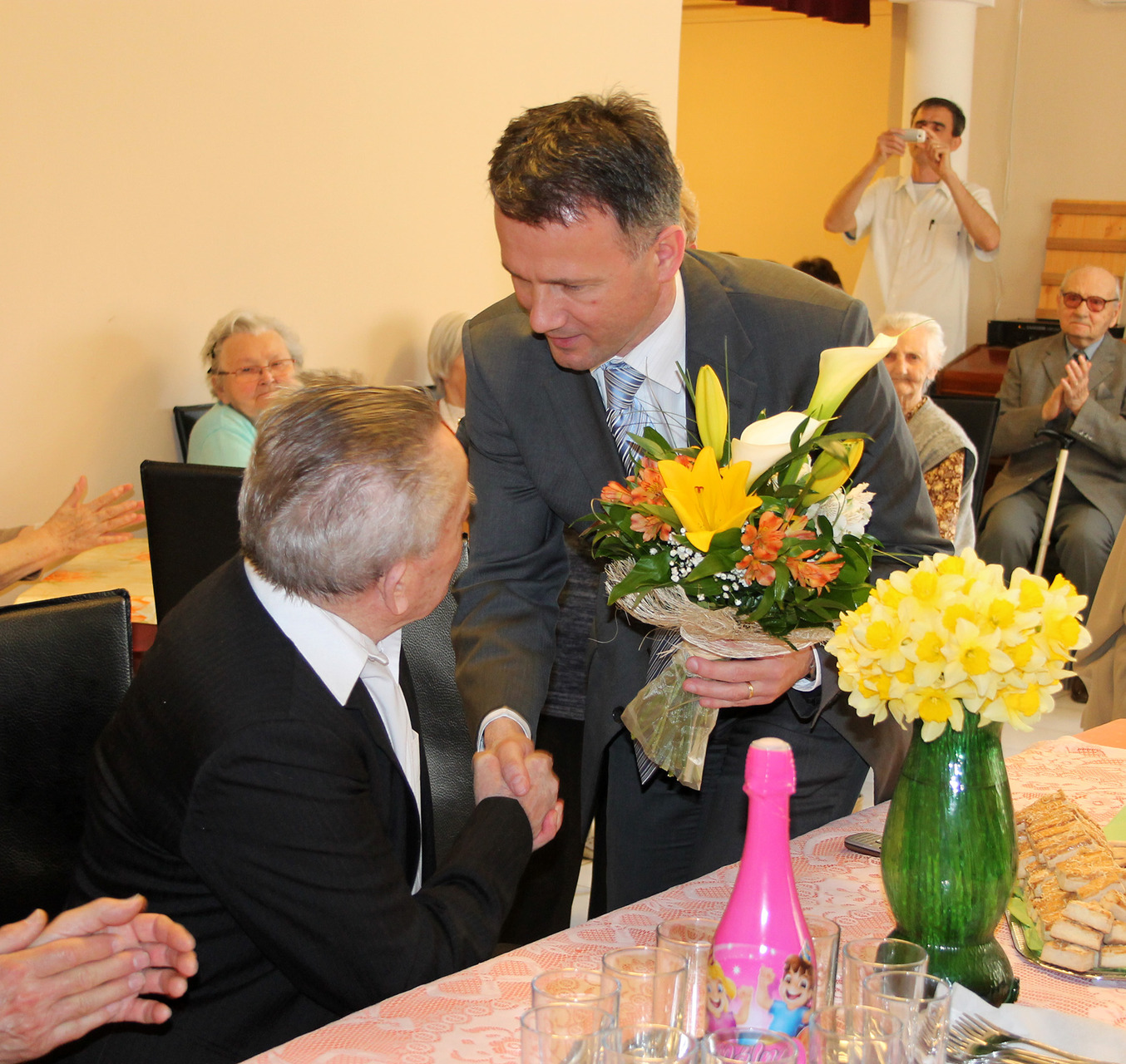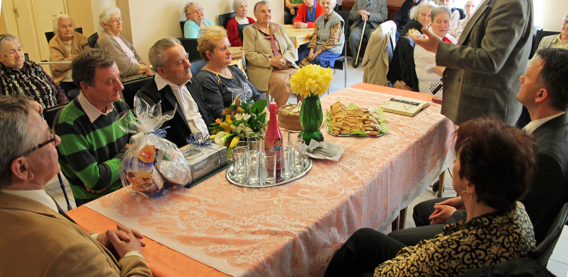 A 90 éves Tóth Mihályt köszöntötte születésnapja alkalmából a gyulai városvezetés március 25-én. Az ünnep okán dr. Görgényi Ernő polgármester, Becsyné dr. Szabó Márta címzetes főjegyző és Galbács Mihály, a körzet képviselője virágcsokorral, a miniszterelnök által aláírt emléklappal és csokoládétortával lepte meg a bácsit.