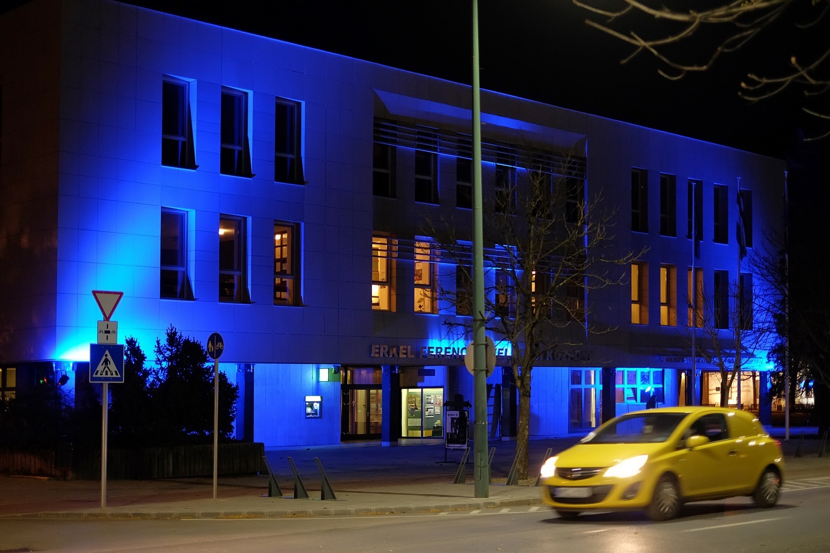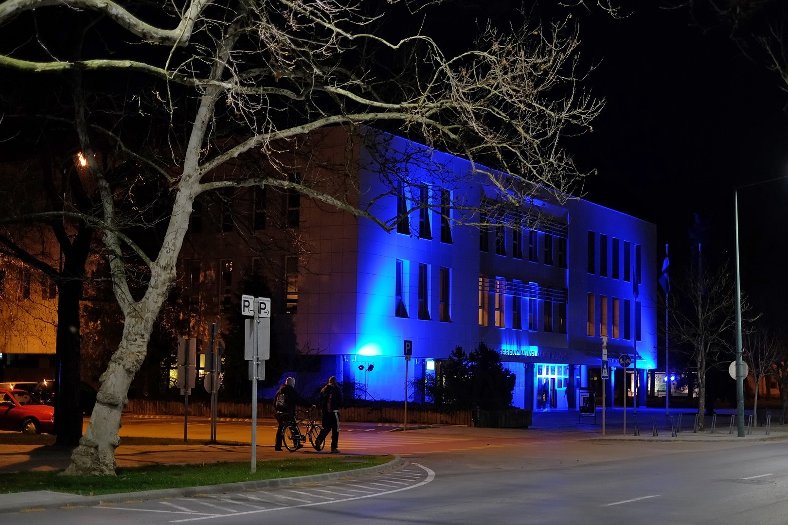 kékbe öltözött az Erkel Ferenc Művelődési Központ