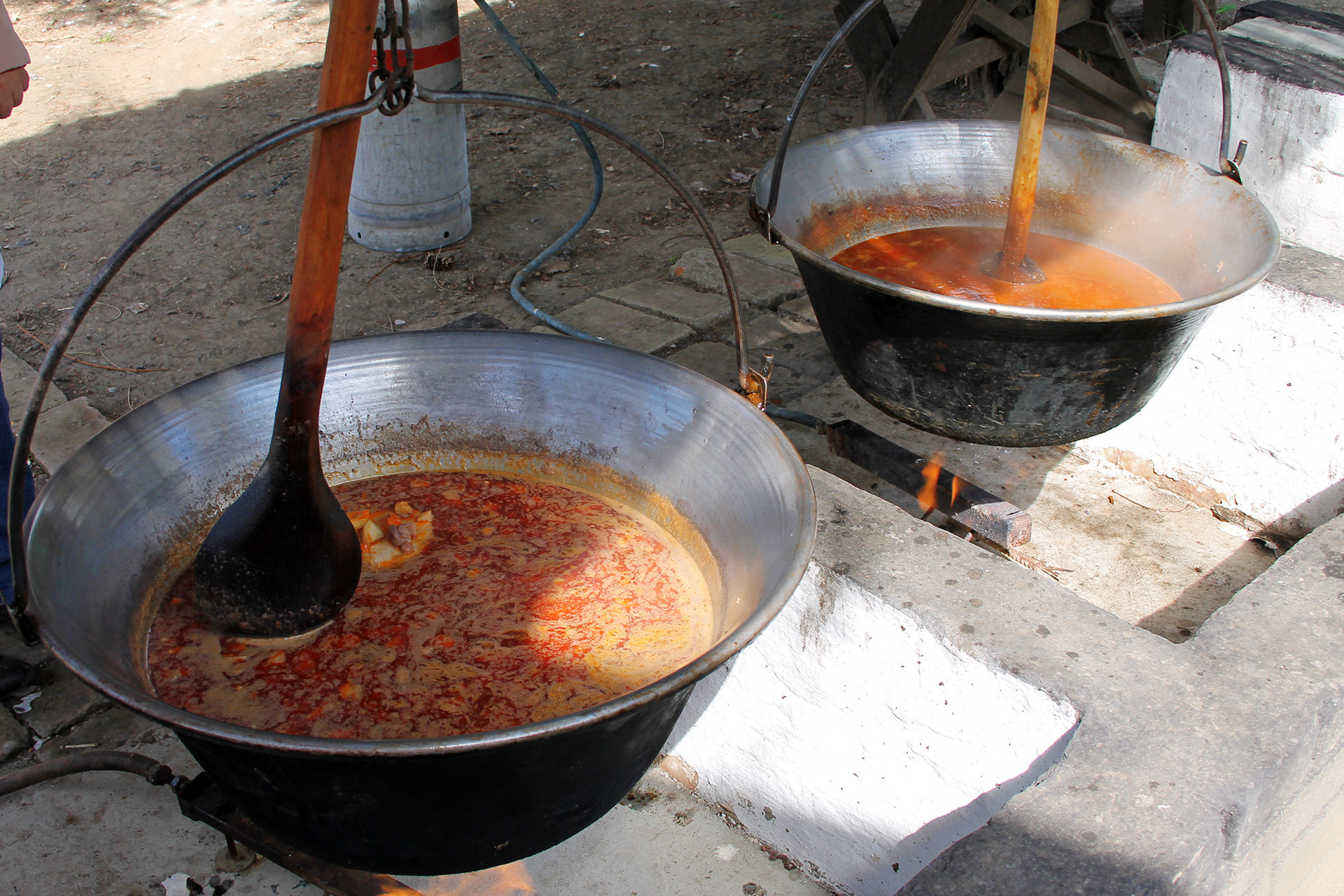 A friss, pusztai levegő és a helyszínen főtt bográcsos ételek ínycsiklandó illata szaglószerveinket is kényeztette. Az egyik kondérban babgulyás, a másikban szürkemarhapörkölt rotyogott, az édesszájúak pedig lekváros fánkkal üthették el éhségüket délidőben.