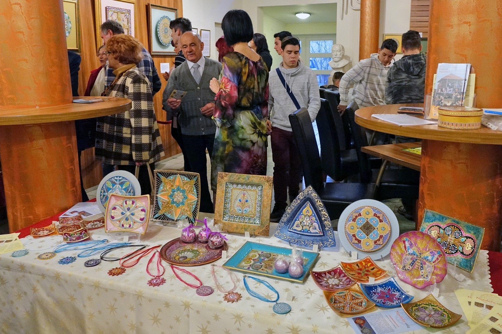 A jelenlévő alkotó a mandalák mélyebb világába kalauzolta el a kiállítás megtekintőit.