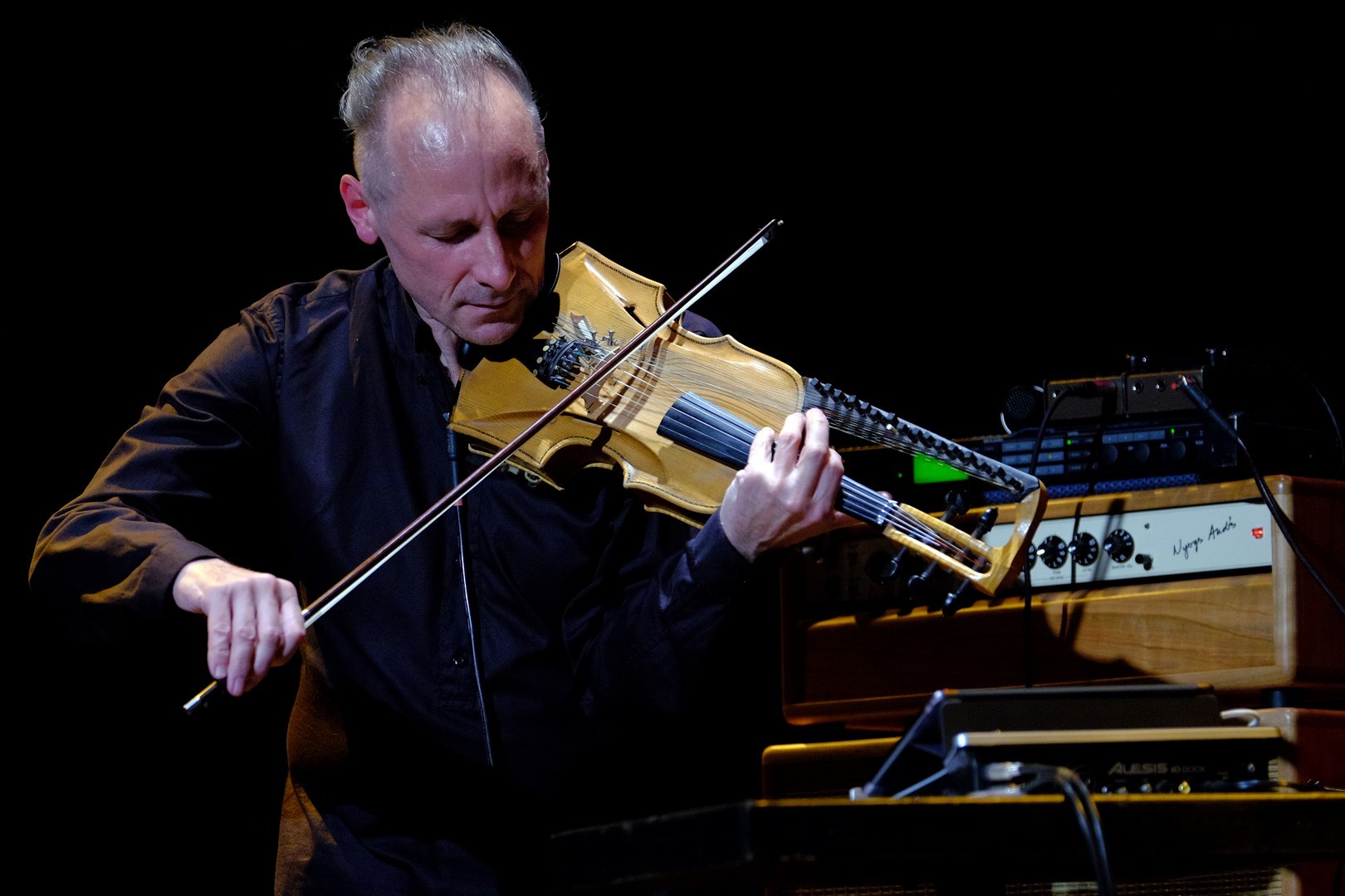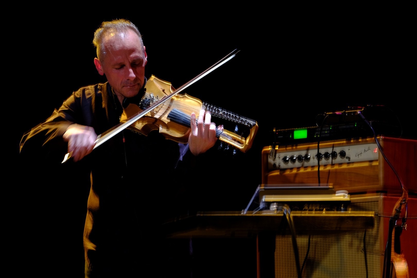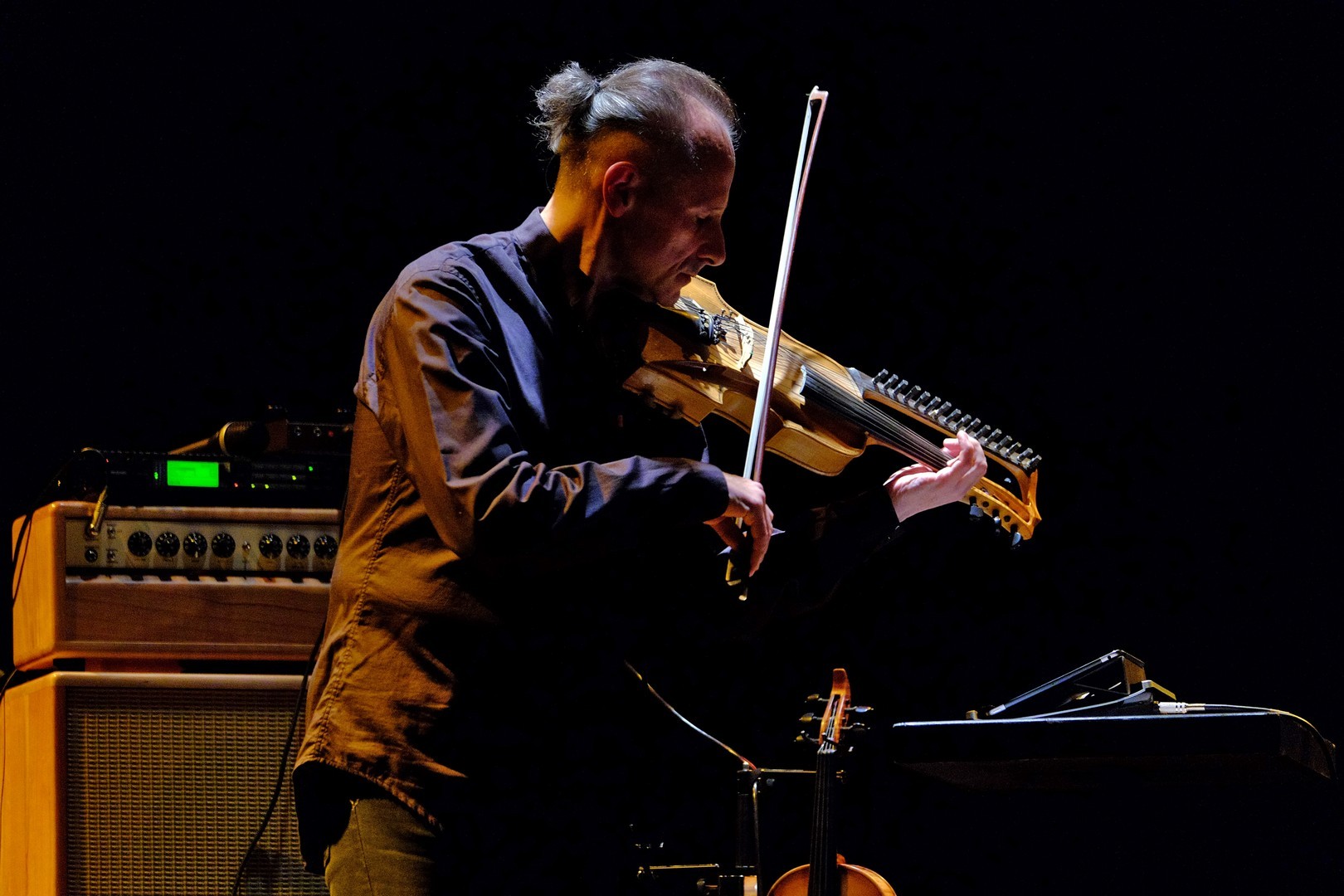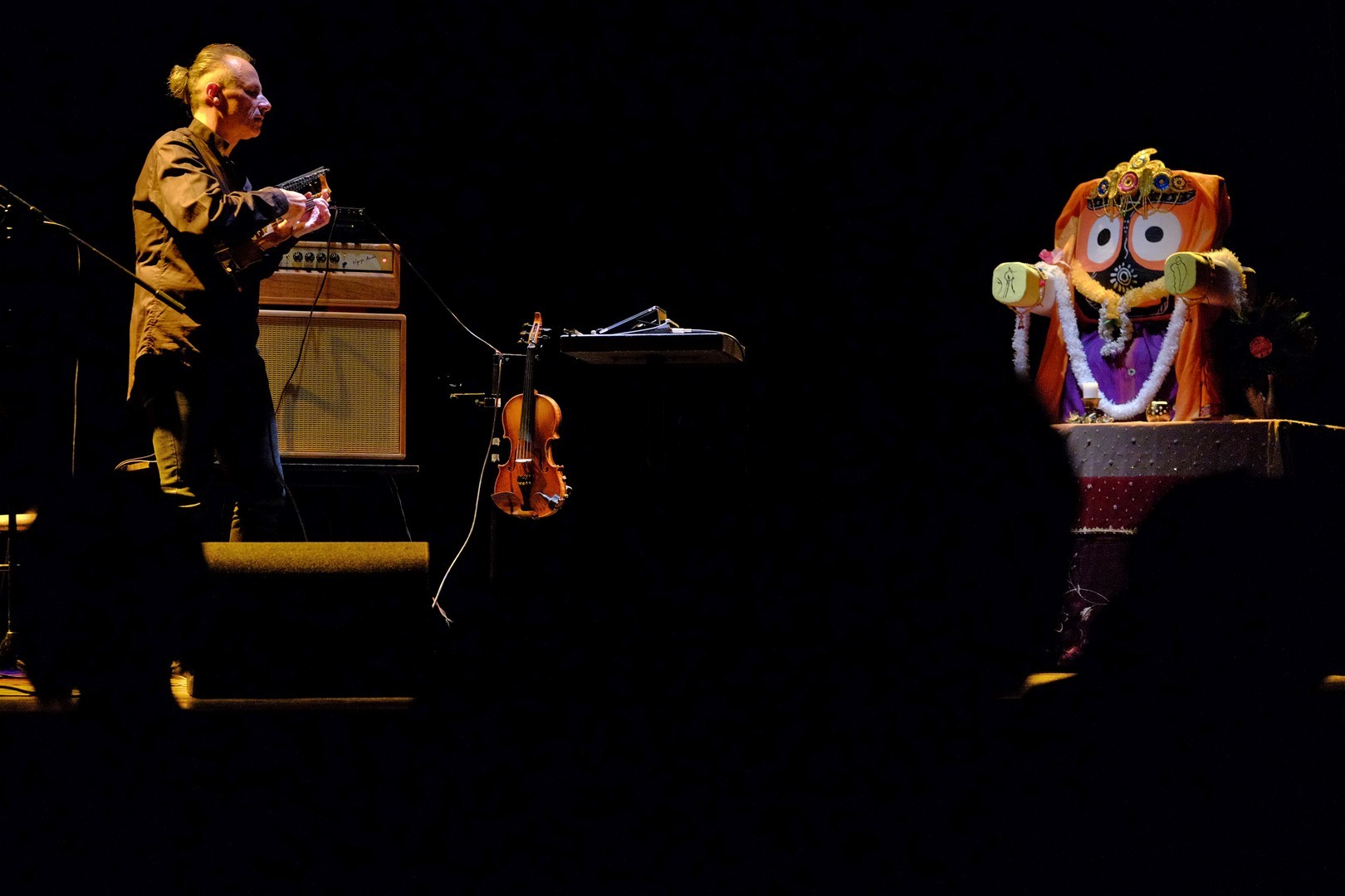 Két vonós hangszerrel érkezett, kezei között olykor egy öthúros hegedű, máskor a 16 kísérő húrral ellátott, kétnyakú tarangini szólalt meg tisztán, éterien. A samplerek, loop-állomások segítségével időnként megjelent halkan India gazdag hangszerparkjának egy-két kísérő instrumentuma, mint a tanpura vagy a tabla, ám az elektronikai arzenálnak nem ez volt a fő faladata. Segítségével a zenész játékát groove-okká alakította, hogy a különböző dallamokat és ritmusokat visszajátszva és egymásra építve azok egy komplett zenekart idézzenek meg. A speciális frázisfelvevő eszköz használata rutint és komoly koncentrációt igényel: ha az egyik felvétel nem sikerül, összeomolhat a „zeneépítmény”.
