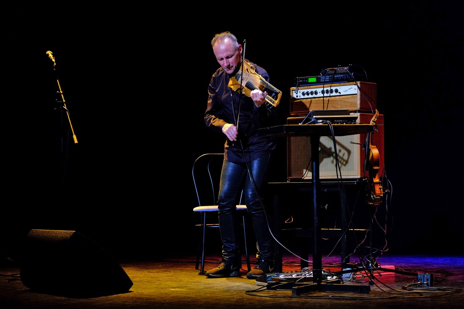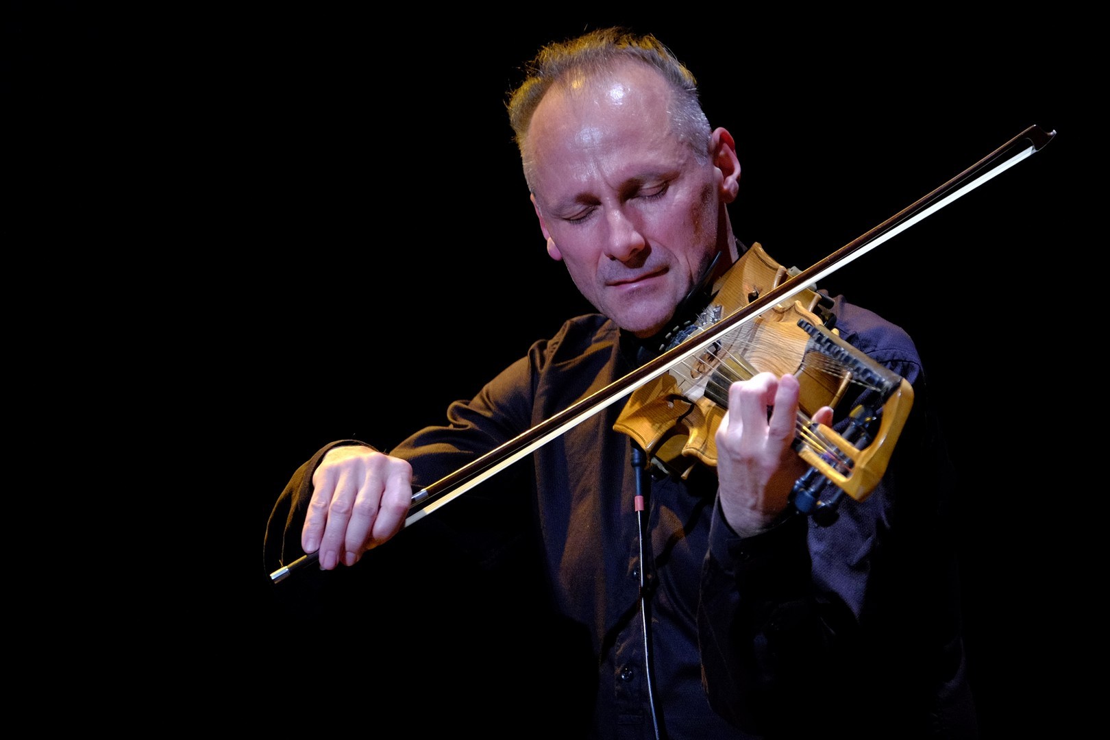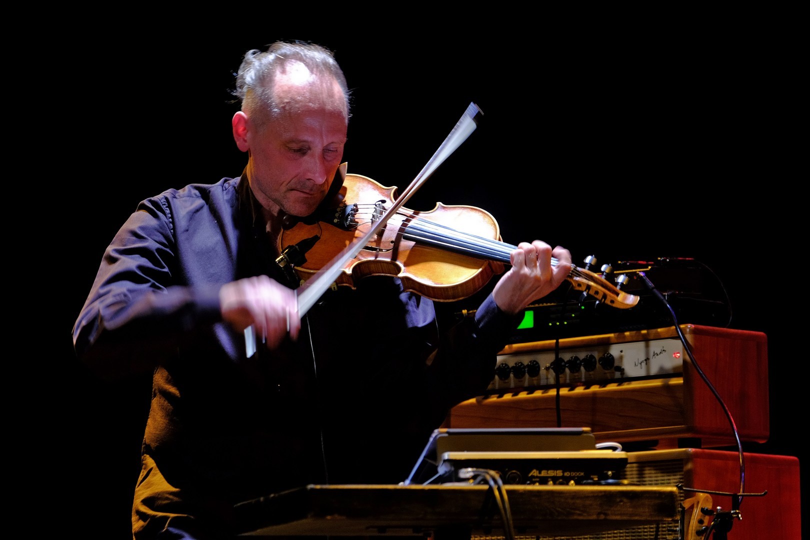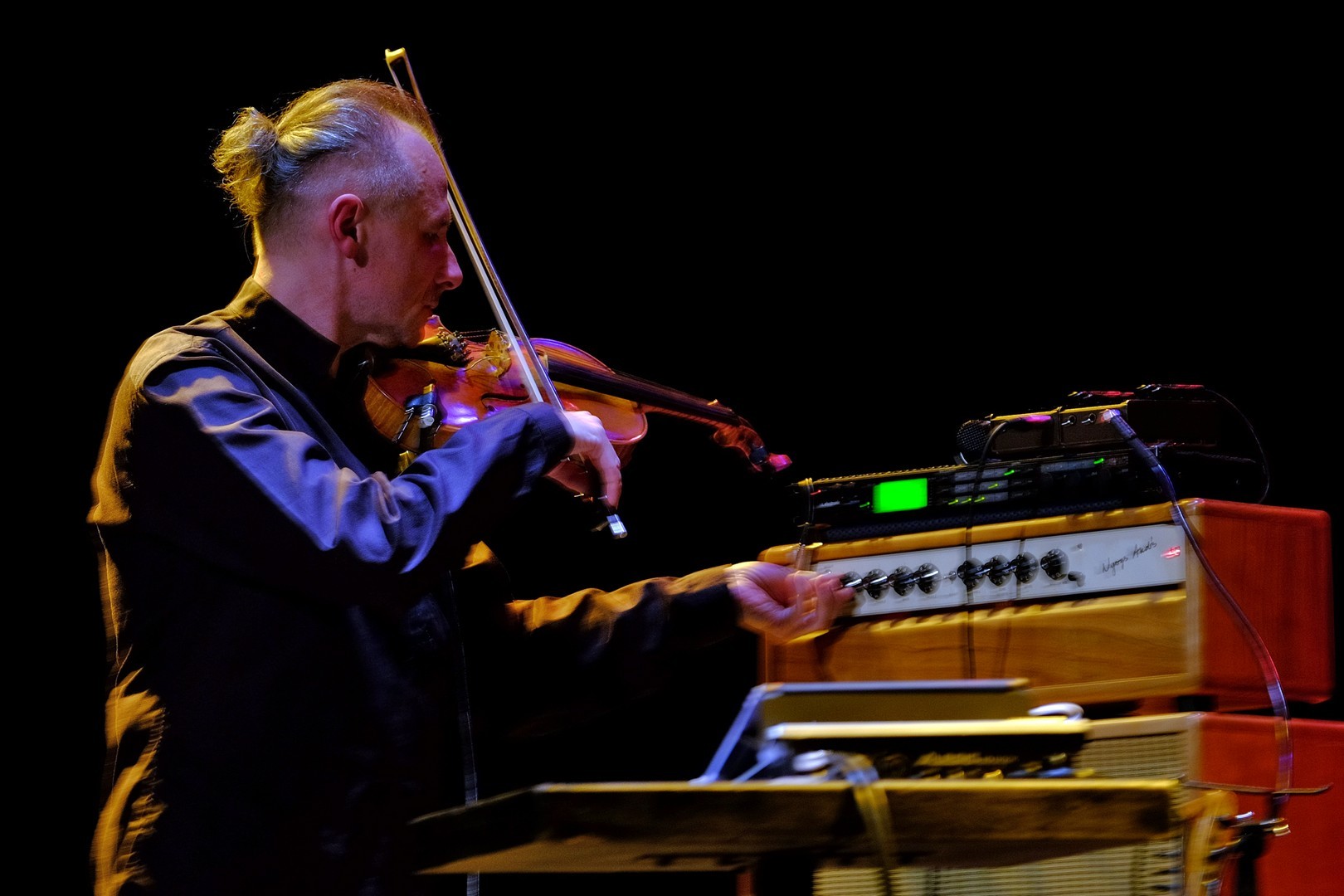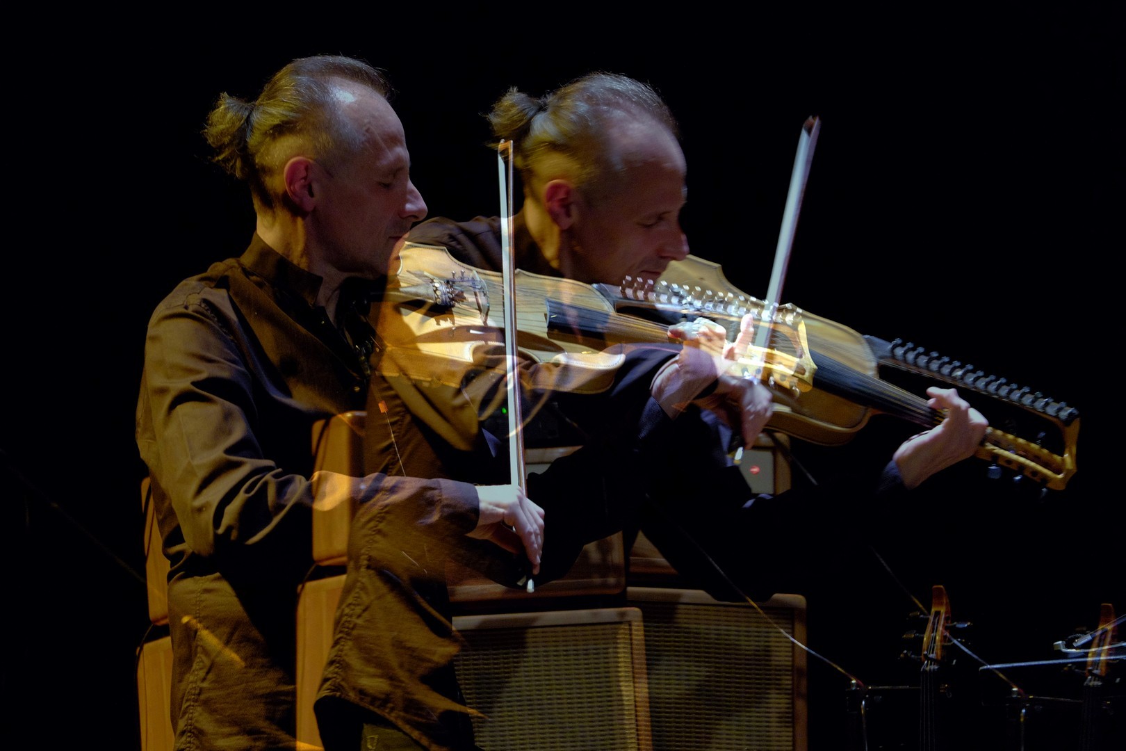 Két vonós hangszerrel érkezett, kezei között olykor egy öthúros hegedű, máskor a 16 kísérő húrral ellátott, kétnyakú tarangini szólalt meg tisztán, éterien. A samplerek, loop-állomások segítségével időnként megjelent halkan India gazdag hangszerparkjának egy-két kísérő instrumentuma, mint a tanpura vagy a tabla, ám az elektronikai arzenálnak nem ez volt a fő faladata. Segítségével a zenész játékát groove-okká alakította, hogy a különböző dallamokat és ritmusokat visszajátszva és egymásra építve azok egy komplett zenekart idézzenek meg. A speciális frázisfelvevő eszköz használata rutint és komoly koncentrációt igényel: ha az egyik felvétel nem sikerül, összeomolhat a „zeneépítmény”.