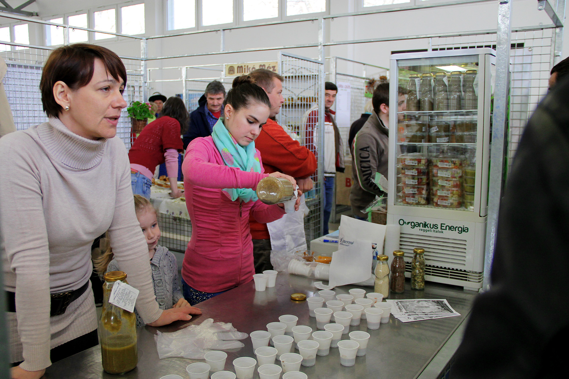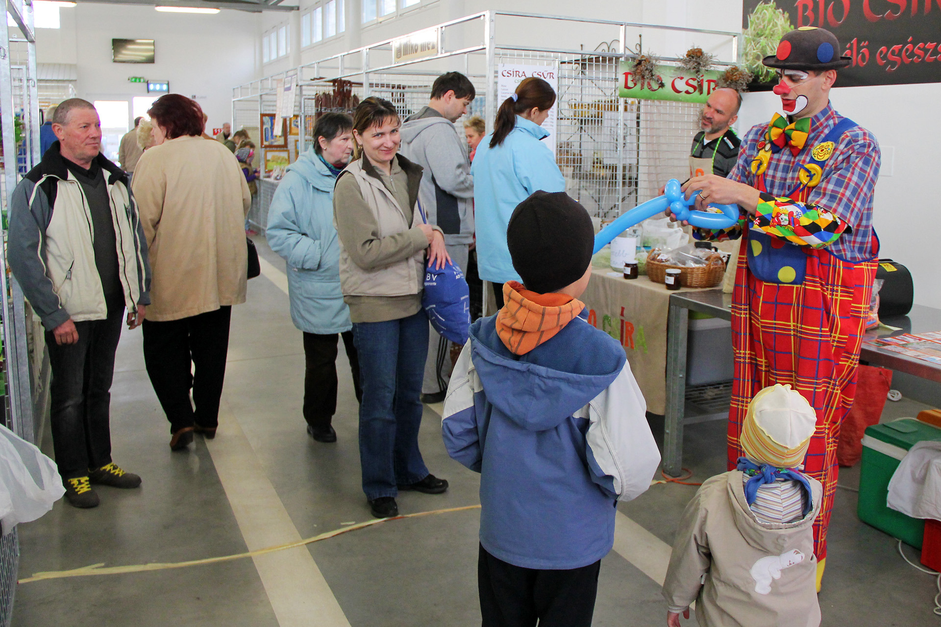 A vásárcsarnokba betérő sokaságot a „mosolydoktor”, Andor bohóc fogadta, aki a legkisebbeknek különféle színes lufifigurákat készített. Továbblépve ízletes falatokat, reformszendvicseket, pástétomokat és egészséges reggeli italokat kóstolhattunk, de csábítóan csalogatott bennünket az illatos kolbászokkal és sonkákkal teli csemegepult, vagy a különleges biocsírákat kínáló stand is. A piaci forgatagban persze még számos érdekességen megakadhatott a szemünk. Szappancsodák, kézműves sajtok, mézkülönlegességek, lekvárhegyek, házi készítésű ékszerek, táskák, festmények között bóklászhattunk, de vihettünk haza akár a Gyulali házikolbászból is. A vásárban élő népi muzsika és néptáncbemutató szórakoztatta a vendégsereget.