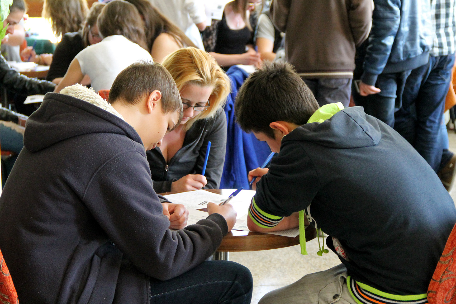 - A 2. emeleti előtérben teszteket tölthettek ki a fiatalok. Volt drogtotó, lélektani típusokkal kapcsolatos kérdőív, diákteszt, facebook függőséget mérő kérdéssor stb. Ezek egyfajta visszacsatolást tesznek lehetővé a diákok számára arra vonatkozóan, hogy milyen felhasználói szokásaik vannak, illetve mennyire függnek az adott dolgoktól. Az összes teszt kitöltéséért mindenki egy apró játékot kapott ajándékba – tájékoztatta lapunkat Ament Balázs.