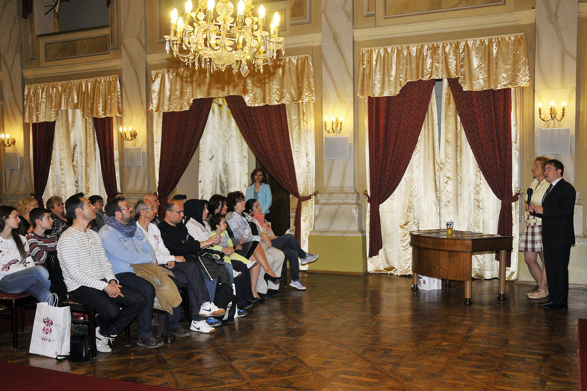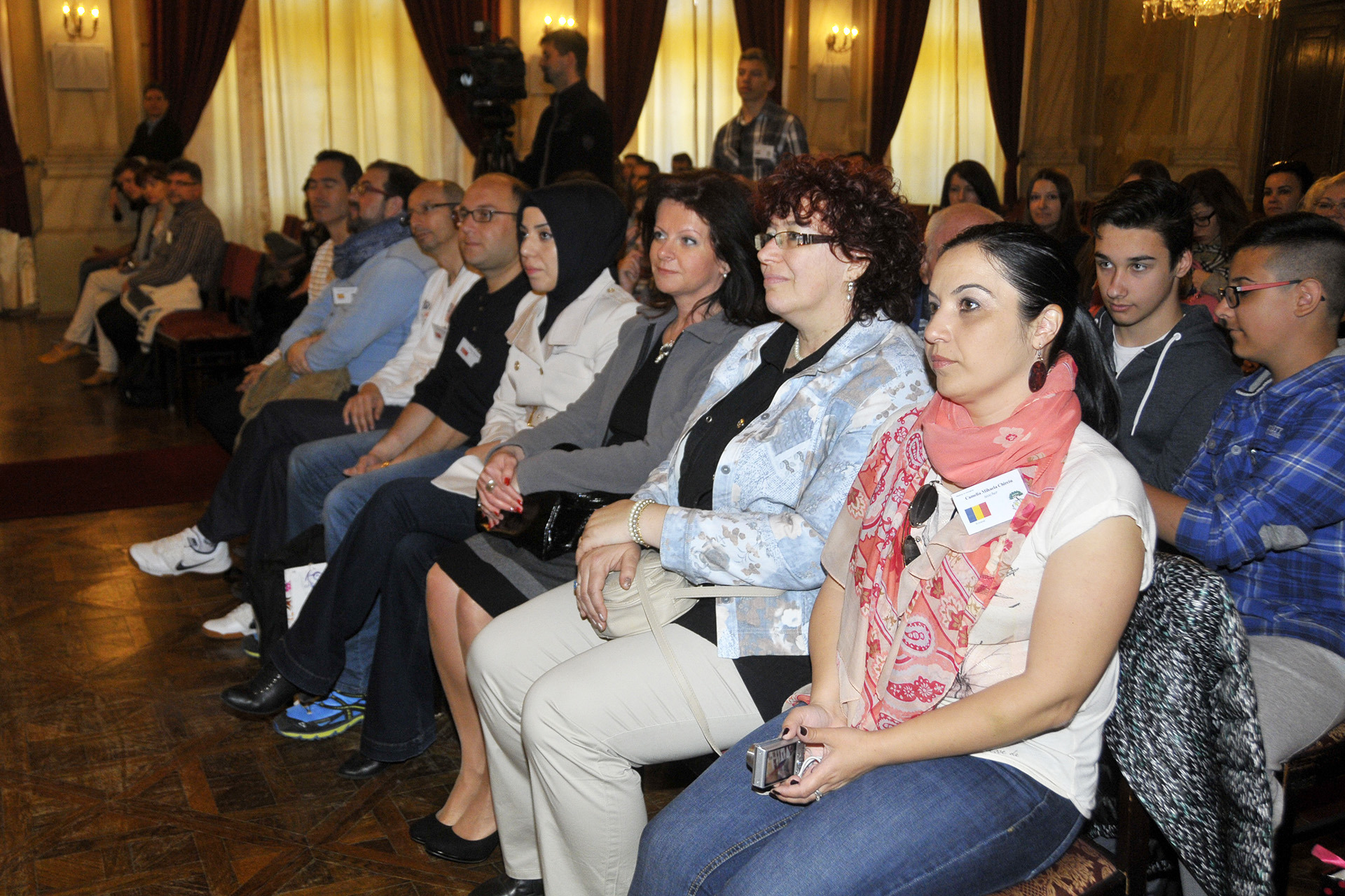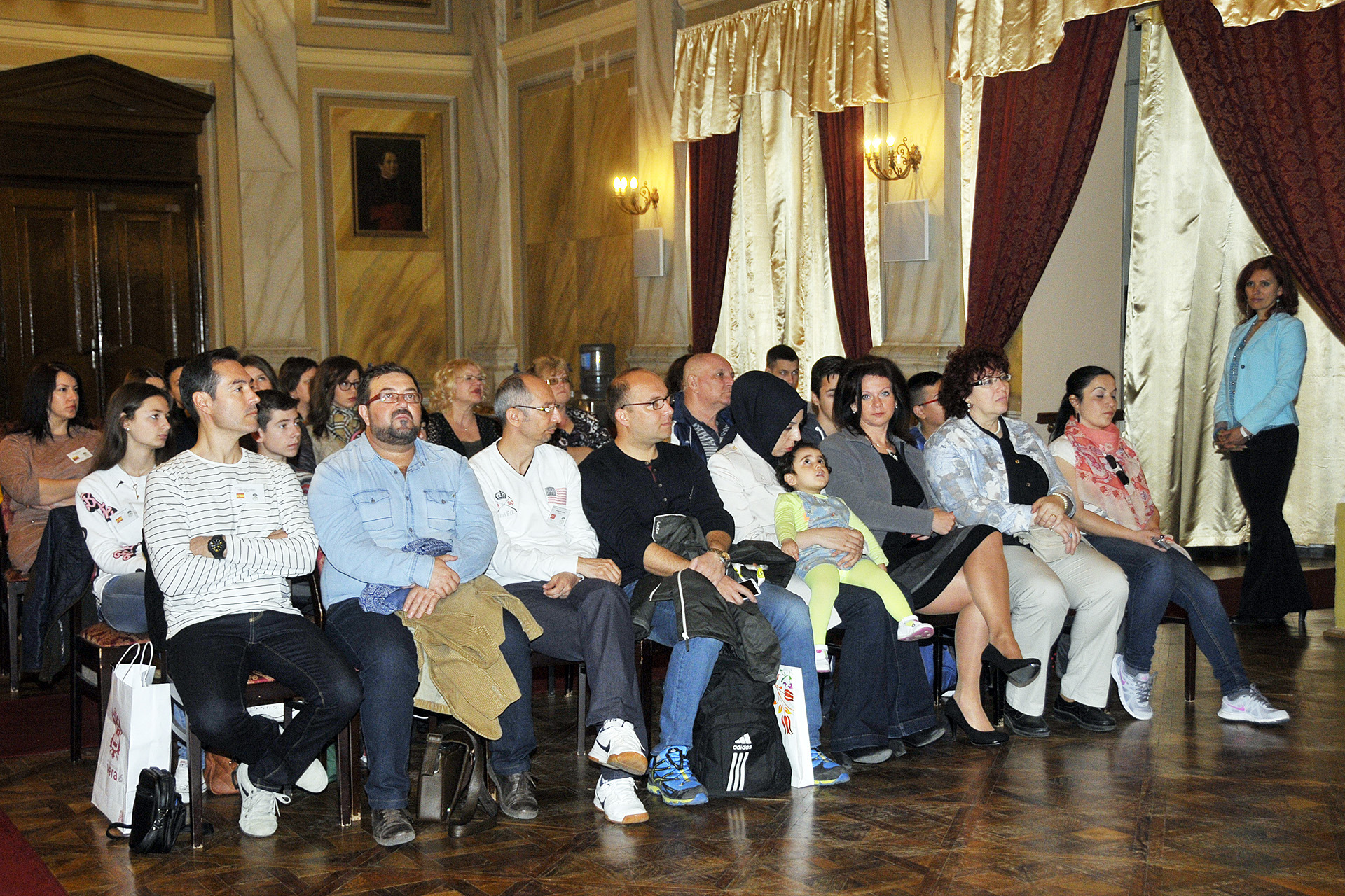 A 20 pedagógusból és 20 diákból álló küldöttséget Kónya István, Gyula város alpolgármestere és Hajnal Edit városmarketing-referens üdvözölte a városháza dísztermében. Kónya István beszédében örömét fejezte ki, hogy a nemzetközi programnak köszönhetően igazi barátságok alakulhatnak ki, ezért biztosította a jelenlévőket, hogy a városvezetés támogatja a projekt folytatását. A városvezető köszöntőjében röviden városunk természeti, építészeti és kulturális nevezetességeit is bemutatta: beszélt többek között környezeti értékeinkről, vizeinkről, tavainkról, a városházáról, a hamarosan megnyíló Almásy-kastélyról és természetesen a gyulai kolbászról is.
