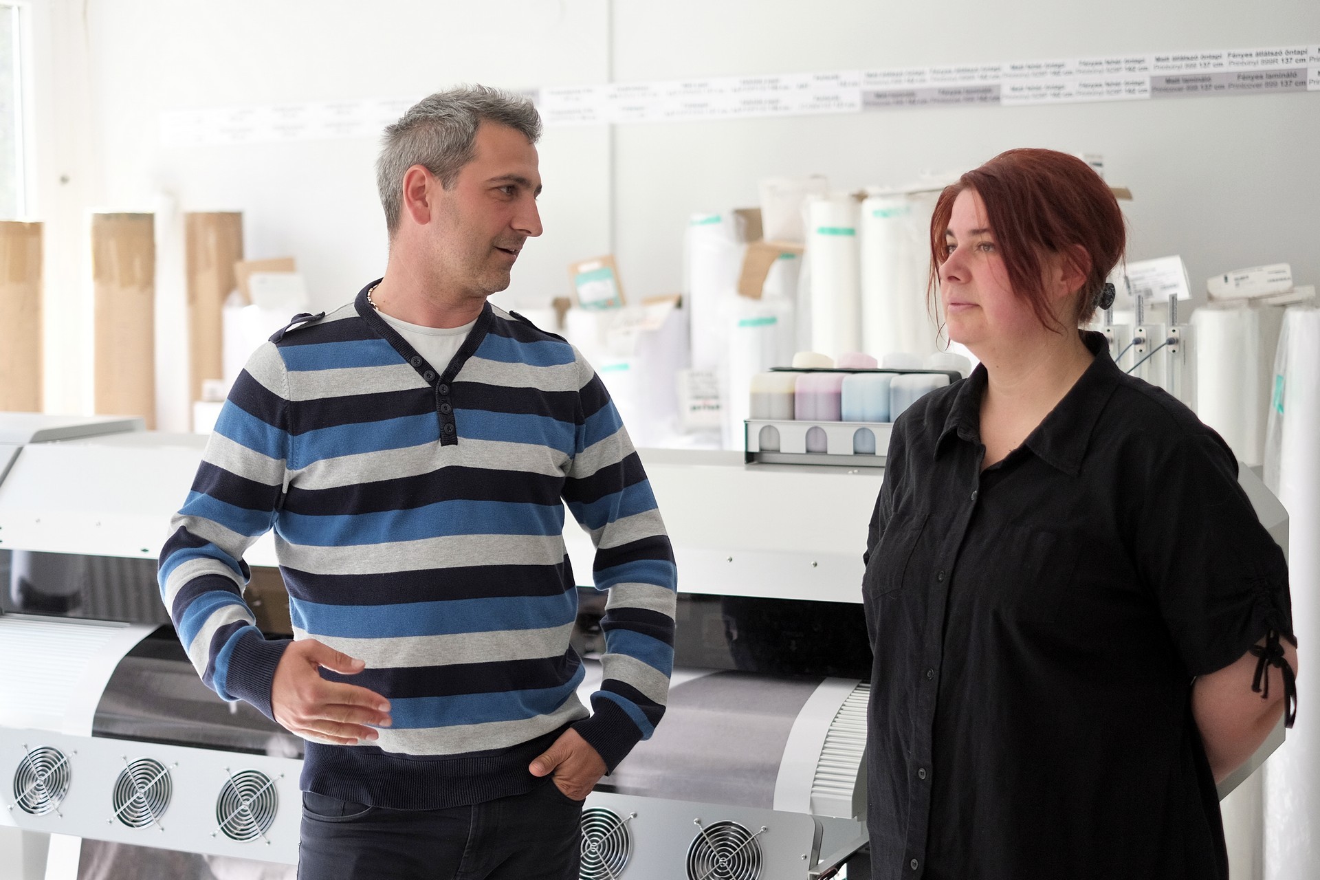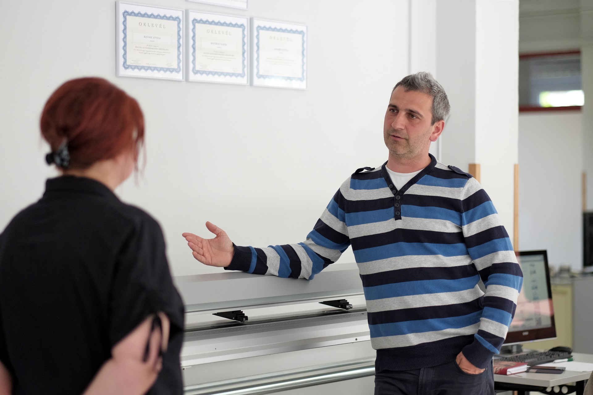 – Az üzlettársam, akivel a műszaki kereskedést kezdtük nem bízott túlzottan a „nyomtatósdiban” és kiszállt. Mivel a nyomtató akkor már megvolt, olyan embert kerestem magam mellé, aki az értékesítésben is tudott segíteni, illetve a nyomtatáshoz is értett. Az elsőként felvett kollégám a mai napig itt dolgozik. Amikor pedig a nyomdarész bővülni kezdett, már célirányosan olyan embereket hoztam be, akik értenek hozzá, és többségük szintén máig itt van.