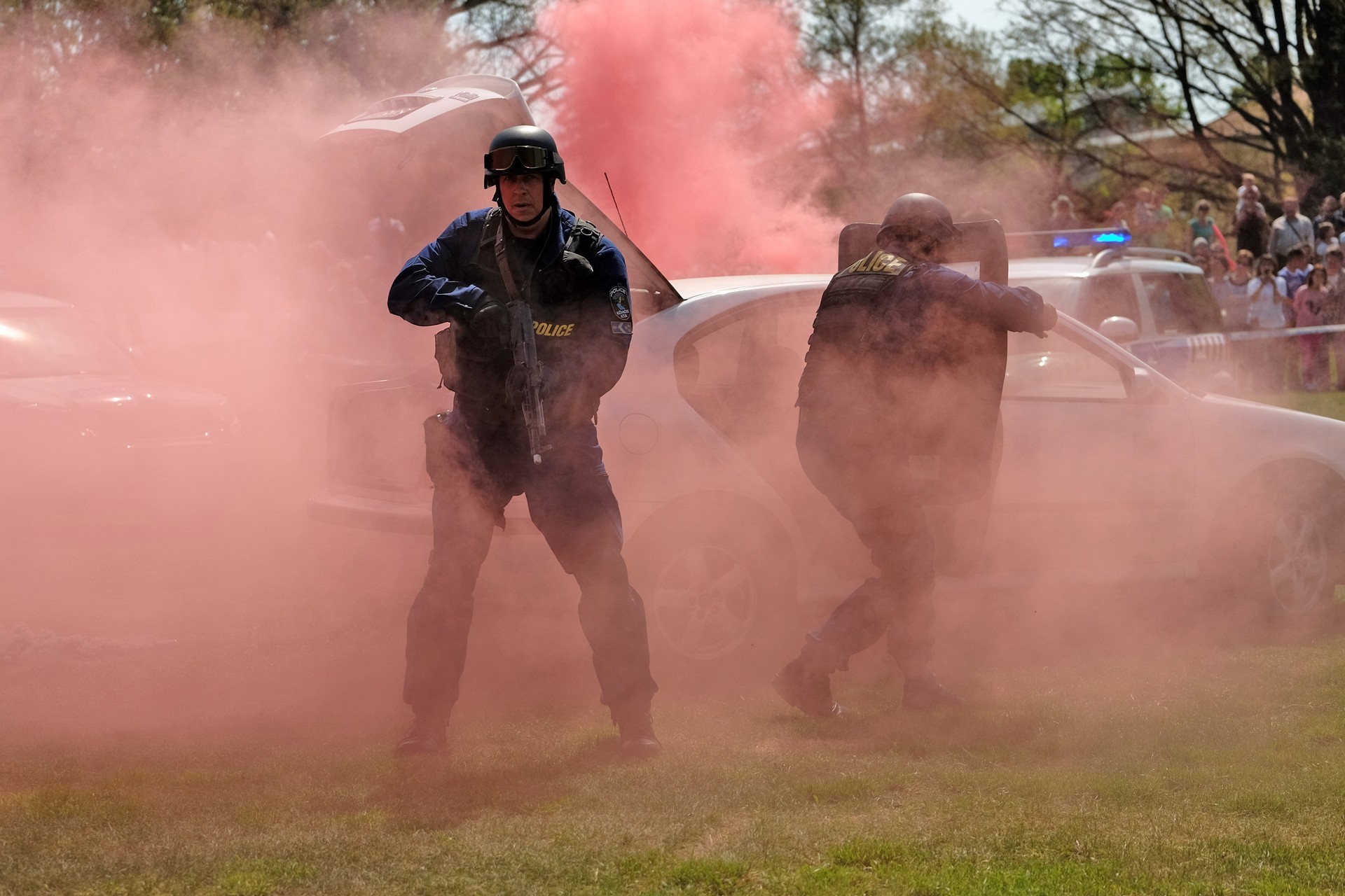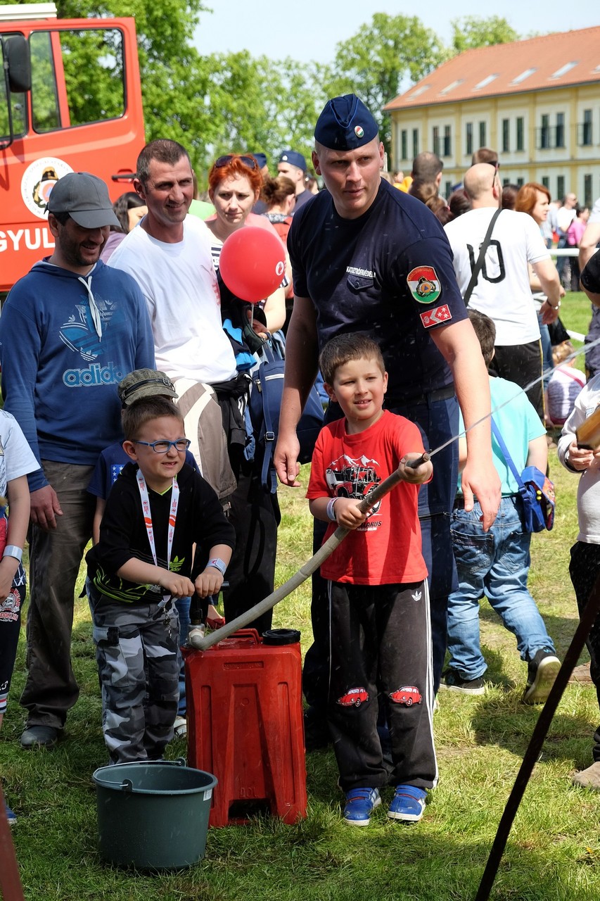 A nap folyamán a Készenléti Rendőrség Zenekarának és a Katasztrófavédelem Központi Zenekarának játékát élvezhettük, miközben egy különleges géppark mutatós járgányai között sétálgatva a gyulai magasból mentő szernek, az új Rába fecskendőnek és egy régi Lada rendőrautónak is a csodájára járhattunk. A kiállító sátrakba bekukkantva szemügyre vehettük a Körös Mentőcsoport és a Gyulai Járási Mentőcsoport szakfelszereléseit, de beleshettünk a bűnügyi-technikusok, nyomozók munkájába is. Az egyik legizgalmasabb helyszín talán a füstsátor volt, ahol a legbátrabbak tűzoltókká avanzsálva tapasztalhatták meg, mit lehet – vagy mit nem lehet – látni egy füsttel teli helyiségben.