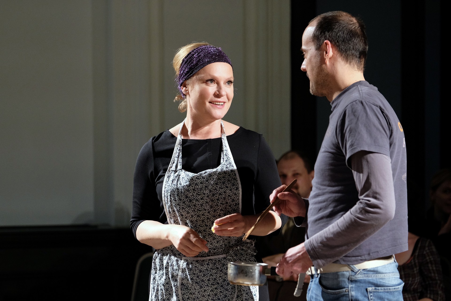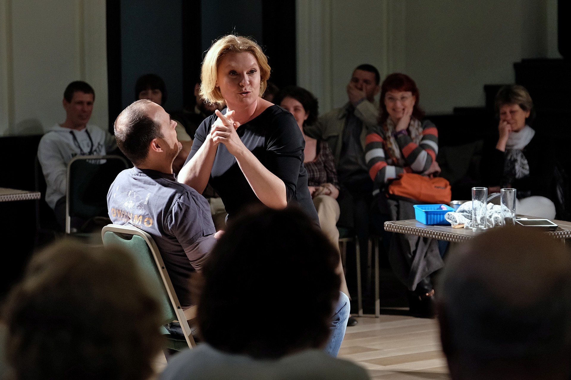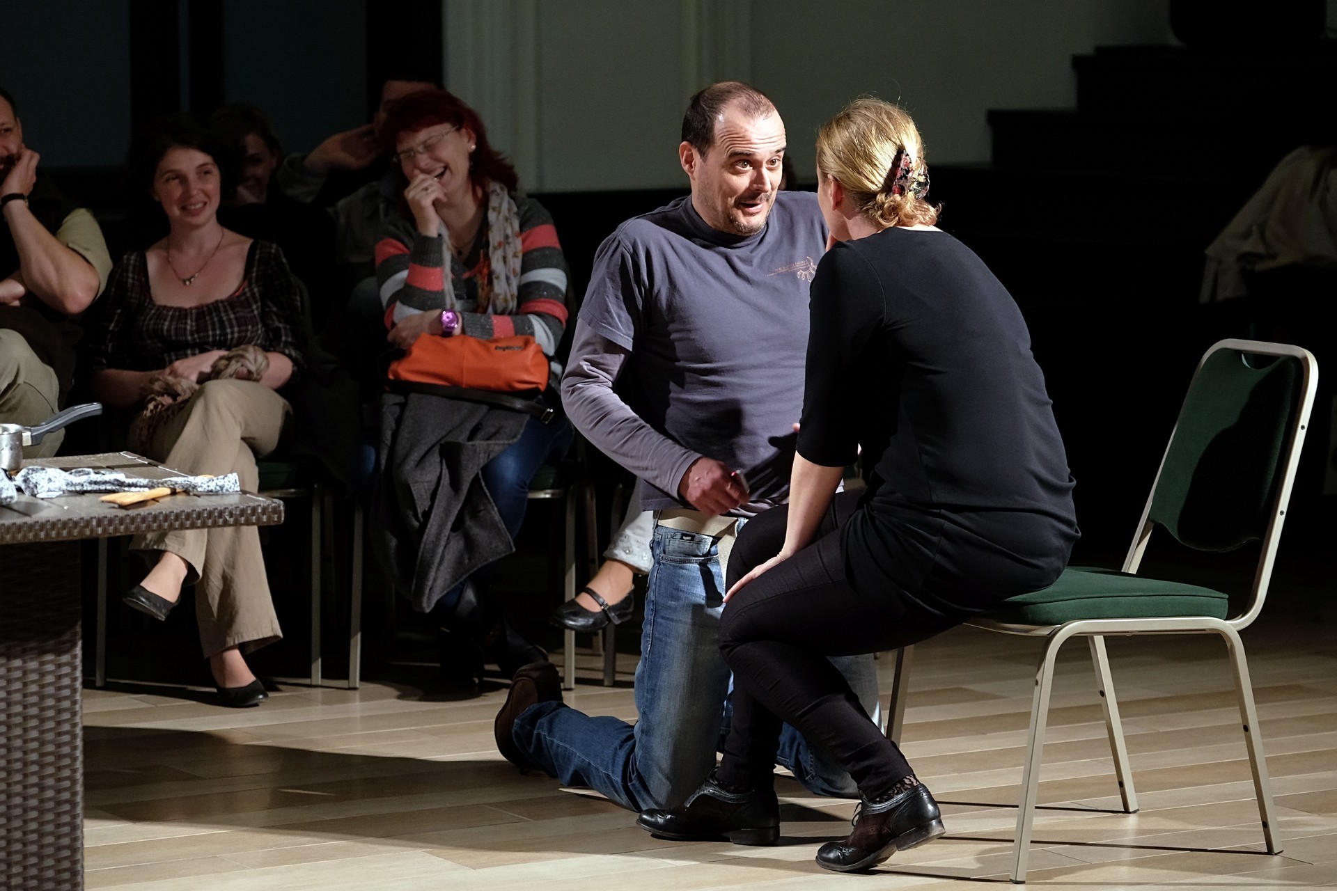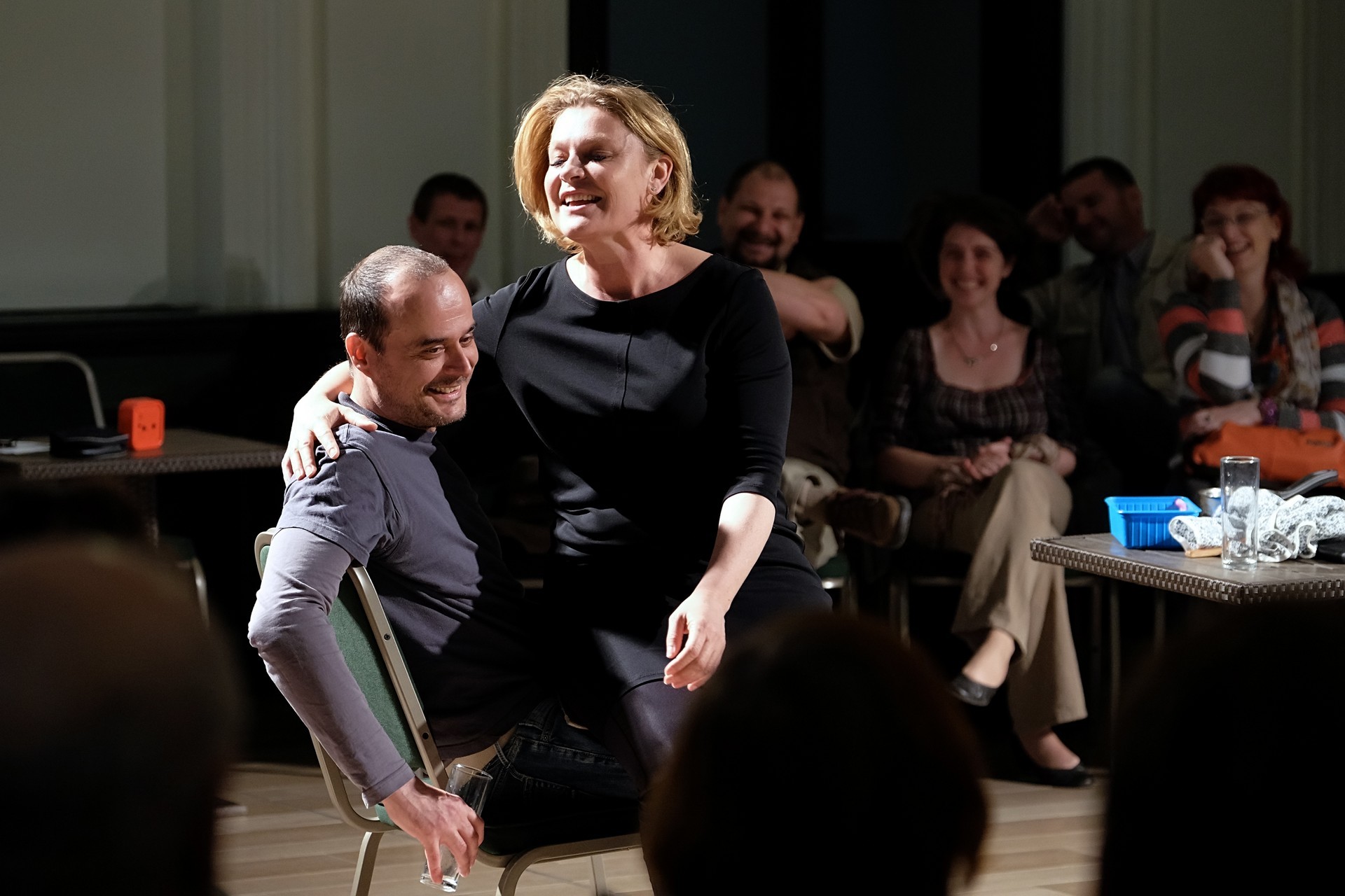 Így válik minden előadás garantáltan egyedivé, egyszeri és megismételhetetlen alkalommá. A hol lehengerlő, hol lágy, alázatos vagy épp megtört Hegyi Barbara találékonysága, árnyalt játéka, híresen gazdag női, színészi és emberi eszköztára közvetlen közelről még hatékonyabban nyűgözte le a nagyérdeműt, amihez az Üvegtigrisből, a Hídemberből, Életképek és a Jóban Rosszban sorozatokból, de a témához legközelebb álló Beugróból ismert Debreczeny Csaba igazán remek partner volt.