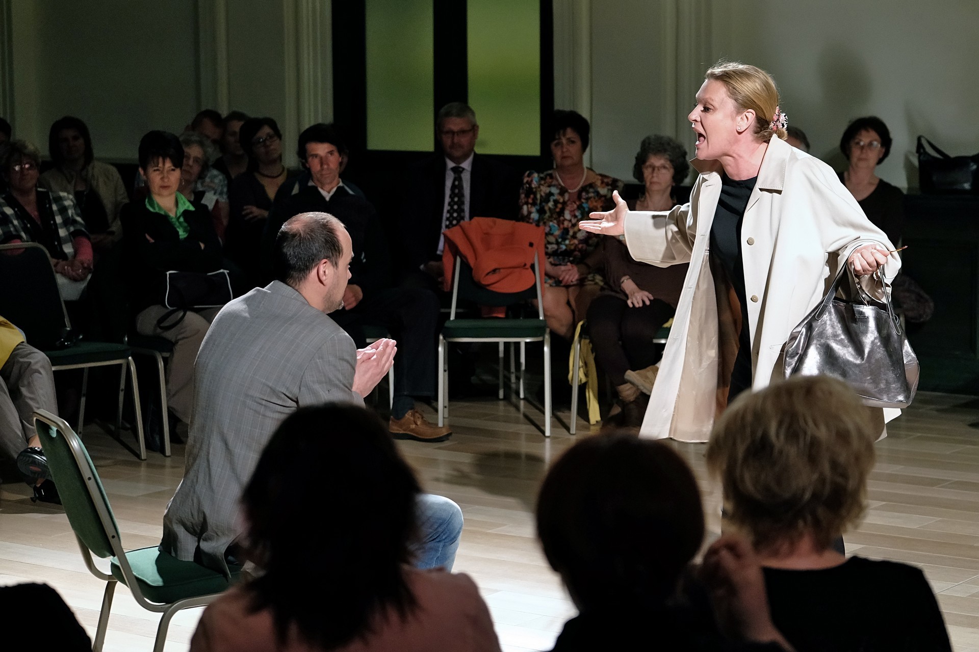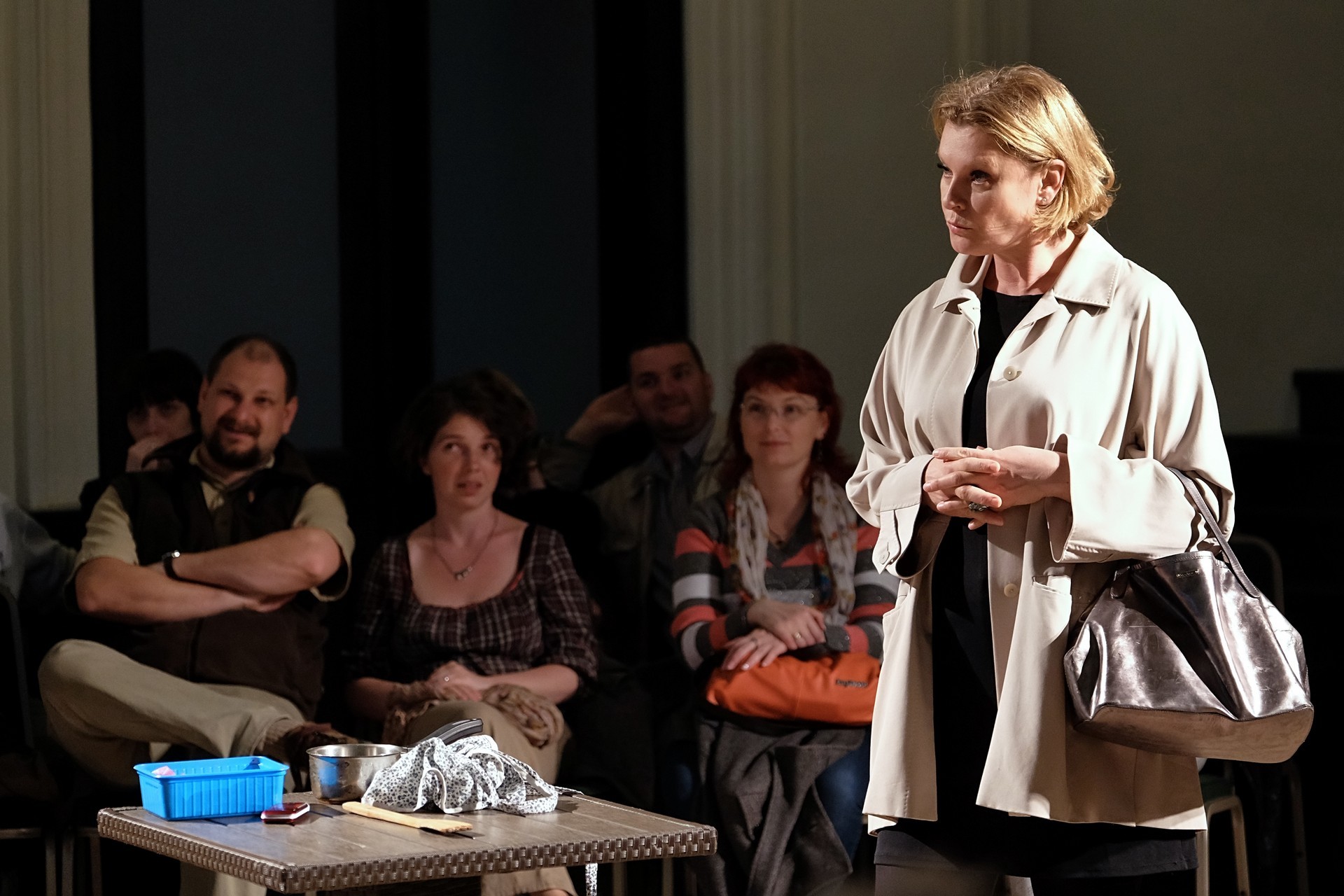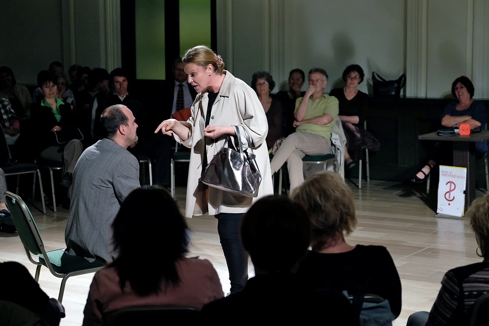 Az olykor kacagtató, olykor pedig épp feszültséggel teli helyzetek tetőfokán pedig a pszichológusnő váratlanul több alkalommal is megakasztotta az előadás menetét, hogy megkérje a nézőket, váljanak szereplőkké, azaz osszák meg egymással, vele és a színészekkel gondolataikat, tapasztalatainkat, érzéseinket a megjelenített témával kapcsolatosan. Ez persze nem volt kötelező, de azért a gyulaiak éltek a lehetőséggel.