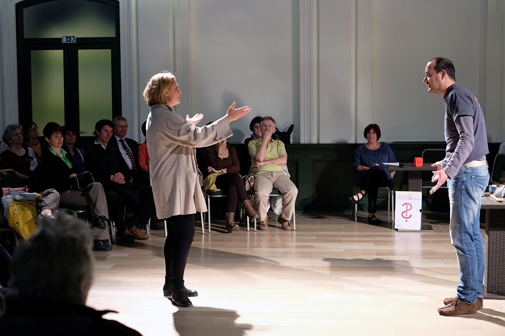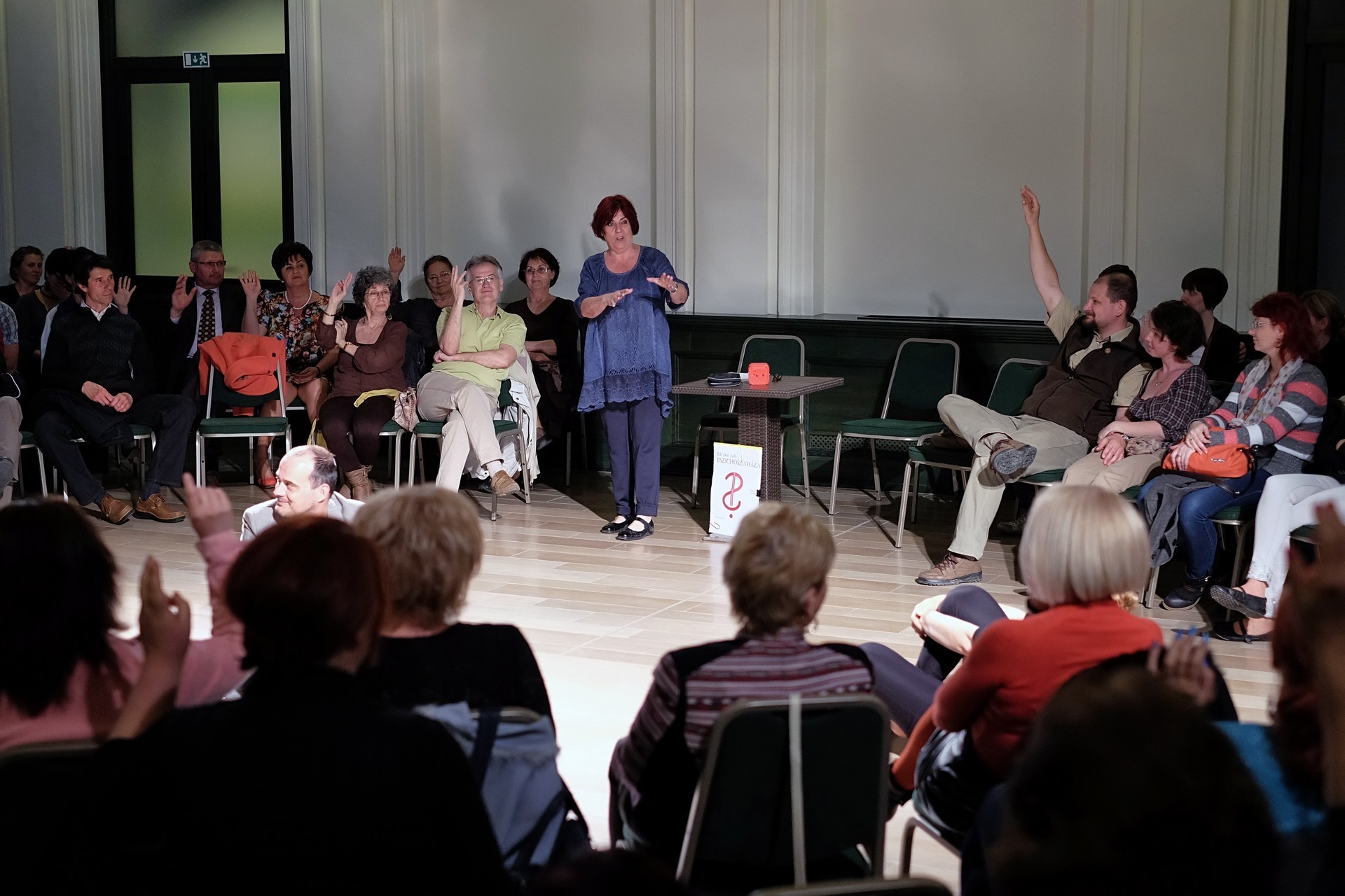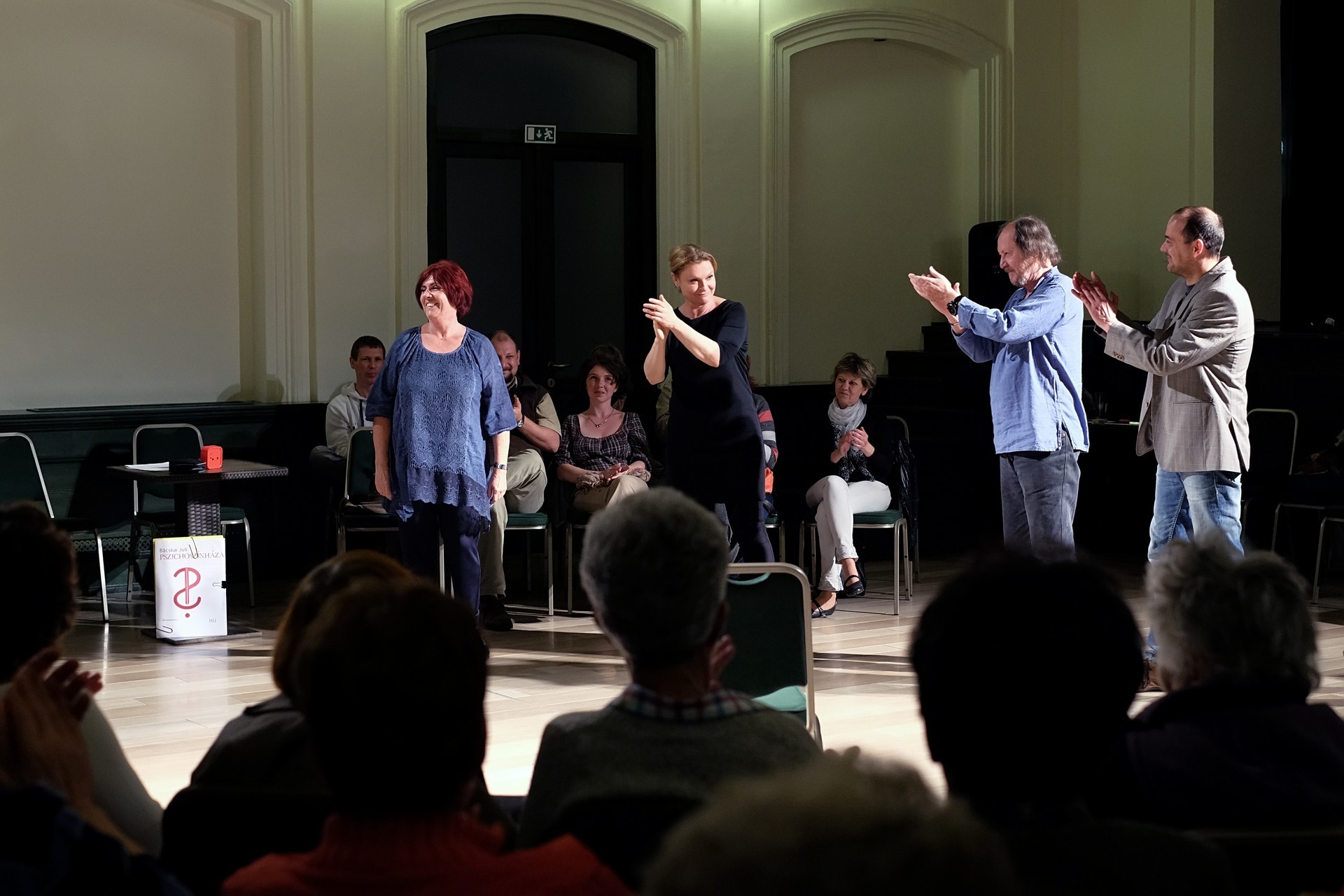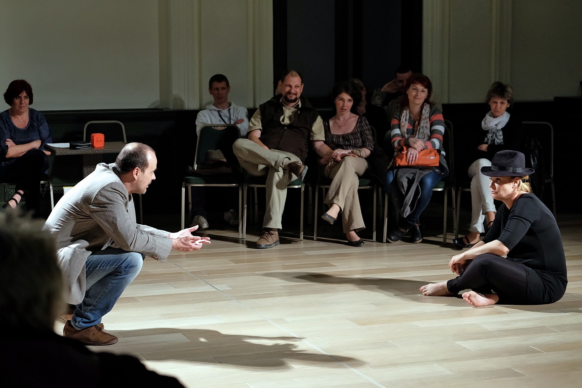 Az olykor kacagtató, olykor pedig épp feszültséggel teli helyzetek tetőfokán pedig a pszichológusnő váratlanul több alkalommal is megakasztotta az előadás menetét, hogy megkérje a nézőket, váljanak szereplőkké, azaz osszák meg egymással, vele és a színészekkel gondolataikat, tapasztalatainkat, érzéseinket a megjelenített témával kapcsolatosan. Ez persze nem volt kötelező, de azért a gyulaiak éltek a lehetőséggel.
