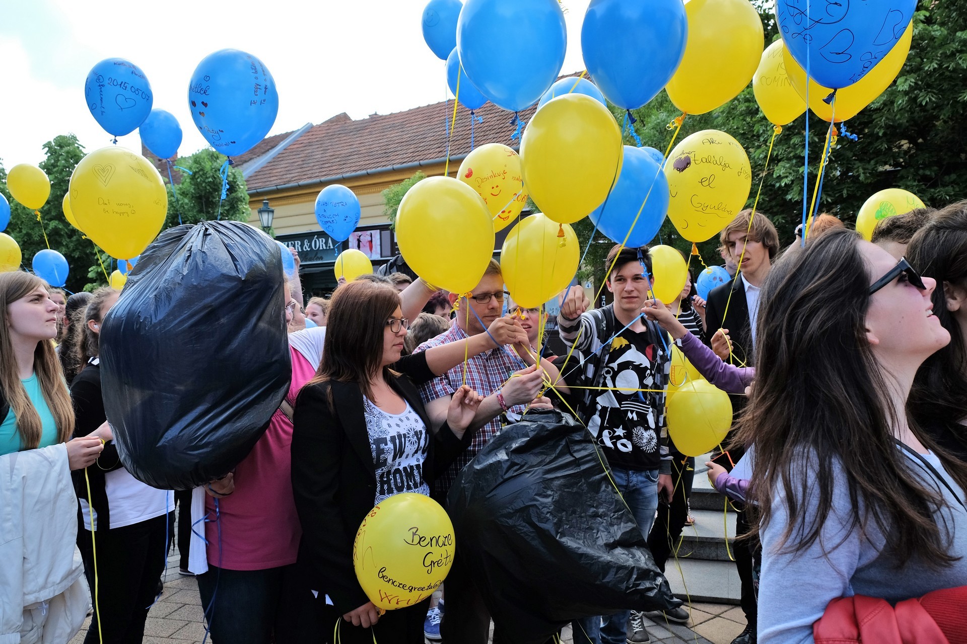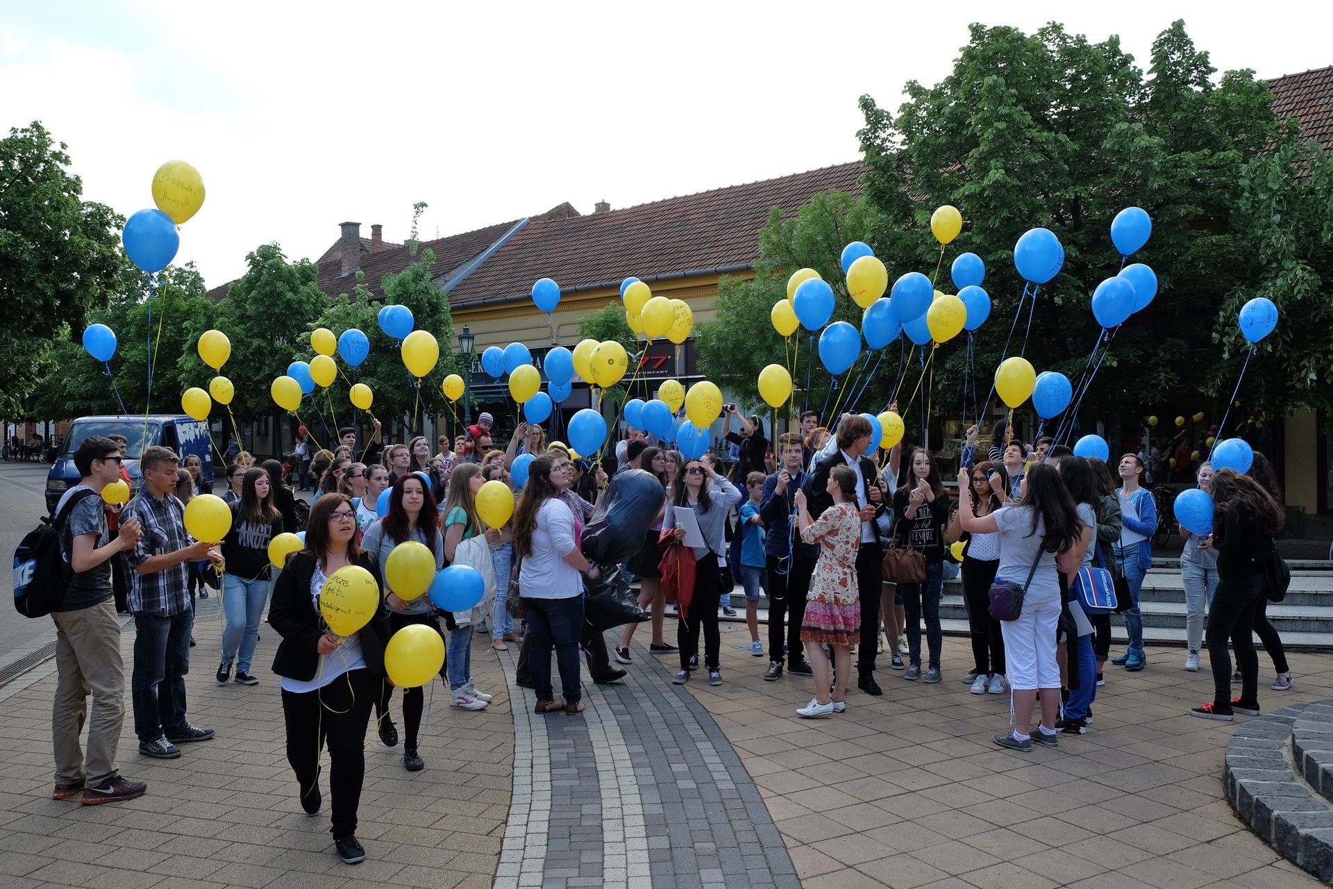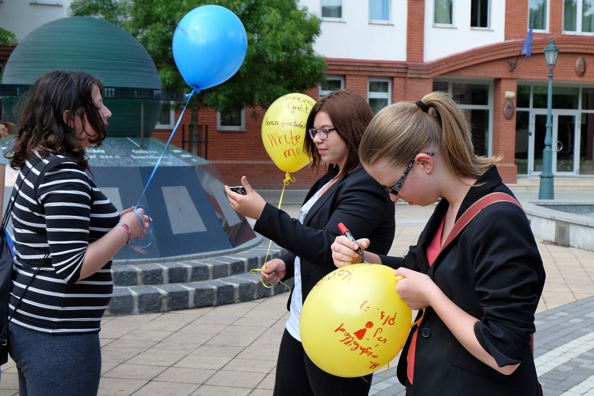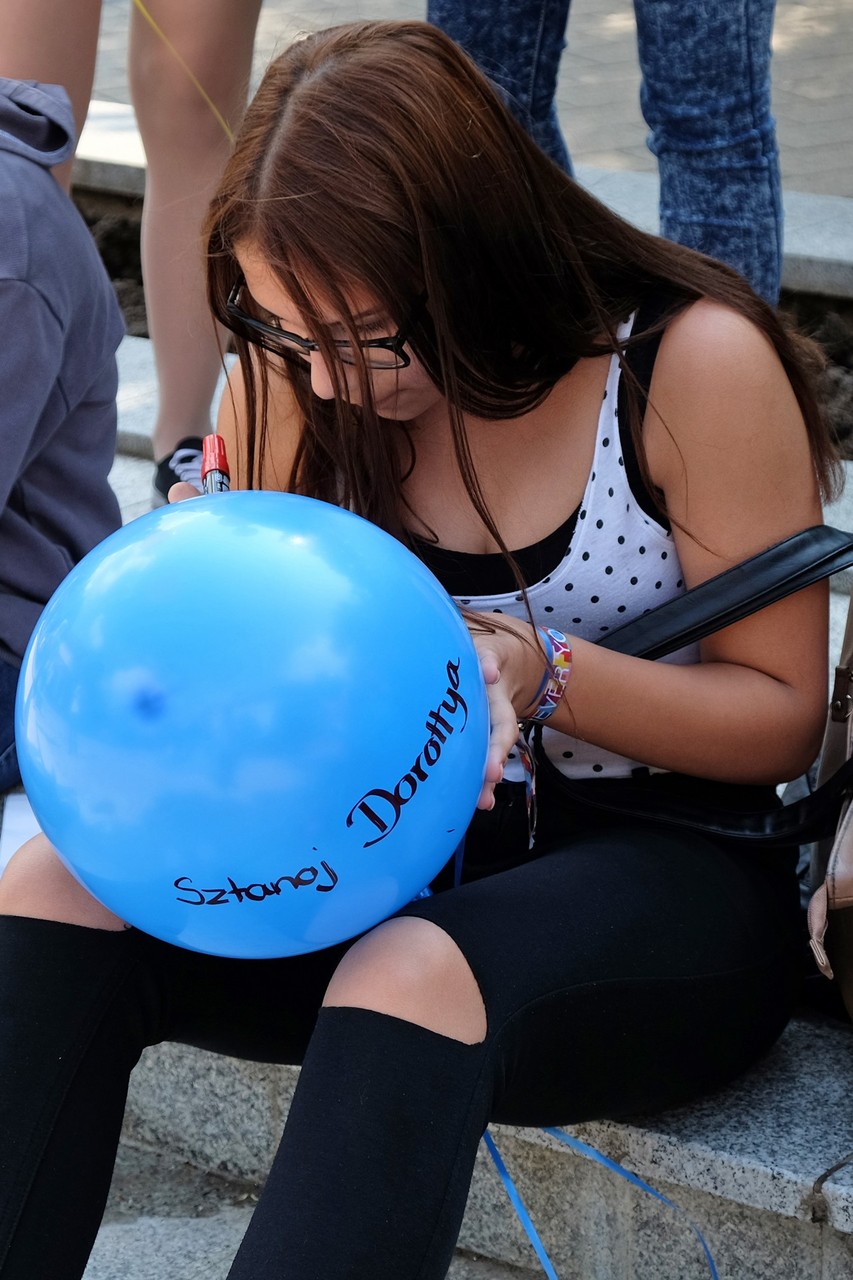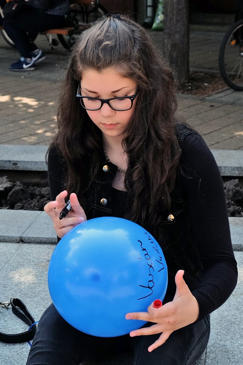 Végezetül, az egybegyűltek a Világórához vonultak, ahol 200 darab sárga és kék színű léggömböt osztottak szét a jelenlévők között. A diákok személyes üzenetekkel ruházták fel a színes lufikat, majd világgá kürtölve a konferencia sikerét, egyszerre engedték szélnek a ballonokat.
