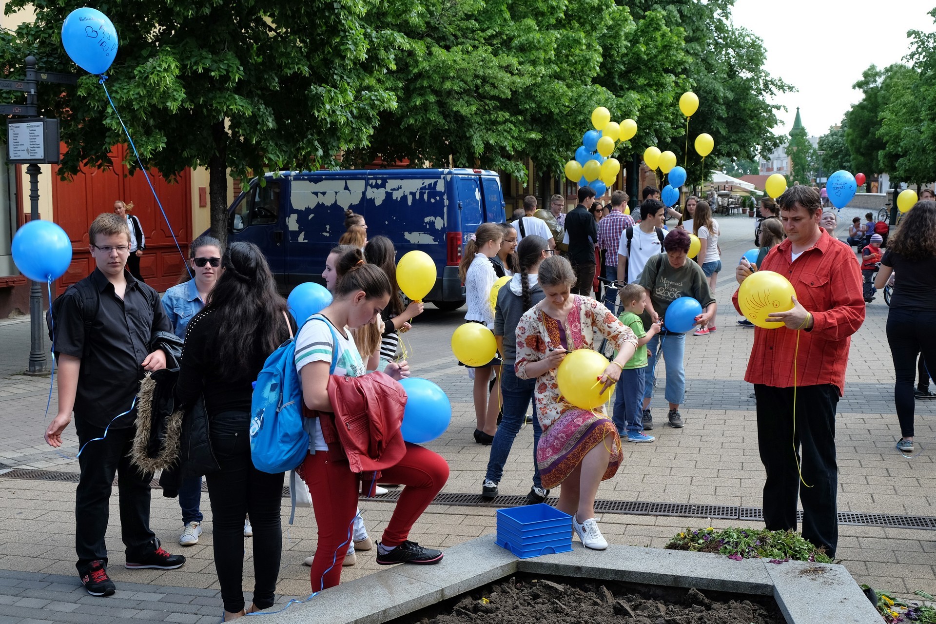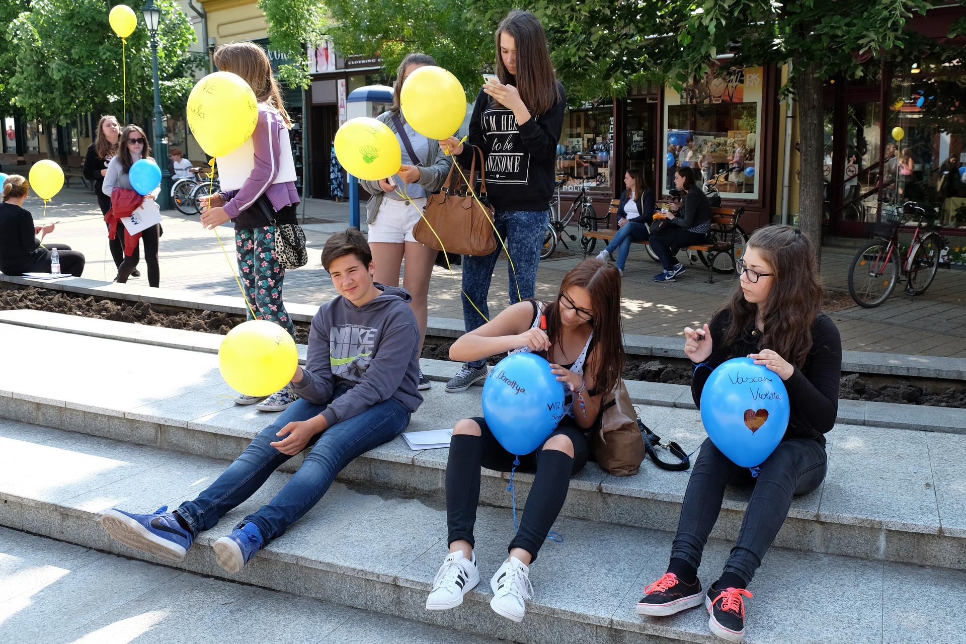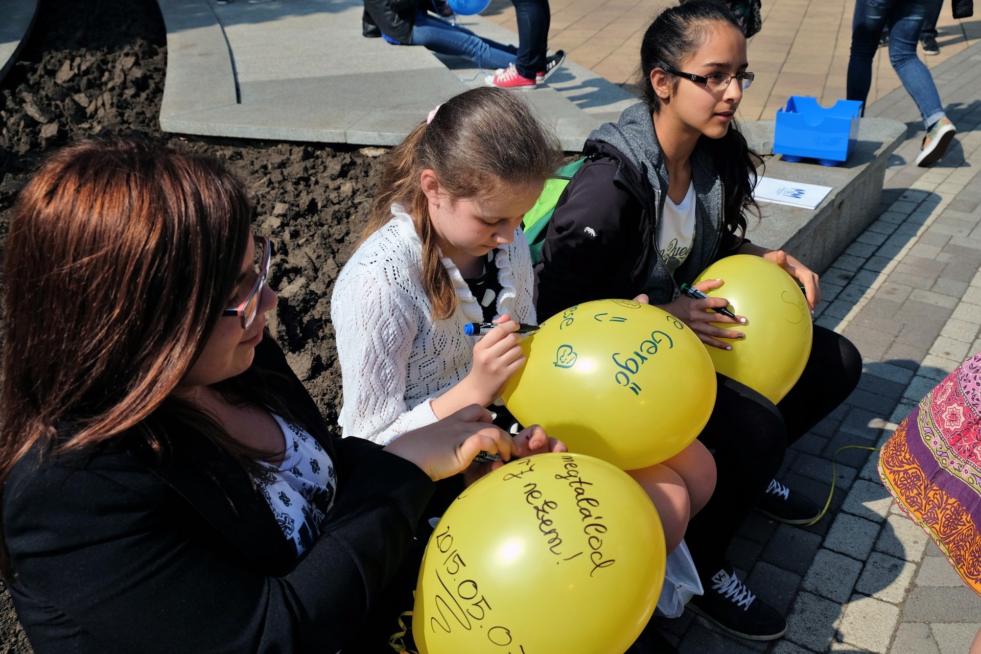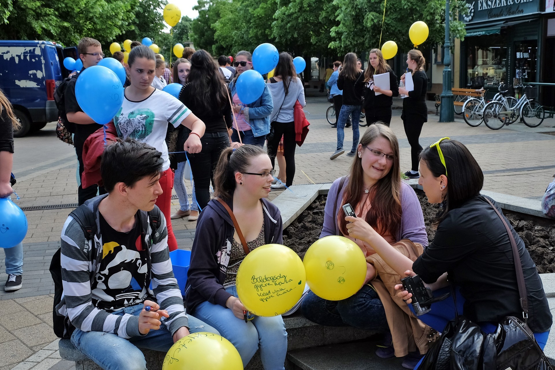 Végezetül, az egybegyűltek a Világórához vonultak, ahol 200 darab sárga és kék színű léggömböt osztottak szét a jelenlévők között. A diákok személyes üzenetekkel ruházták fel a színes lufikat, majd világgá kürtölve a konferencia sikerét, egyszerre engedték szélnek a ballonokat.