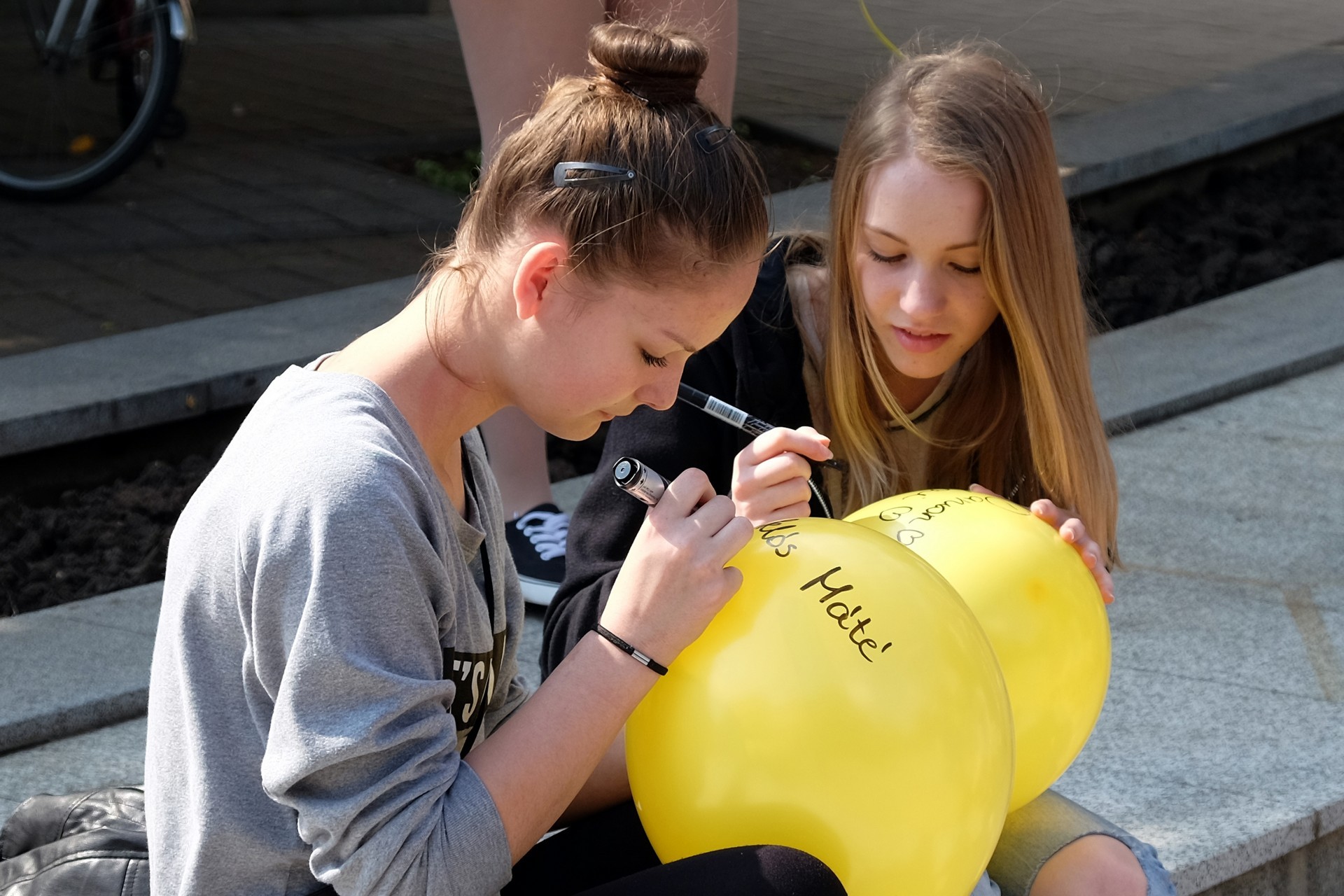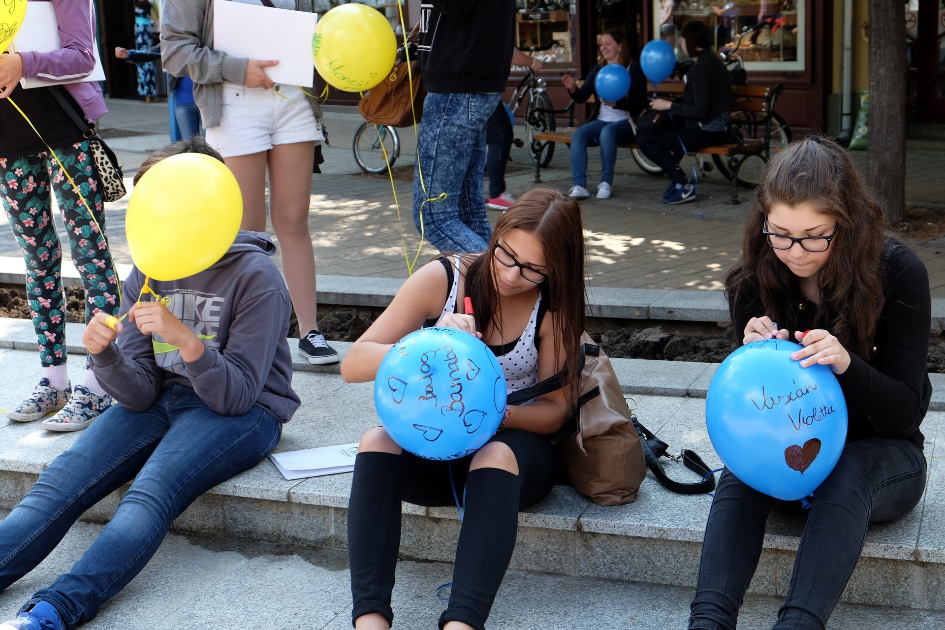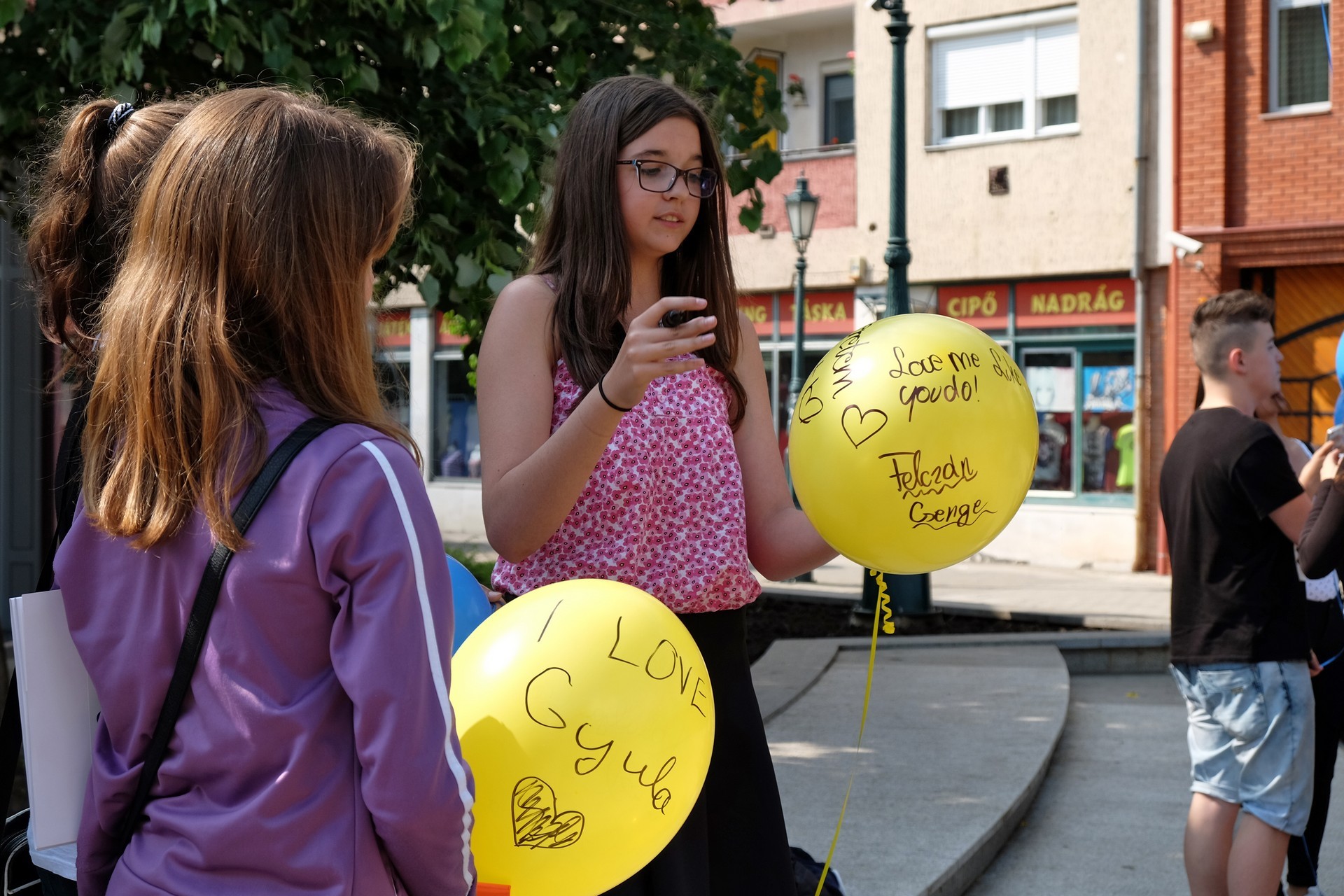 A Világóránál Szabó Adrienn és Szőke Alexandra, a Harruckern János Középiskola növendékei is lufit „eregettek”. A lányok lapunknak elárulták, mit írtak saját légipostájukra. A kötelező szignózás mellé Szabó Adrienn a Boldogság gyere haza című dal egy részletével üzente léggömbje ismeretlen megtalálójának, hogy legyen mindig boldog, míg Szőke Alexandra inkább egy örökérvényű, frappáns gondolattal szövegezte lufiját.