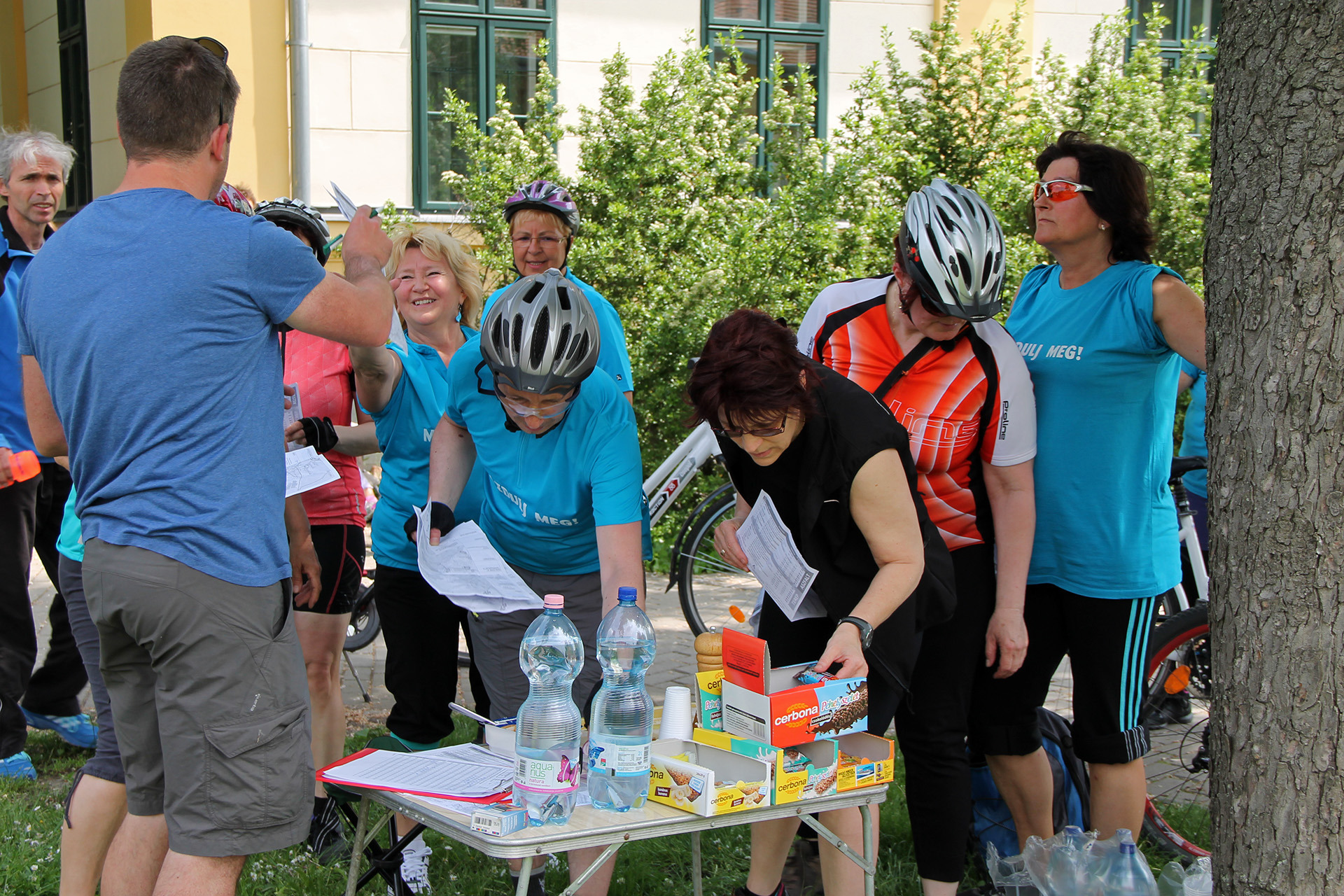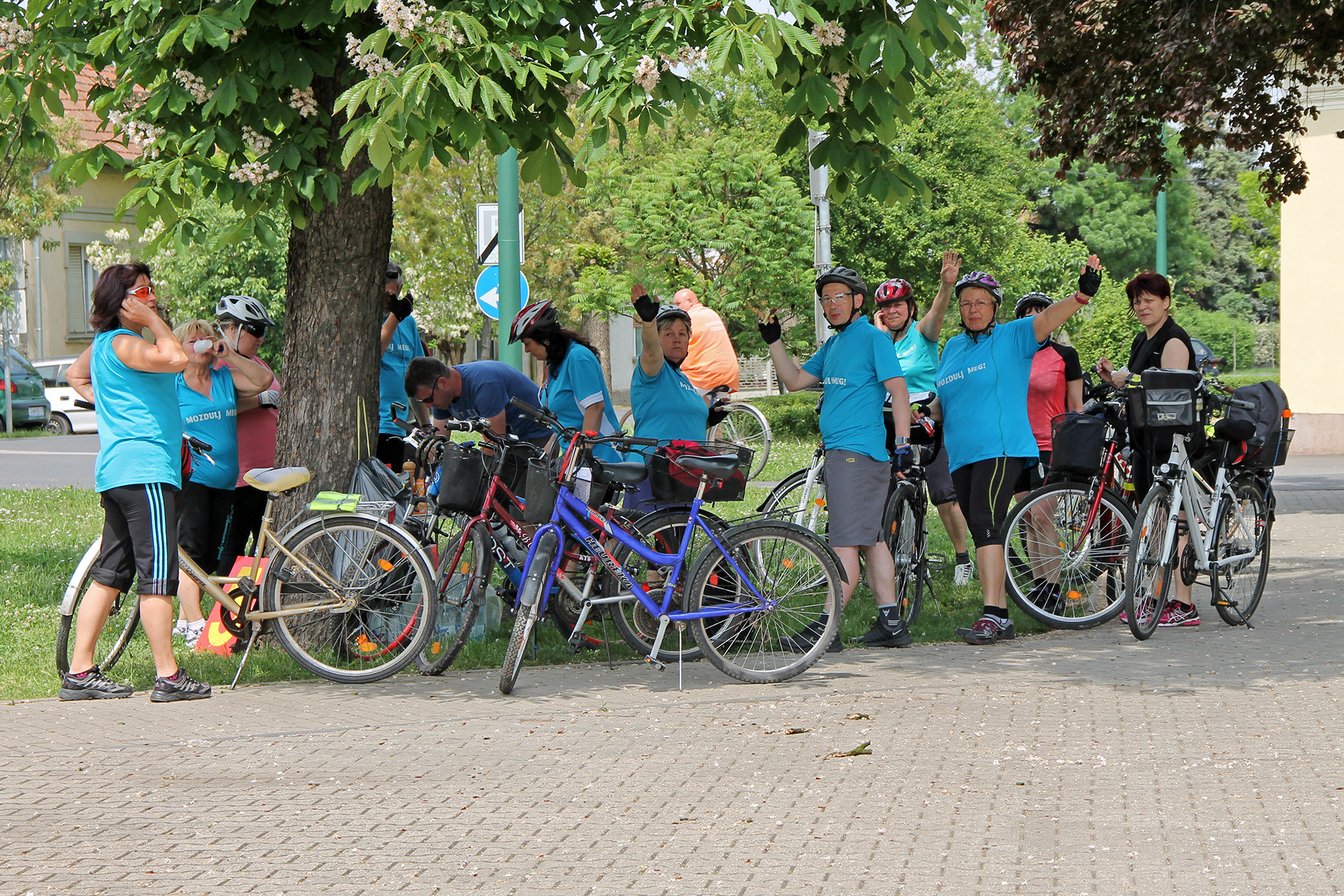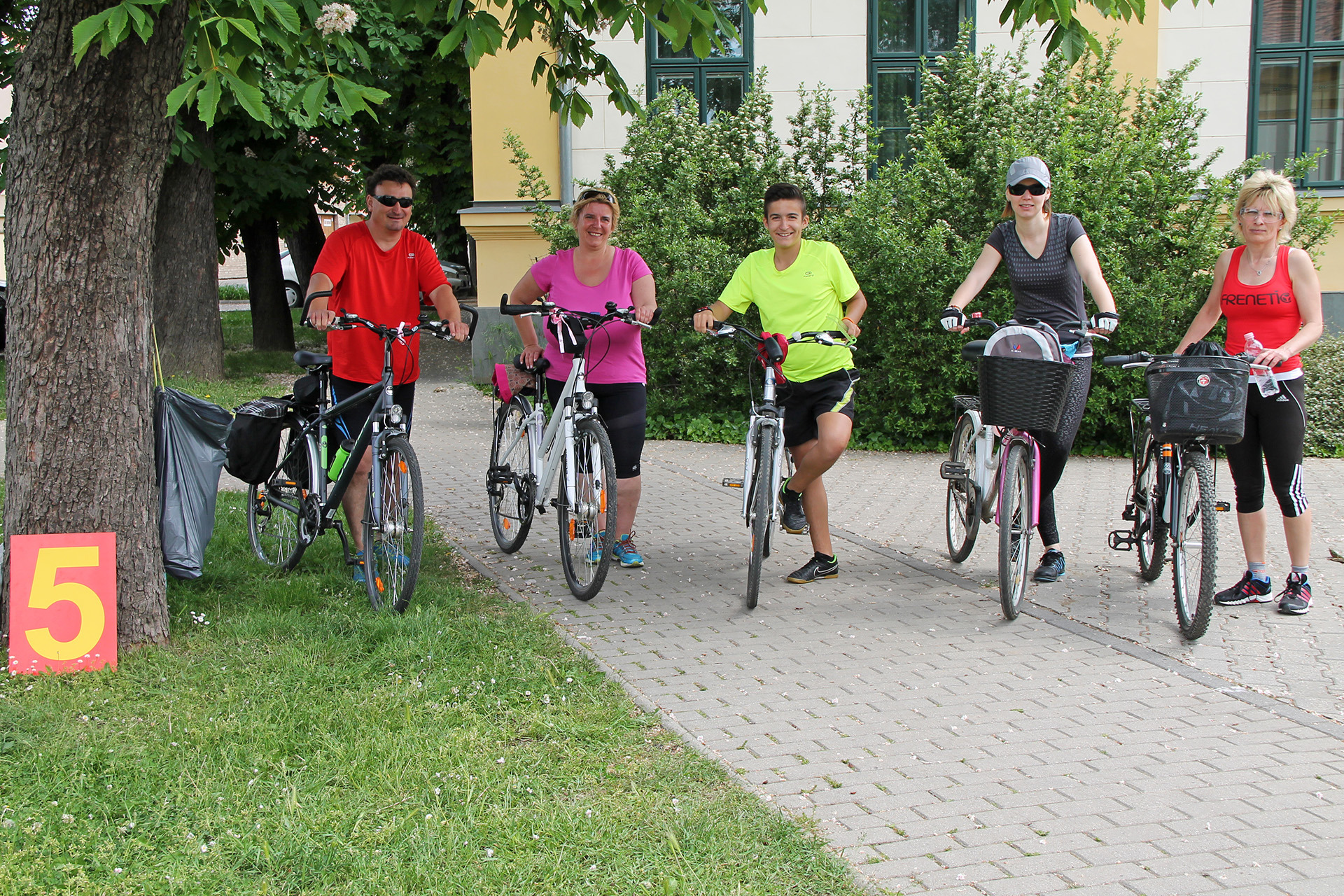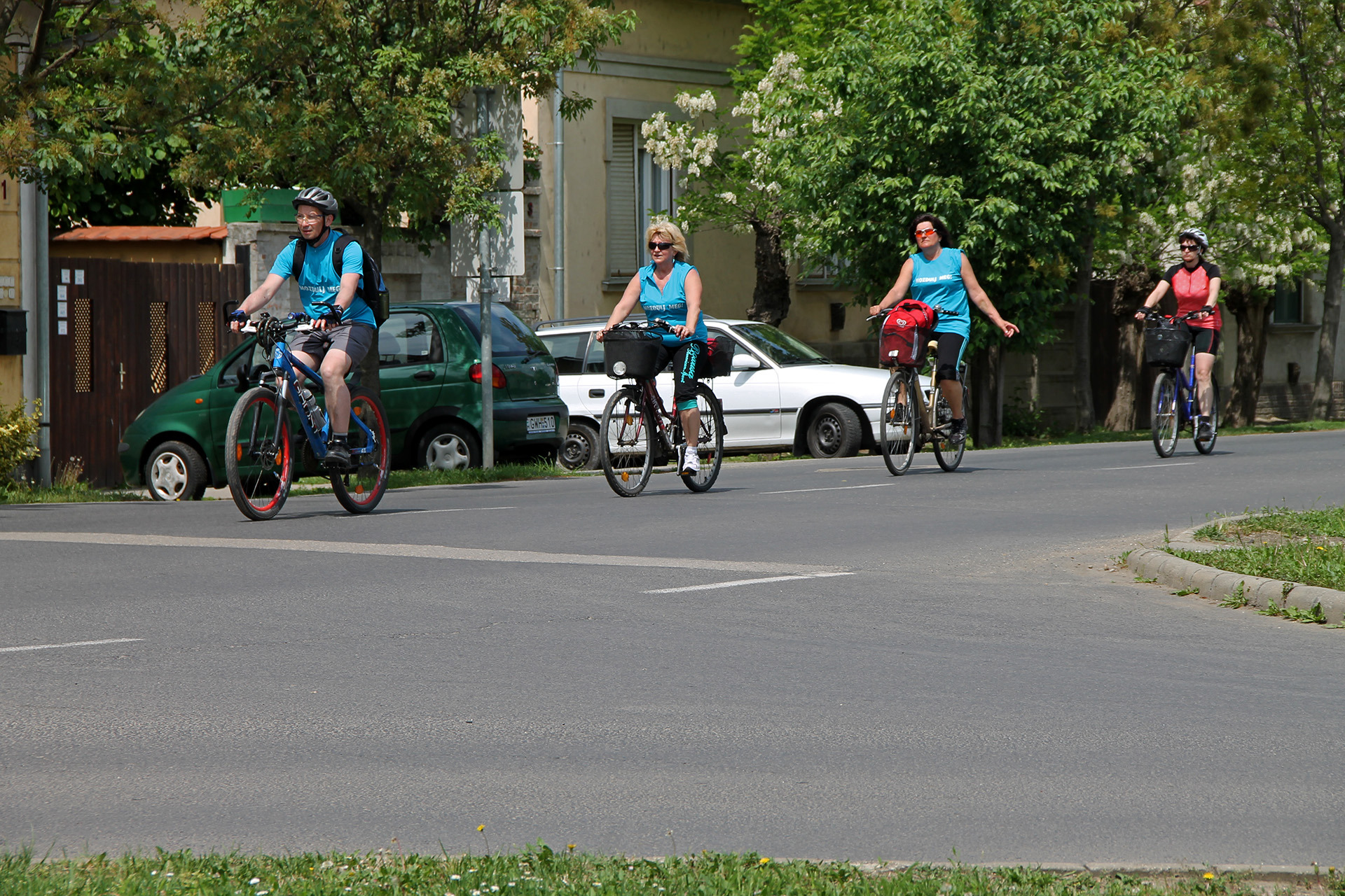 A gyulai Honvédtiszti emlékműnél lévő ellenőrző pontnál Kéri Juliannával és családjával találkoztunk, akik bringával vágtak neki a kihívásnak. Az édesanya lapunknak elmondta, hármasfogatuk Békéscsabáról rajtolt, majd Békésen és Gyulán haladtak keresztül, hogy végül ismét a megyeszékhelynek vegyék az irányt. Kéri Julianna hozzátette, ez már nem az első útjuk, hiszen nemrégiben a mellrák ellen, a gyulai gyermekosztályért és a sérült gyermekekért is biciklire pattantak.