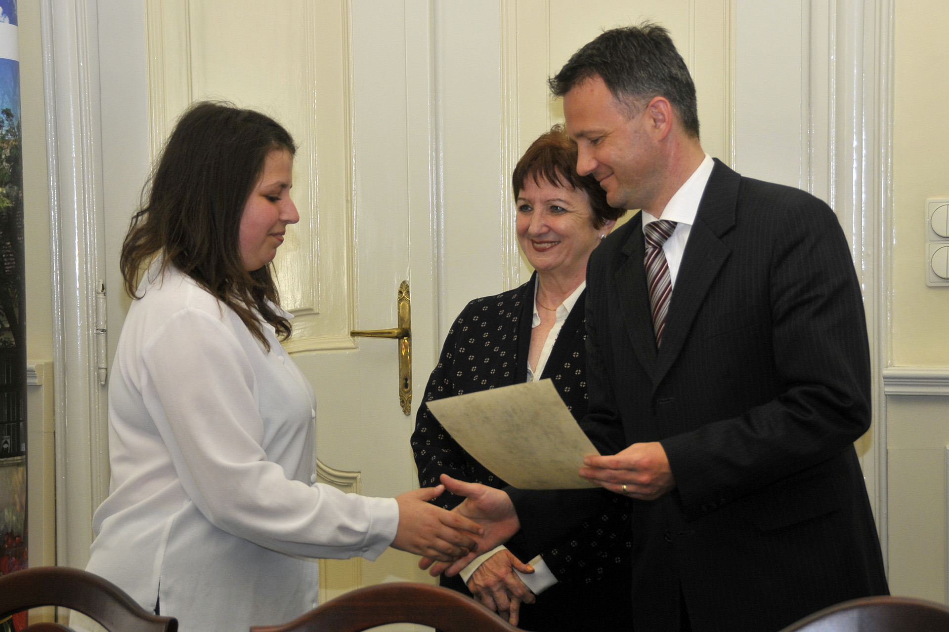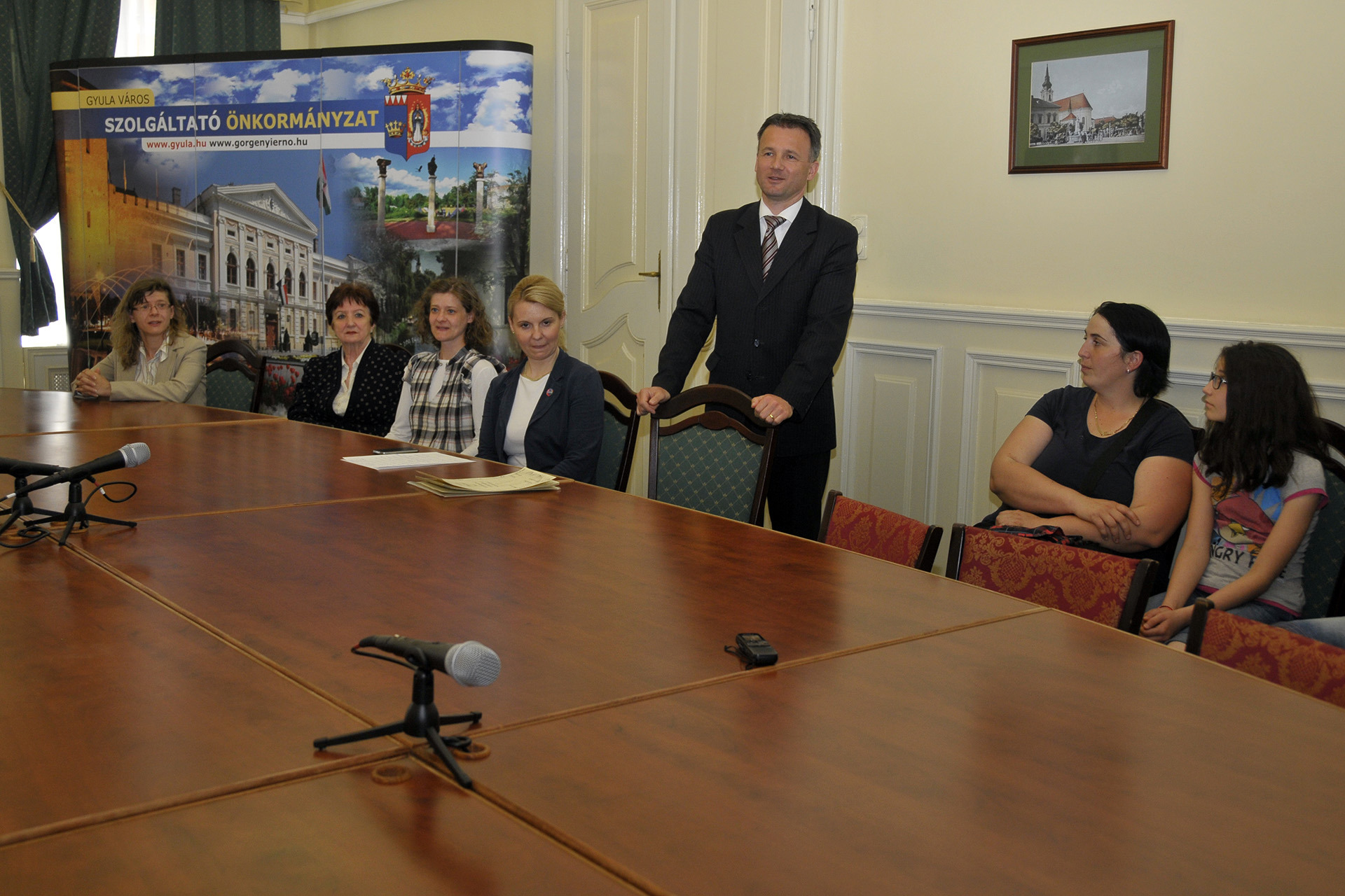 A képzés sikeres teljesítését igazoló oklevelet Becsyné dr. Szabó Márta címzetes főjegyző és dr. Görgényi Ernő, Gyula város polgármestere adta át az ifjaknak.