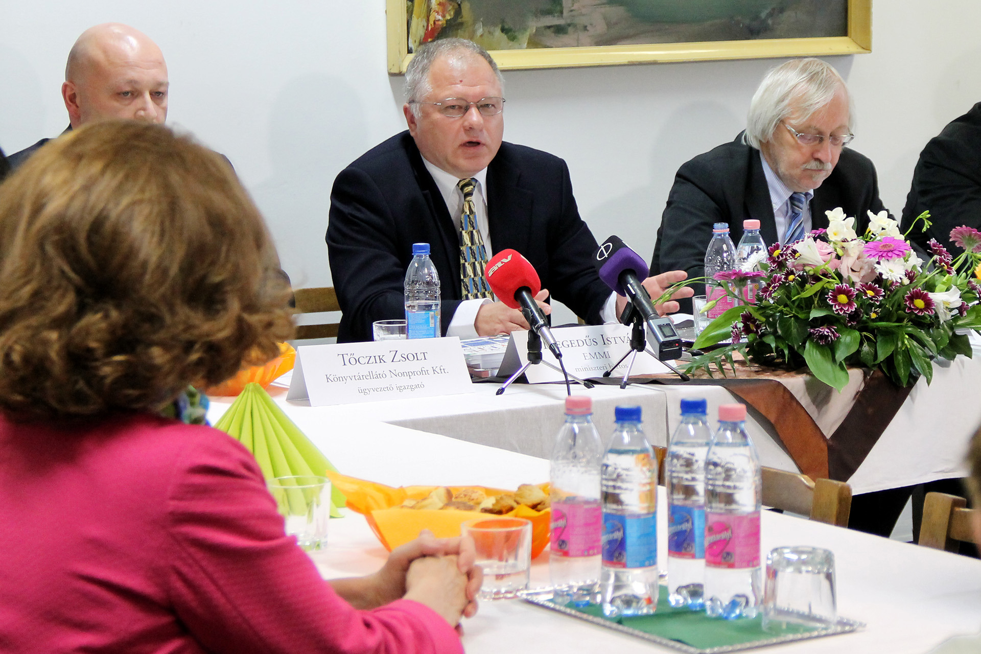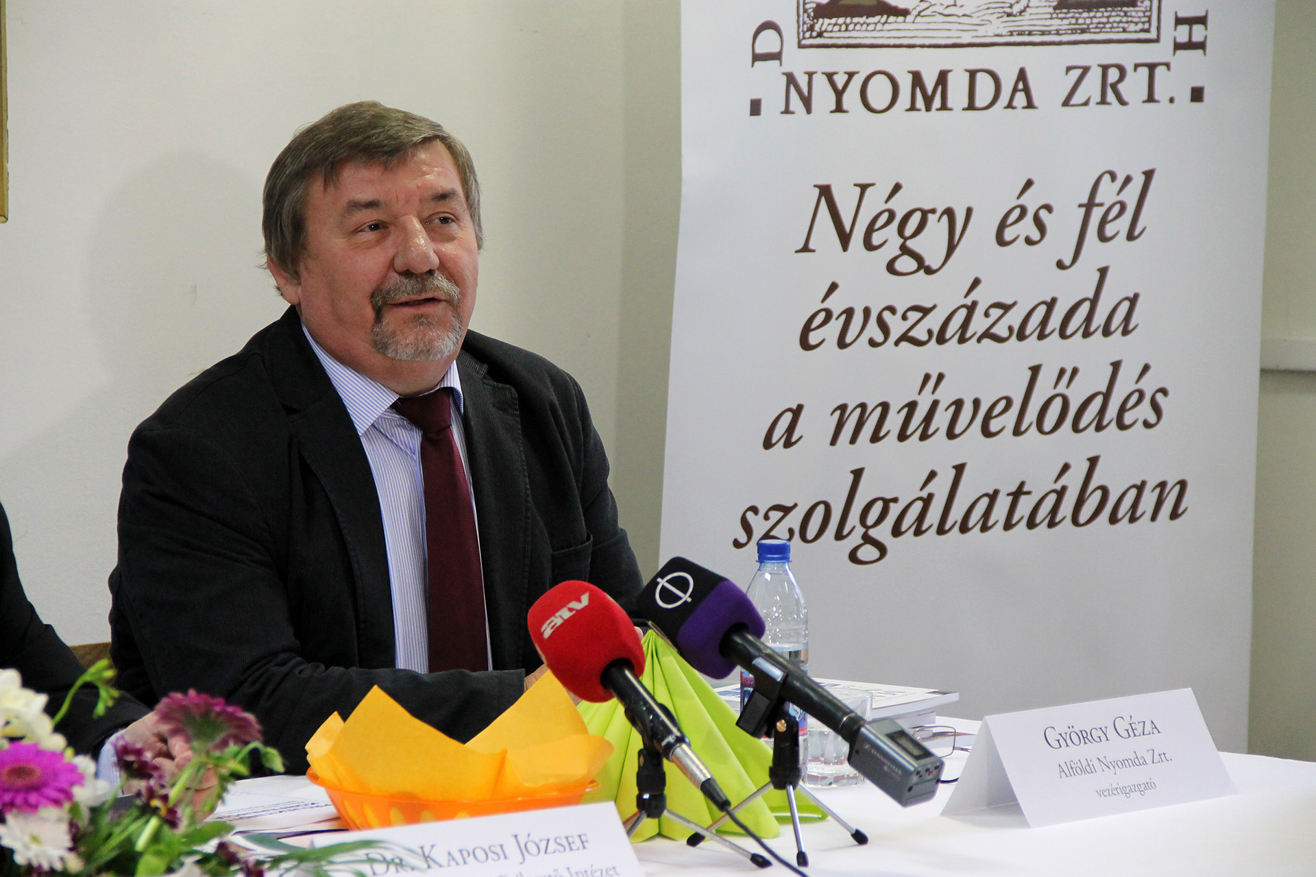 György Géza, a konzorciumvezető Alföldi Nyomda Zrt. vezérigazgatója a társulás létrejöttéről beszélt. Mint kifejtette, amikor tavaly ősszel az állam megvásárolta a volt Nemzeti Tankönyvkiadót, illetve a volt Apáczai Kiadót és beolvasztotta az Oktatáskutató és Fejlesztő Intézetbe, már sejthető volt, hogy az állam oldalán létrejön egy mammutszervezet, melynek igényeit csakis egy közbeszerzési eljárás keretében lehet kielégíteni. A négy konzorciumi tag – a debreceni, a gyulai, a szekszárdi és a lajosmizsei nyomda – már ekkor megkezdte a szerveződést.