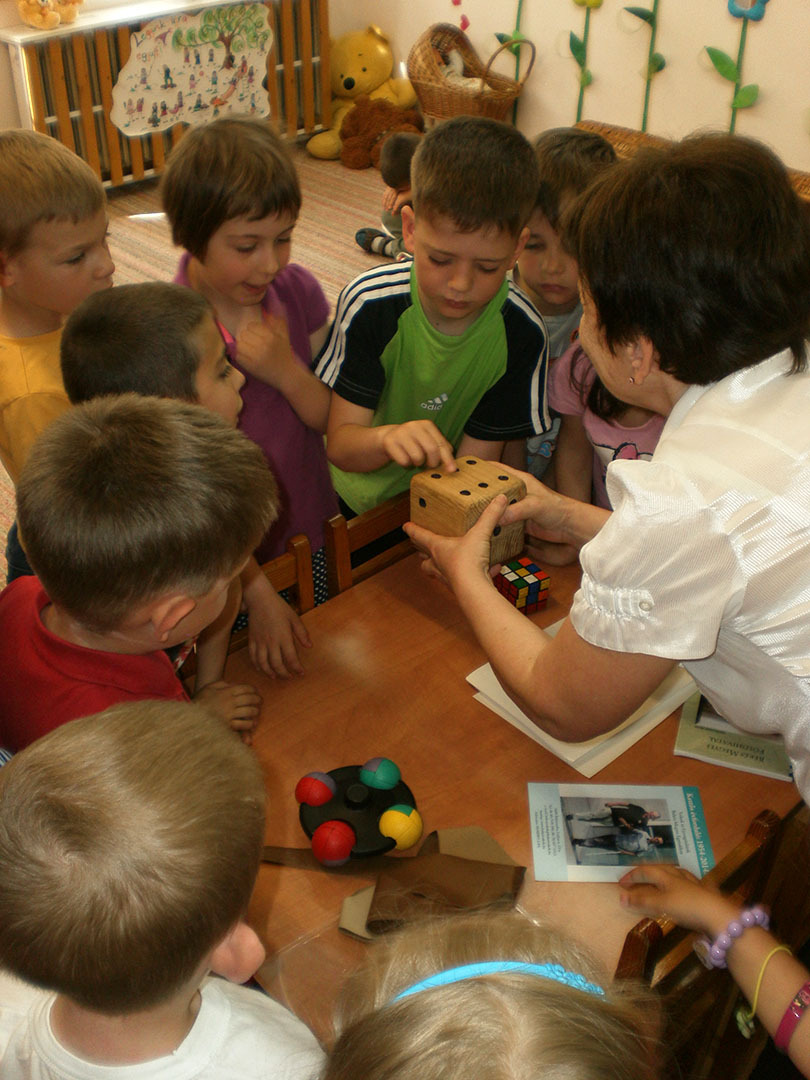 - A látogatónk számos olyan eszközt hozott, amivel közelebb kerülhettek a gyermekek a témához. Volt olyan feladat, amikor Ábrahám Györgyné bekötötte a kicsik szemét, akik ezután egy csörgőlabdával játszottak és hang után próbálták érzékelni, hogy merre gurul a labda. Az ovisok egy speciális Rubik-kockát, és egy olyan dobókockát is kipróbálhattak, amelynek a pöttyeit tapintással lehetett érzékelni – mesélte Bajóné Aradszki Anett.