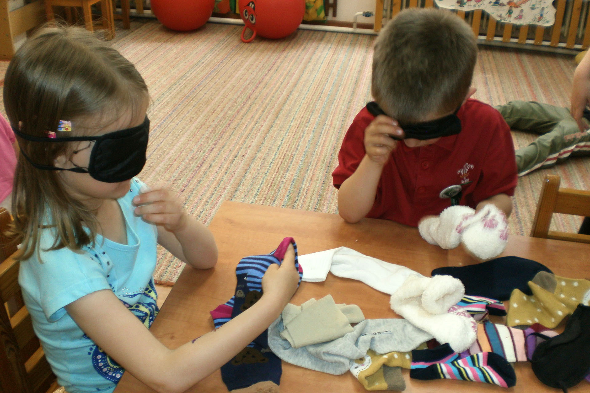 A pöttömök azt is megtudták, milyen érzés vakon – bekötött szemmel – zoknit párosítani, vagy épp csak az ízlelőbimbóikra, kezeikre és szaglószervükre hagyatkozva kitalálni, milyen étel van előttük. Bajóné Aradszki Anett megjegyezte, a gyerekek lelkesen vettek részt a feladatokban, sőt automatikusan becsukták szemeiket a játékok során.