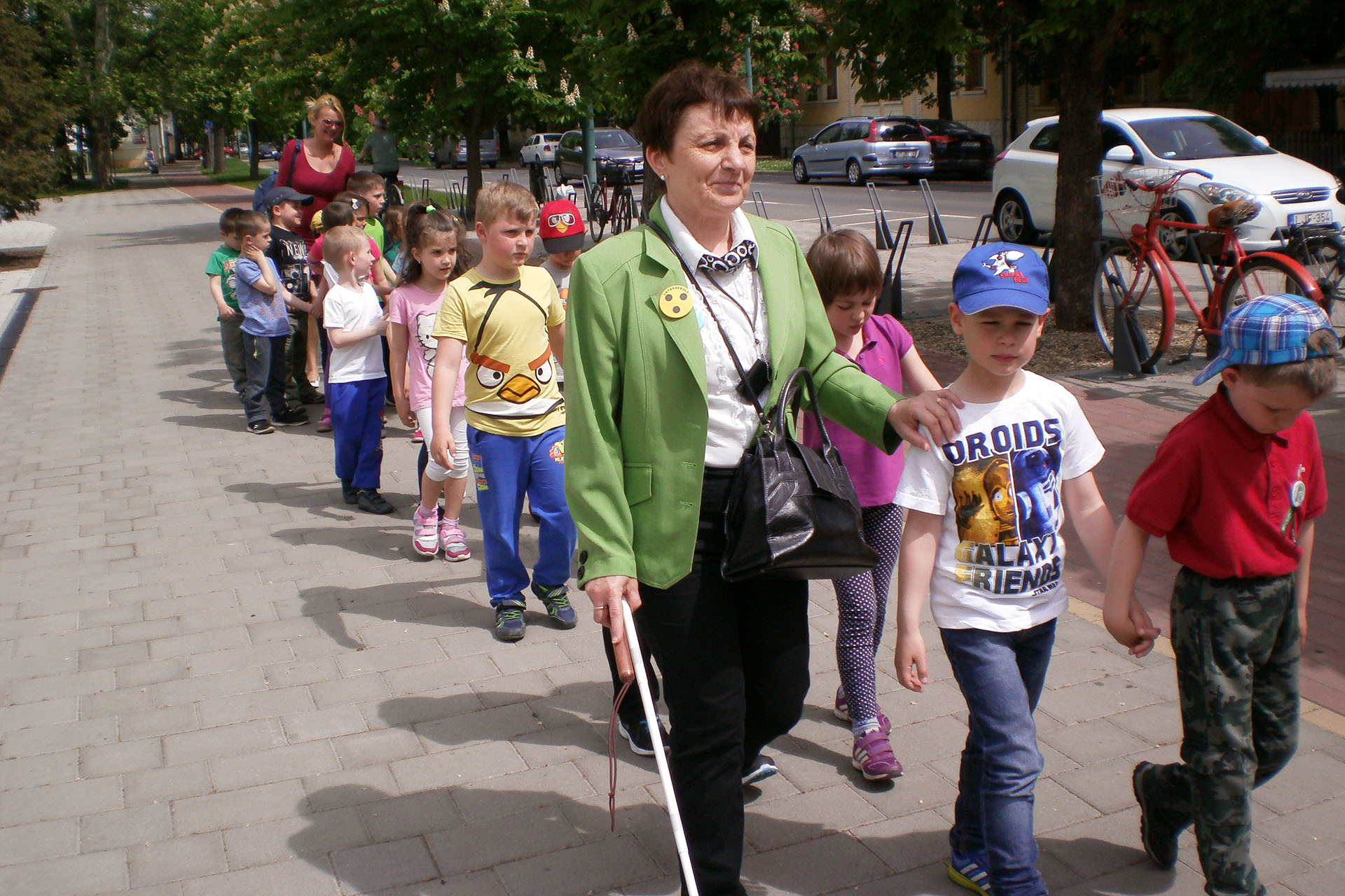 - Ábrahám Györgyné arról is beszélt, hogy egy látássérült hogyan gondoskodik a gyermekéről, ehhez beszélő lázmérőt és mérleget is hozott. Azt is megtanította az ovisoknak, hogy hogyan tudnak segíteni a vakoknak az utcán. A foglalkozás végén el is indultunk vele egy sétára, ahol felváltva segítették őt a gyermekek. Útközben bemutatta, hogyan használják a vakok a fehérbotot a tájékozódásban – részletezte az óvodapedagógus.