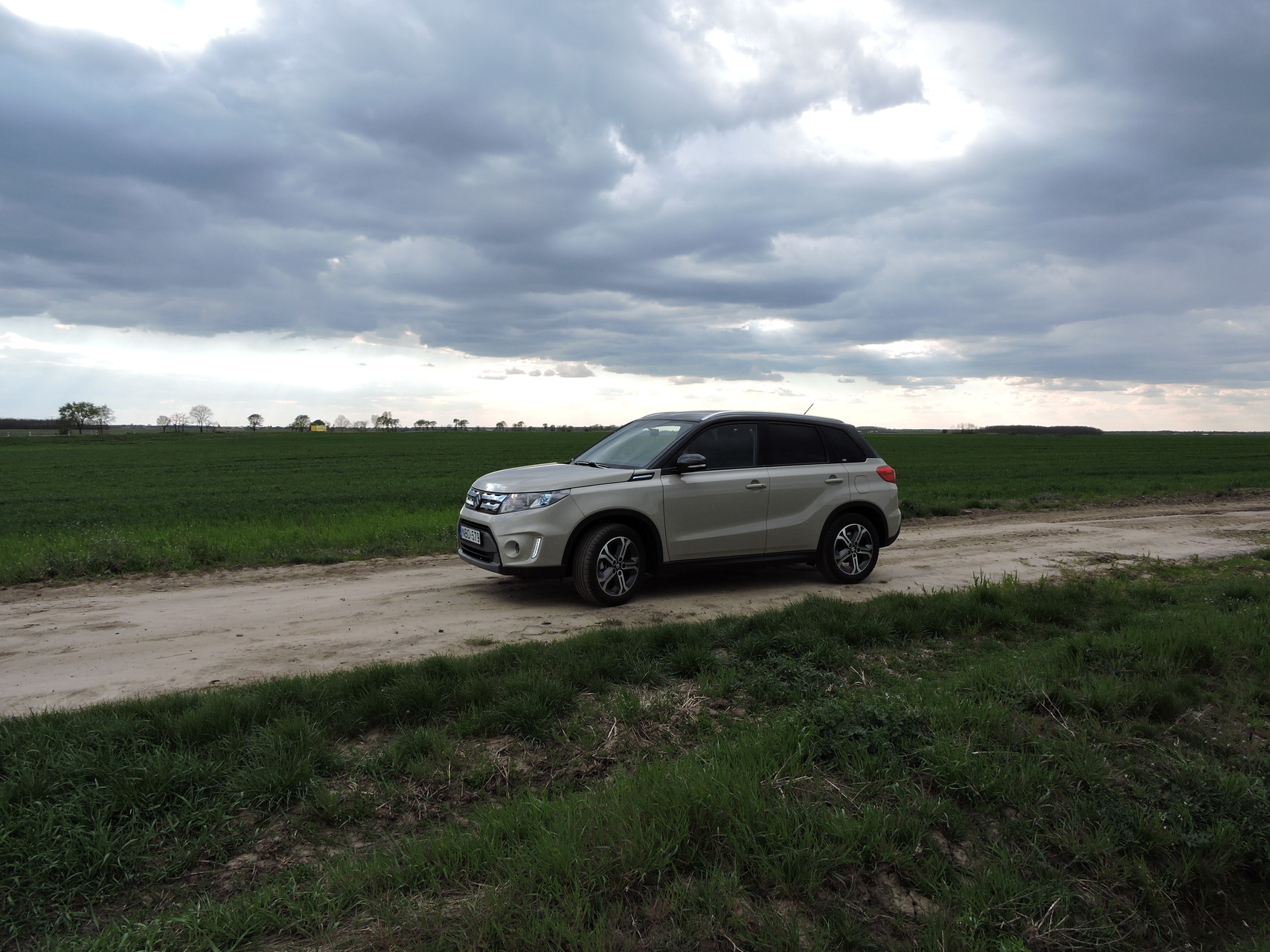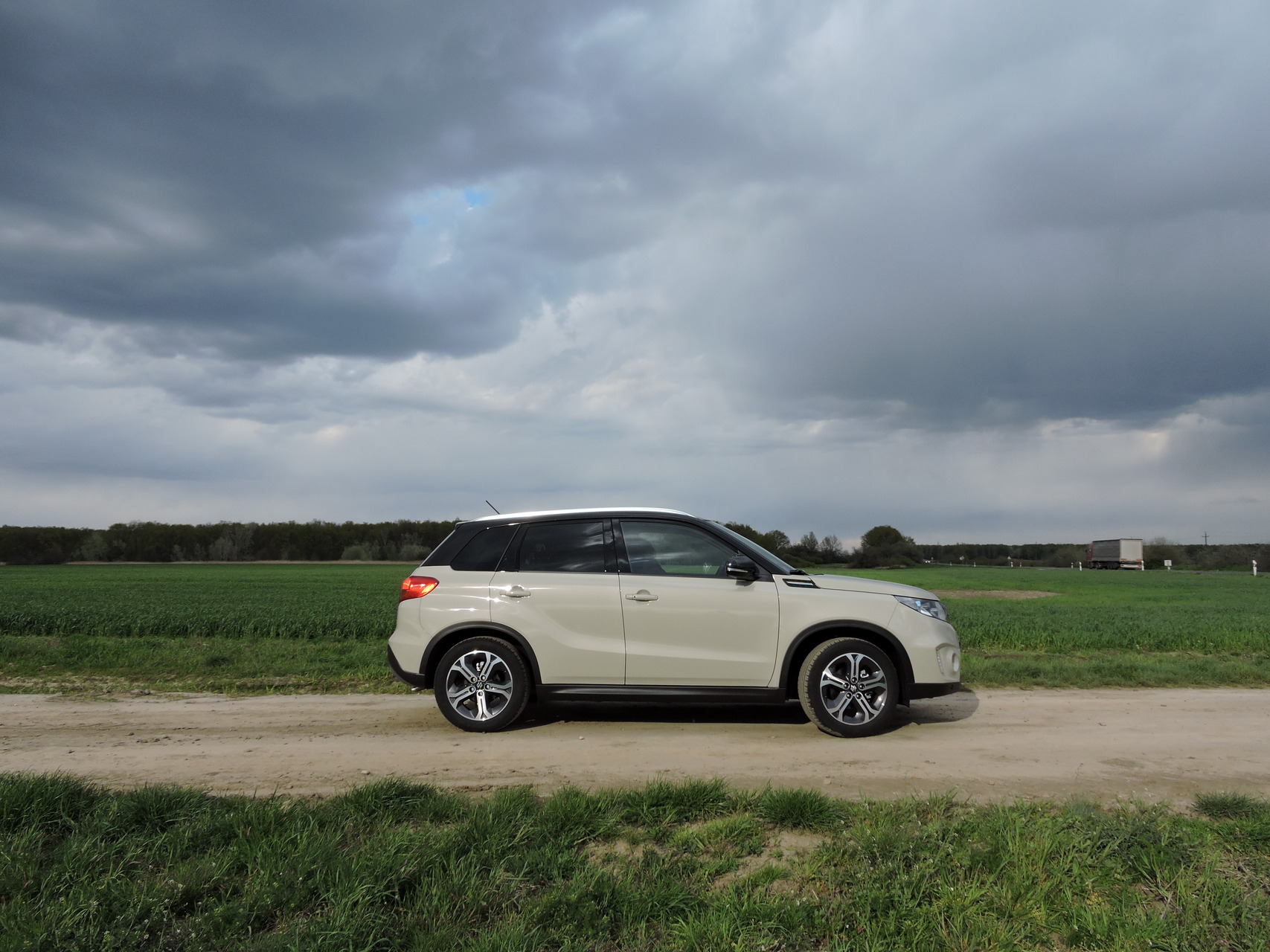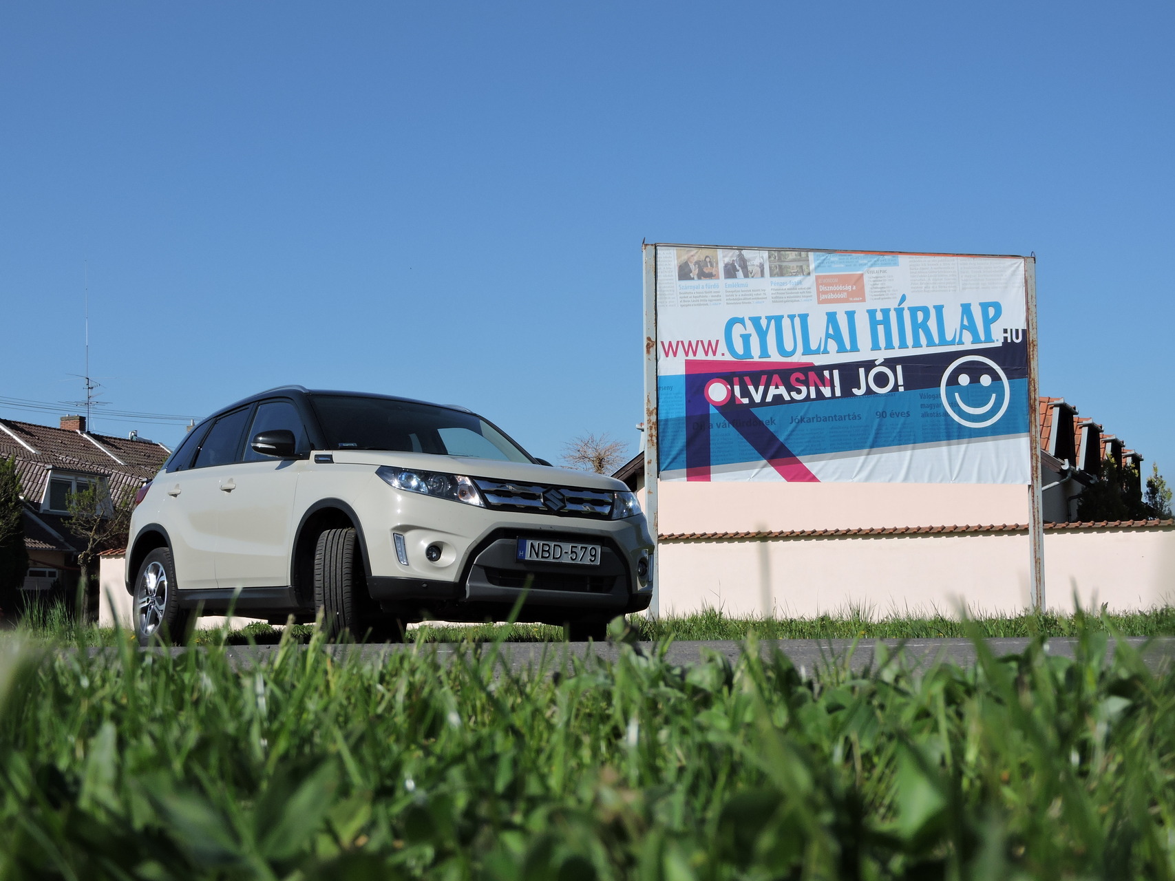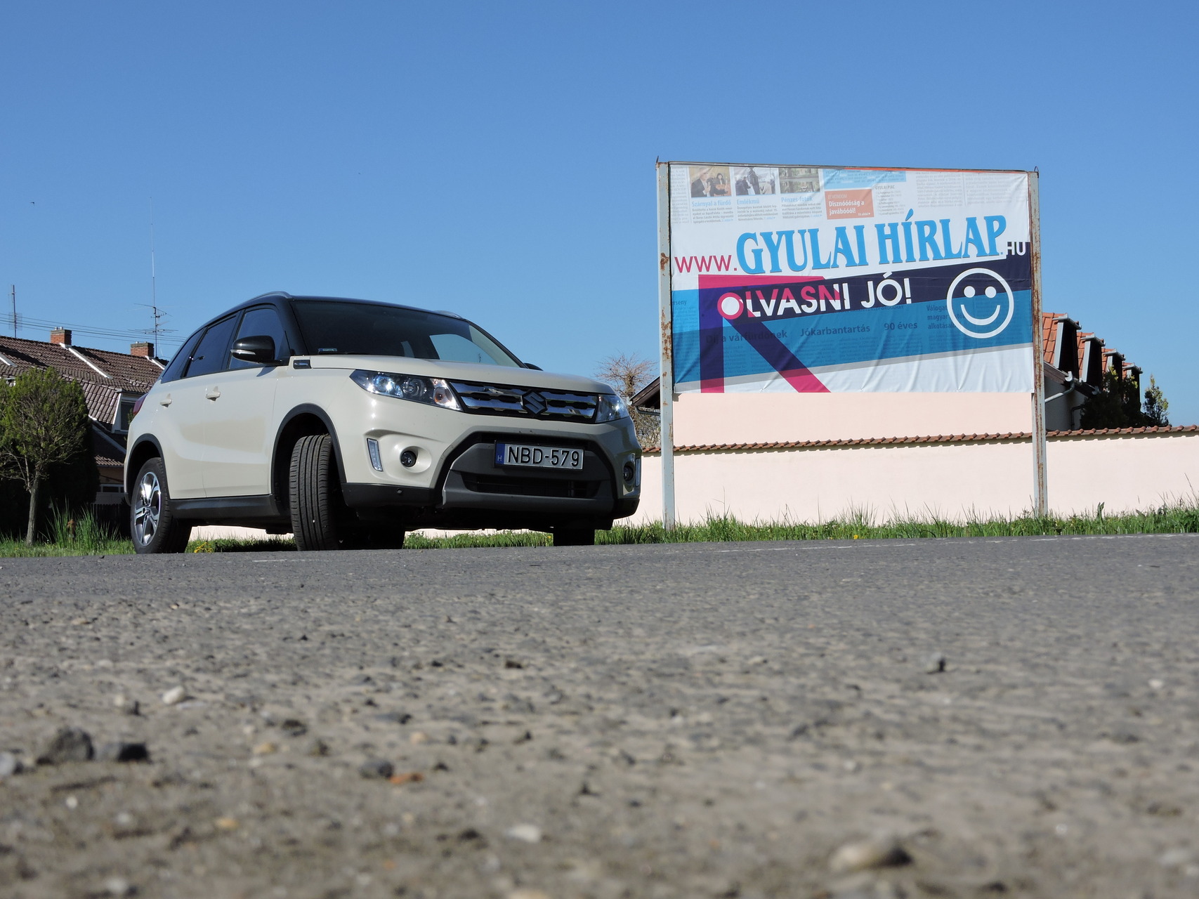 Az új Suzuki Vitara mérete elsőre megrettentett engem, a mini autókat kedvelő embert. A Gyula Autóház kereskedése előtt várt a két színre fújt, fullextrás 1,6-os benzines tesztautó. Ami a színeket illeti, három új is megtalálható a választékban. Érdemes és hasznos egy picit puskázni a Suzuki hivatalos websíkjáról, mert felettébb érdekes, ahogy és amit a színekről írnak.