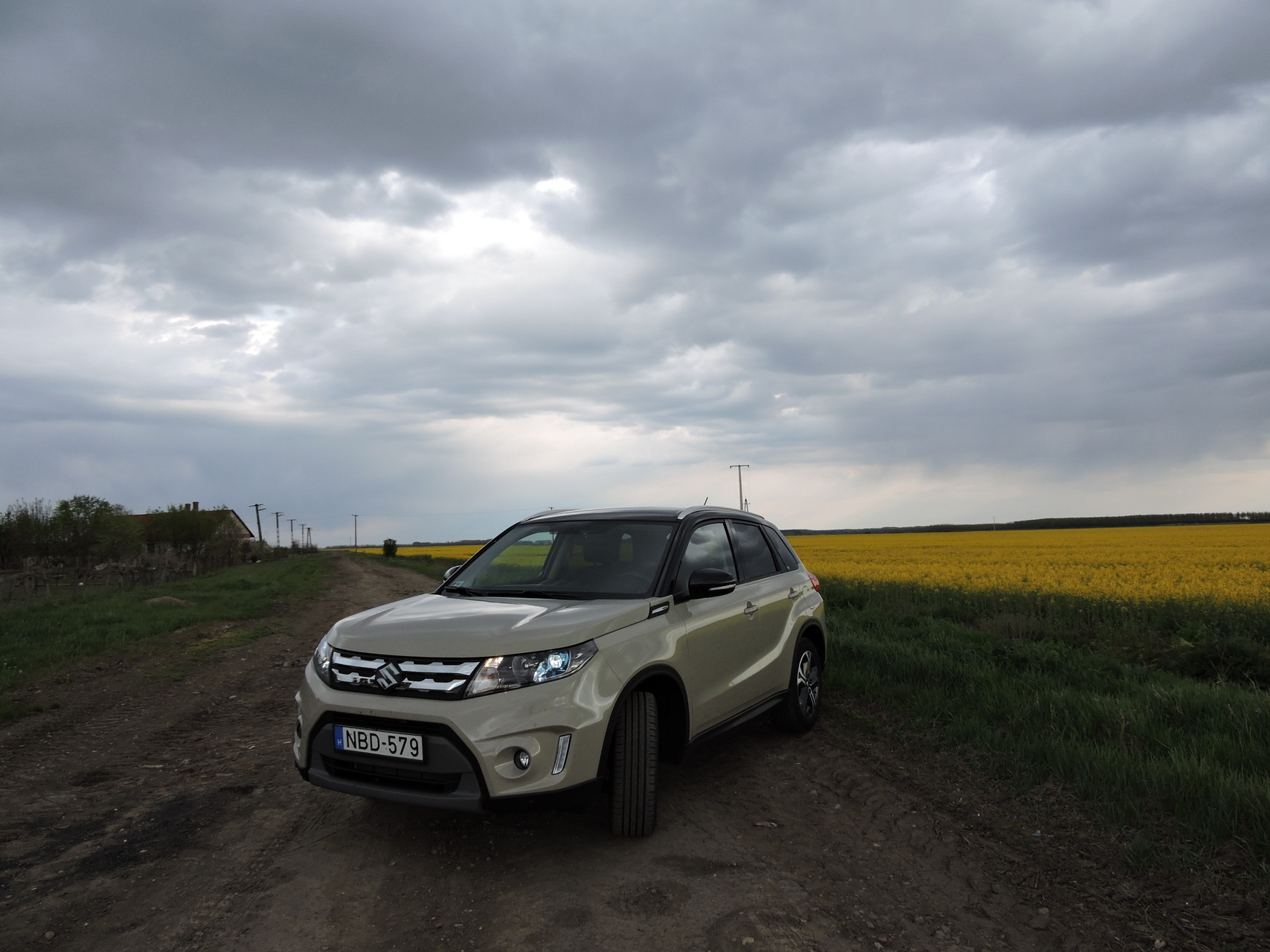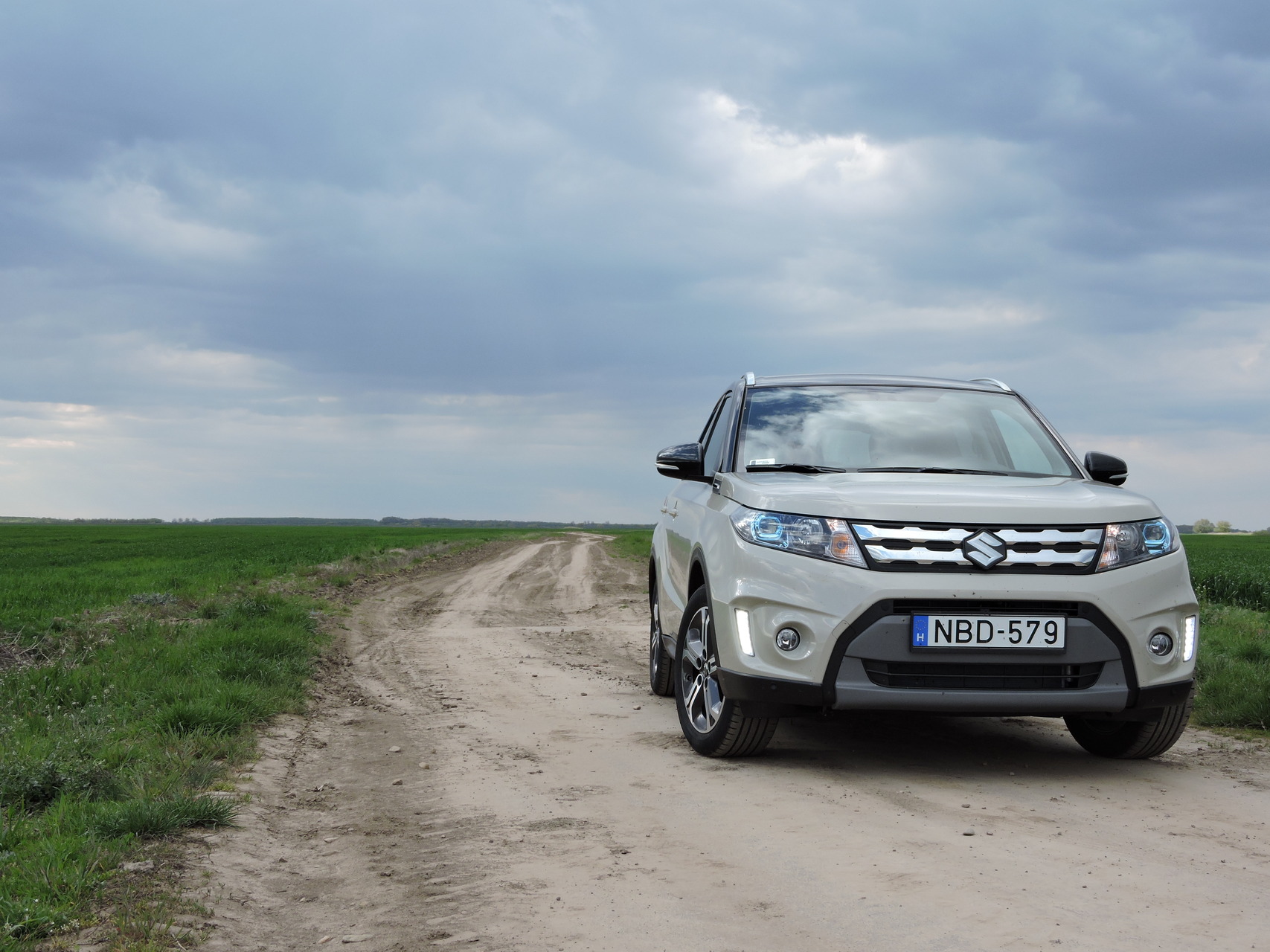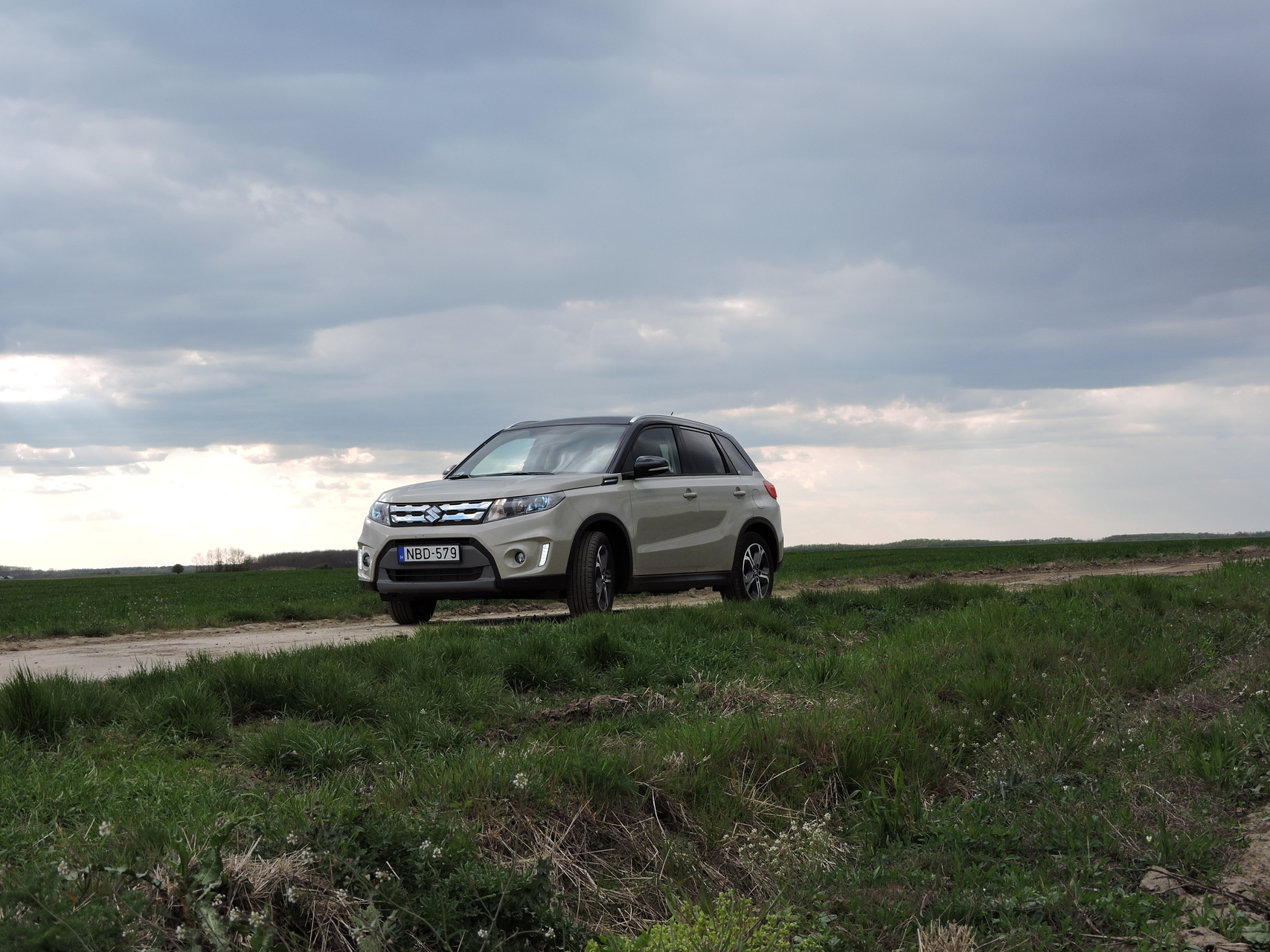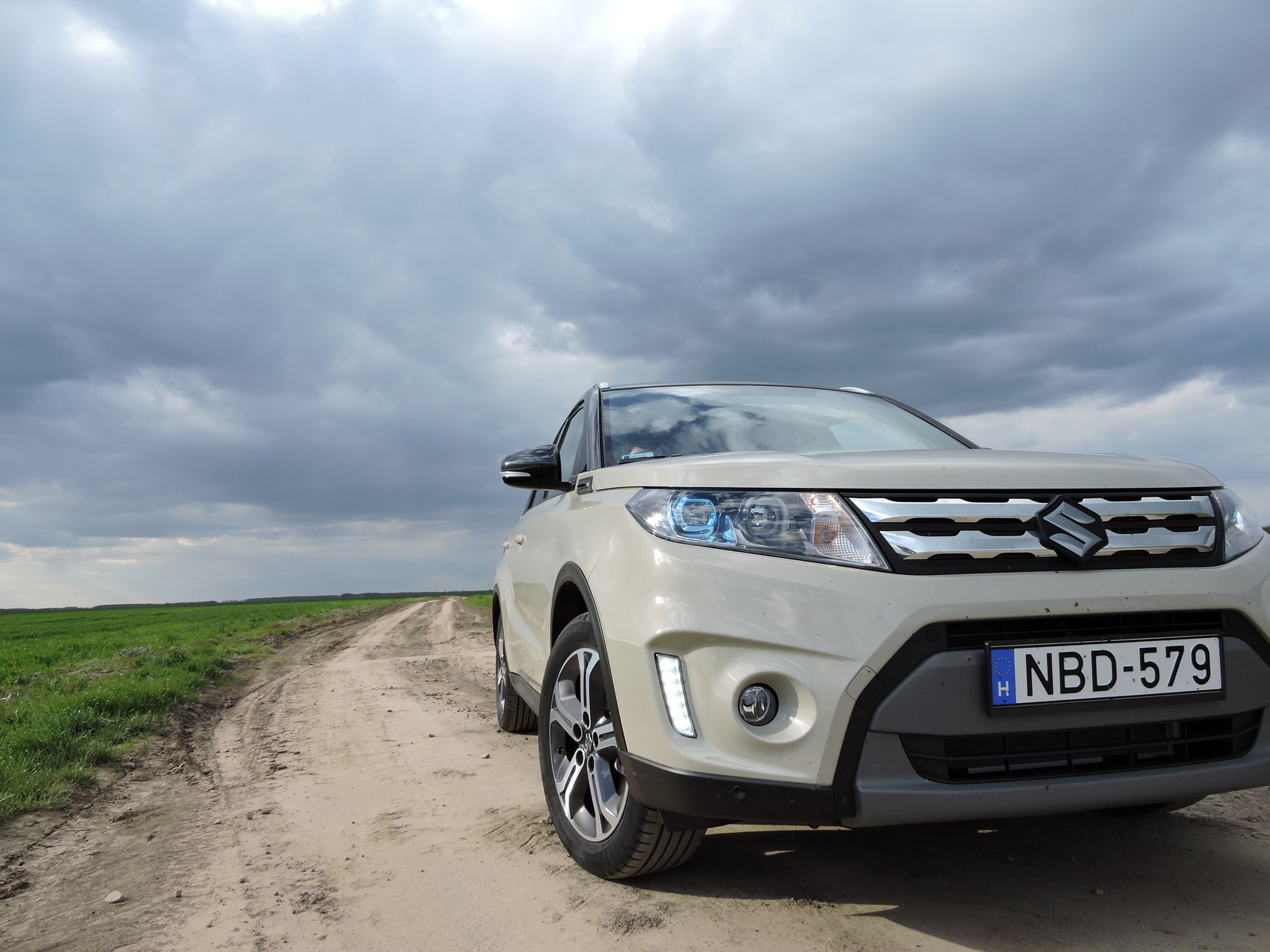 Az új Suzuki Vitara mérete elsőre megrettentett engem, a mini autókat kedvelő embert. A Gyula Autóház kereskedése előtt várt a két színre fújt, fullextrás 1,6-os benzines tesztautó. Ami a színeket illeti, három új is megtalálható a választékban. Érdemes és hasznos egy picit puskázni a Suzuki hivatalos websíkjáról, mert felettébb érdekes, ahogy és amit a színekről írnak.