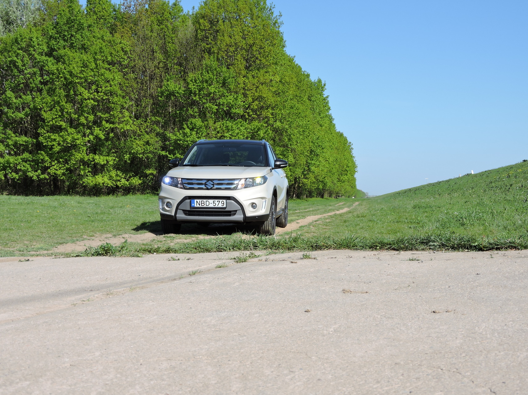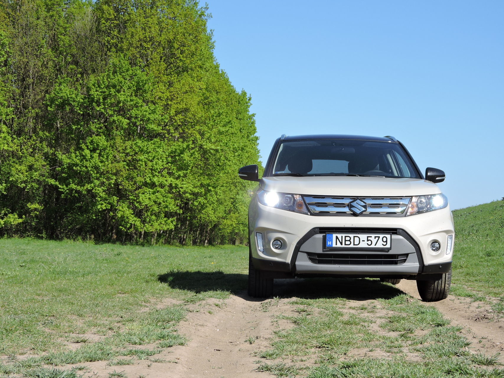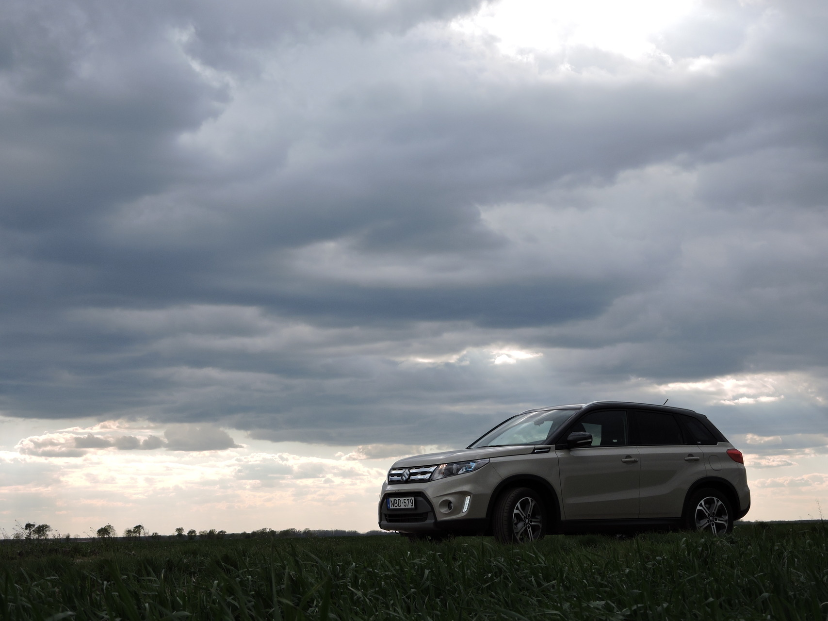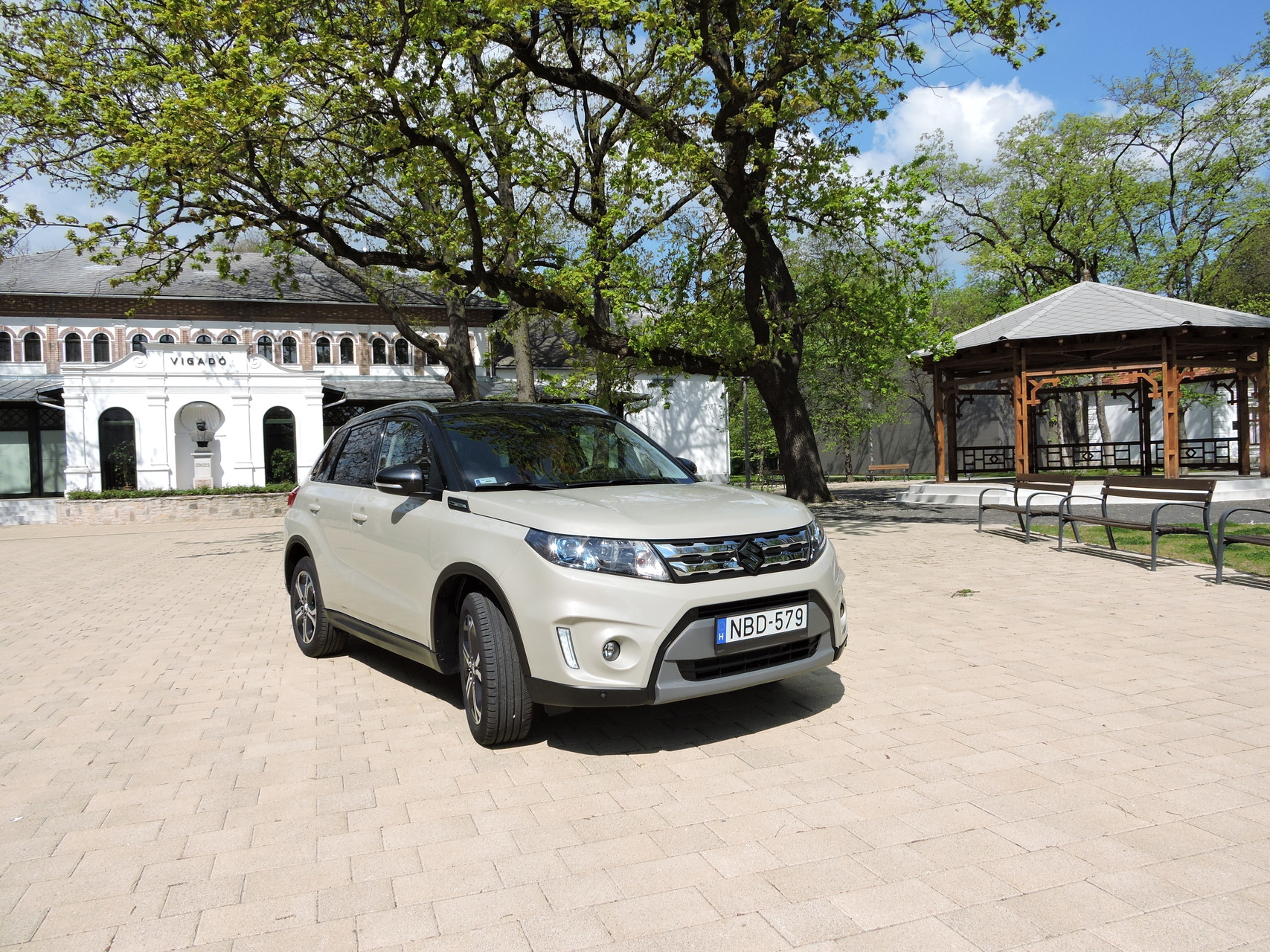 Az új Suzuki Vitara mérete elsőre megrettentett engem, a mini autókat kedvelő embert. A Gyula Autóház kereskedése előtt várt a két színre fújt, fullextrás 1,6-os benzines tesztautó. Ami a színeket illeti, három új is megtalálható a választékban. Érdemes és hasznos egy picit puskázni a Suzuki hivatalos websíkjáról, mert felettébb érdekes, ahogy és amit a színekről írnak.