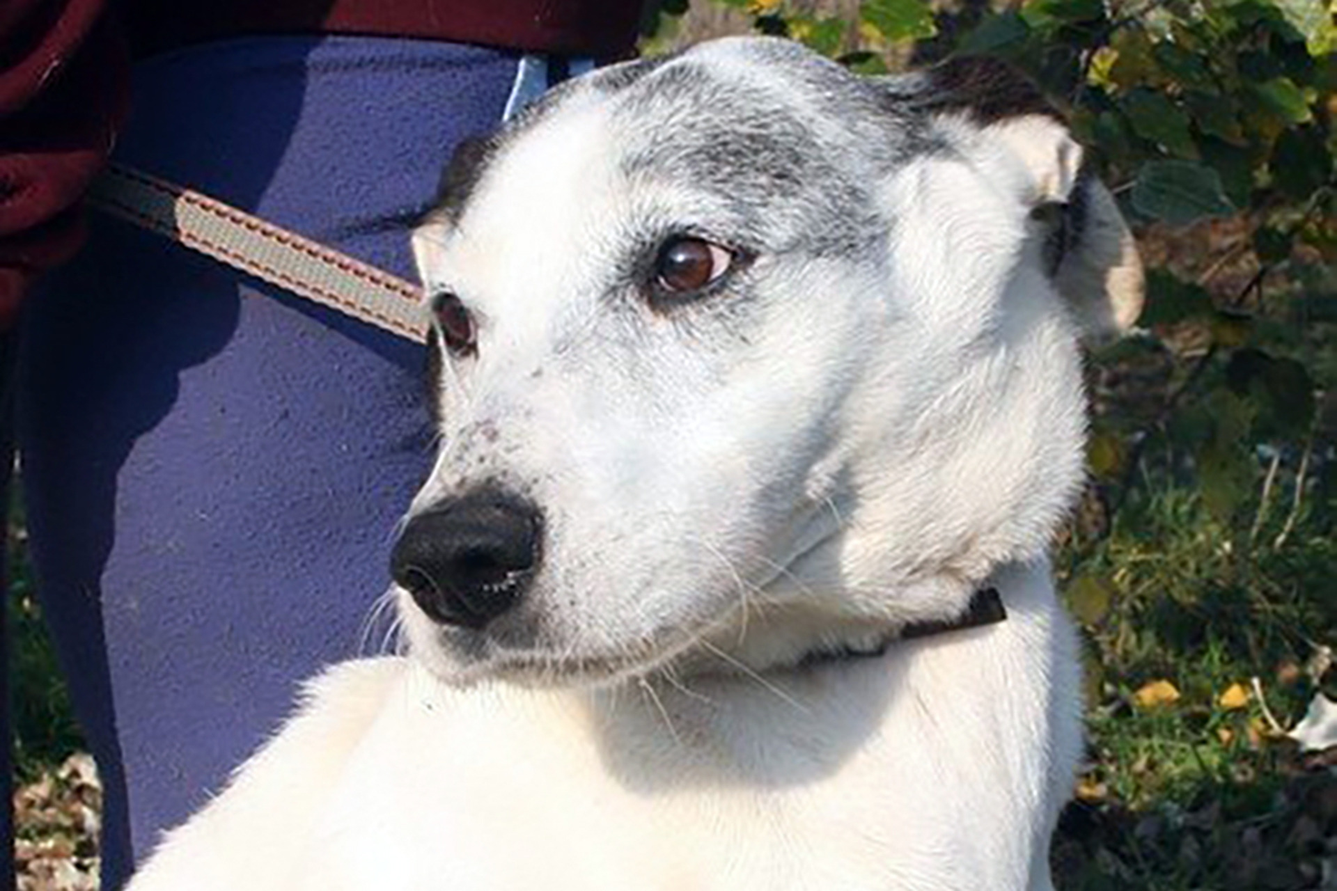 Liza 2013 márciusában került gondozásunkba. Szegény legalább egy hónapig kóborolt a városban, mire megfogtuk, már többen üldözték és lapáttal kergették, mert kéregetett. Lefogyva, betegen és vemhesen vettük gondozásba. Ma már teljesen egészségesen várja, hogy rátaláljon egy szerető gazdi.