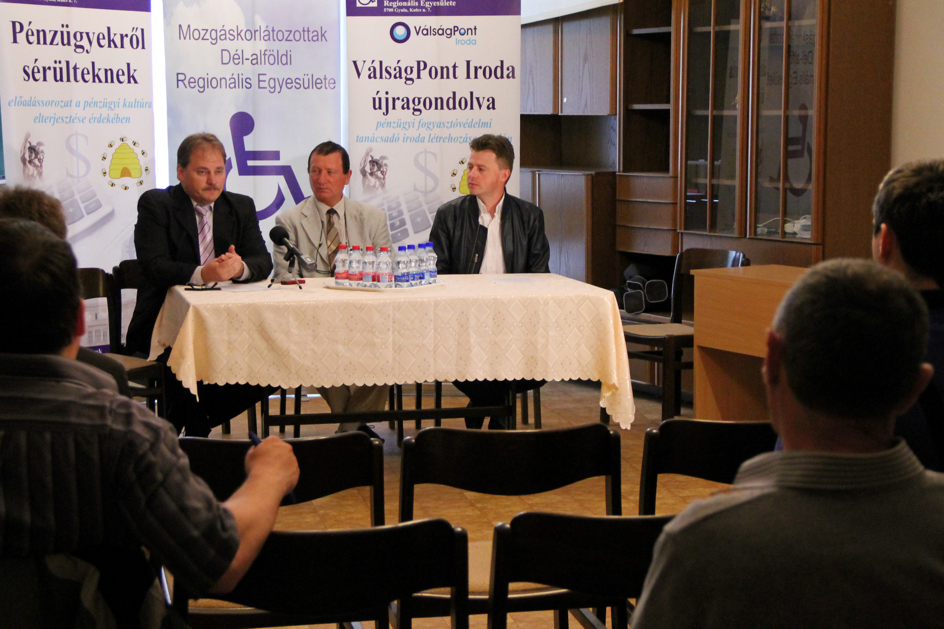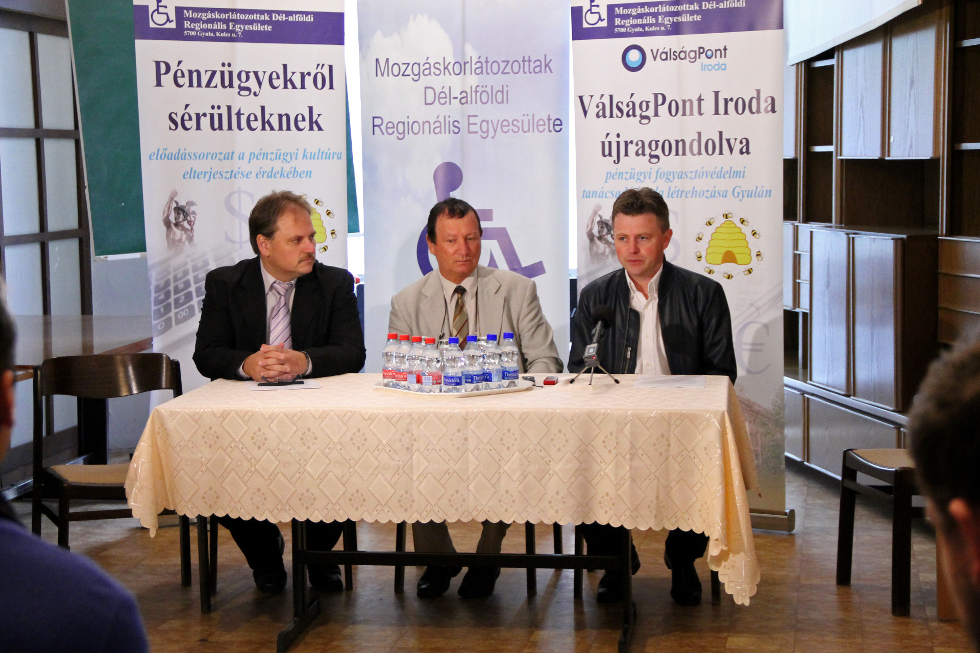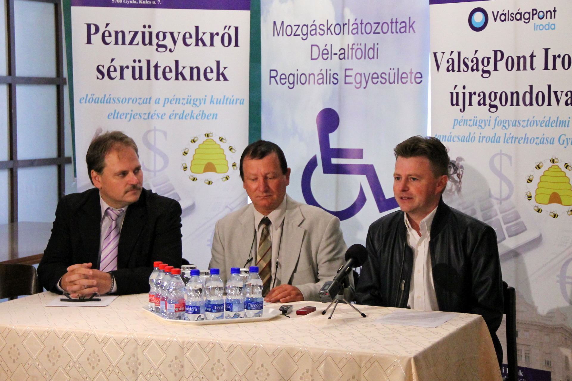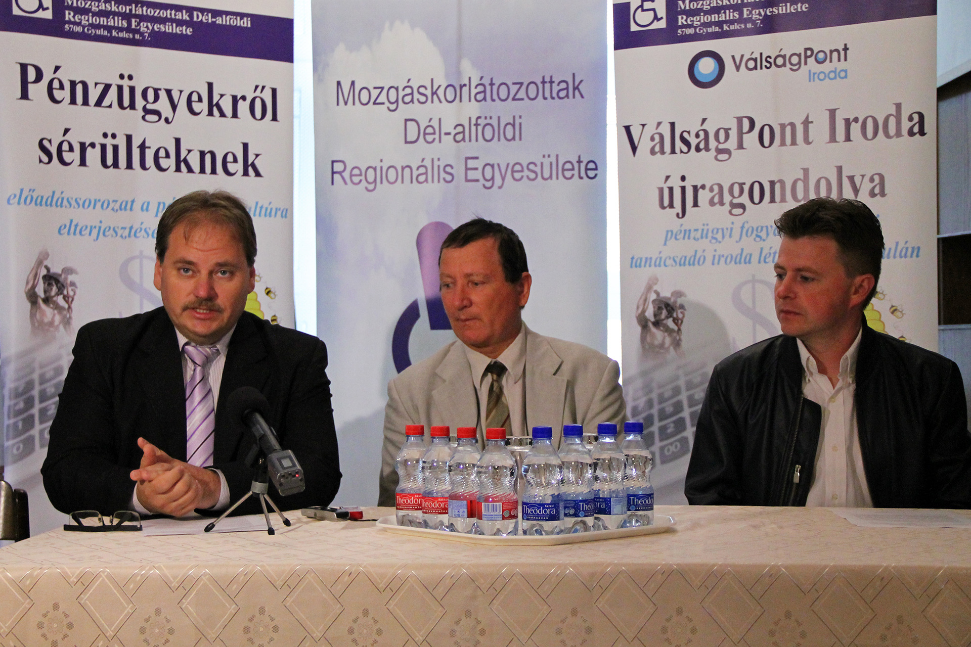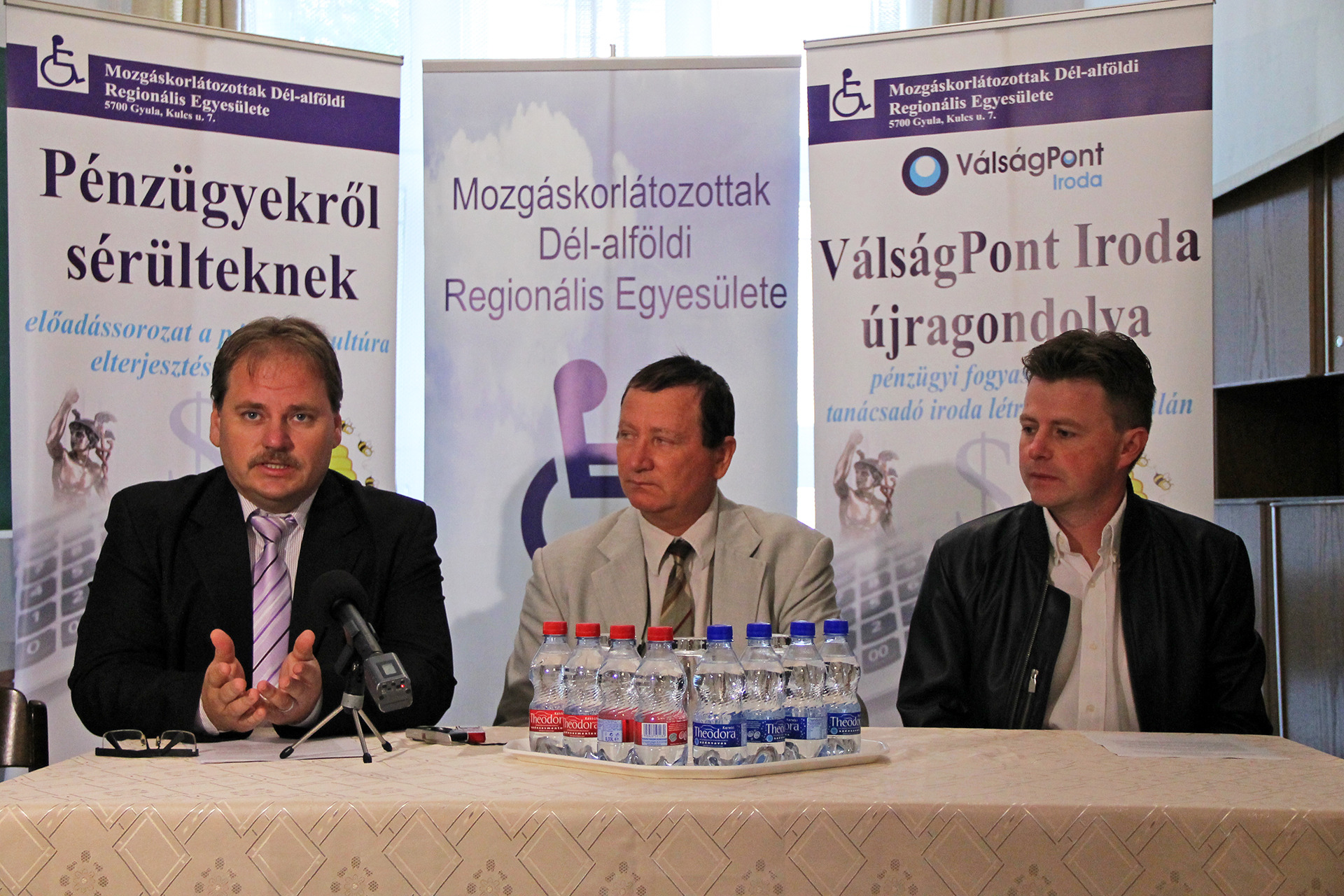 Csökkentett üzemmódban, de tovább működteti pénzügyi tanácsadói irodáját a Mozgáskorlátozottak Dél-alföldi Regionális Egyesülete. Bár idén májusban a szervezet "Válságpont Iroda újragondolva - Pénzügyi Fogyasztóvédelmi Iroda létrehozása Gyulán" és a "Pénzügyekről sérülteknek - Előadássorozat a pénzügyi kultúra elterjesztése érdekében" című projektjei lezárultak, az igényekhez igazodva az egyesület folytatni kívánja tanácsadói tevékenységét. A 2014-ben elindított projektek május 26-i záró sajtótájékoztatóján az elmúlt hónapok tapasztalatairól, valamint a további tervekről számoltak be az illetékesek.