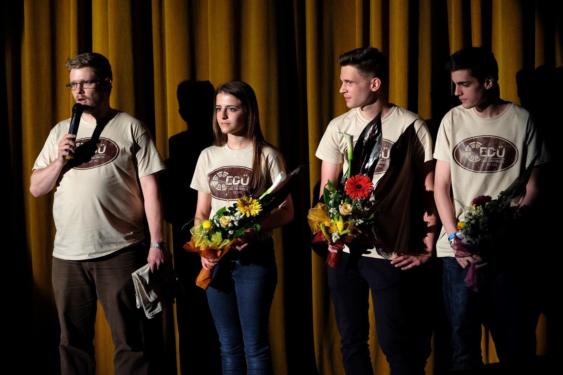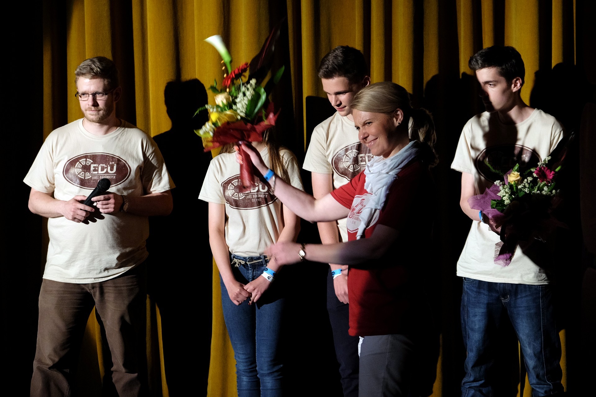 A műsorszámok és a díjak átadása során meglepetésként Szabó Enikő szervező és Balássy Fanni, a diákönkormányzat elnöke újra a publikum elé állt, hogy egy emlékplakett átnyújtásával köszönjék meg Ament Balázs állhatatos munkáját arra emlékeztetve, hogy az EDÜ-t 2017-ben újra meg kell szerveznie. Az elismerést a mintegy 60 fős stábja nevében megköszönő szervező hangsúlyozta, ehhez a jövőbeni munkához három tényező szükséges: akarat, lelkes szervező csapat és a városba ellátogató tehetséges diákok. A nézőtéren ekkor újra felhangzott az este folyamán már sokadszor kórusban ismételt szlogen, miszerint: „EDÜ volt, EDÜ van, EDÜ lesz!”