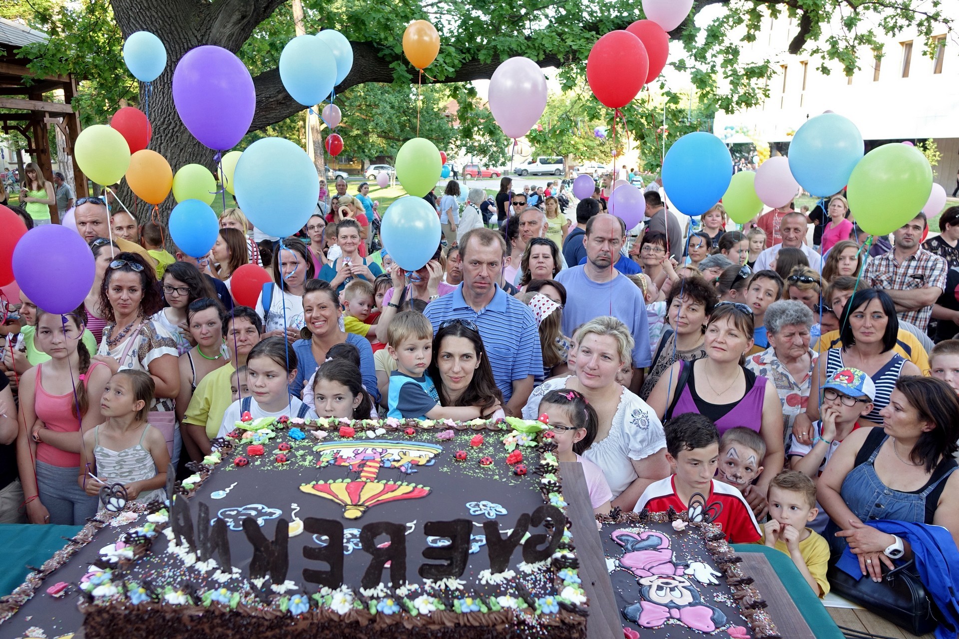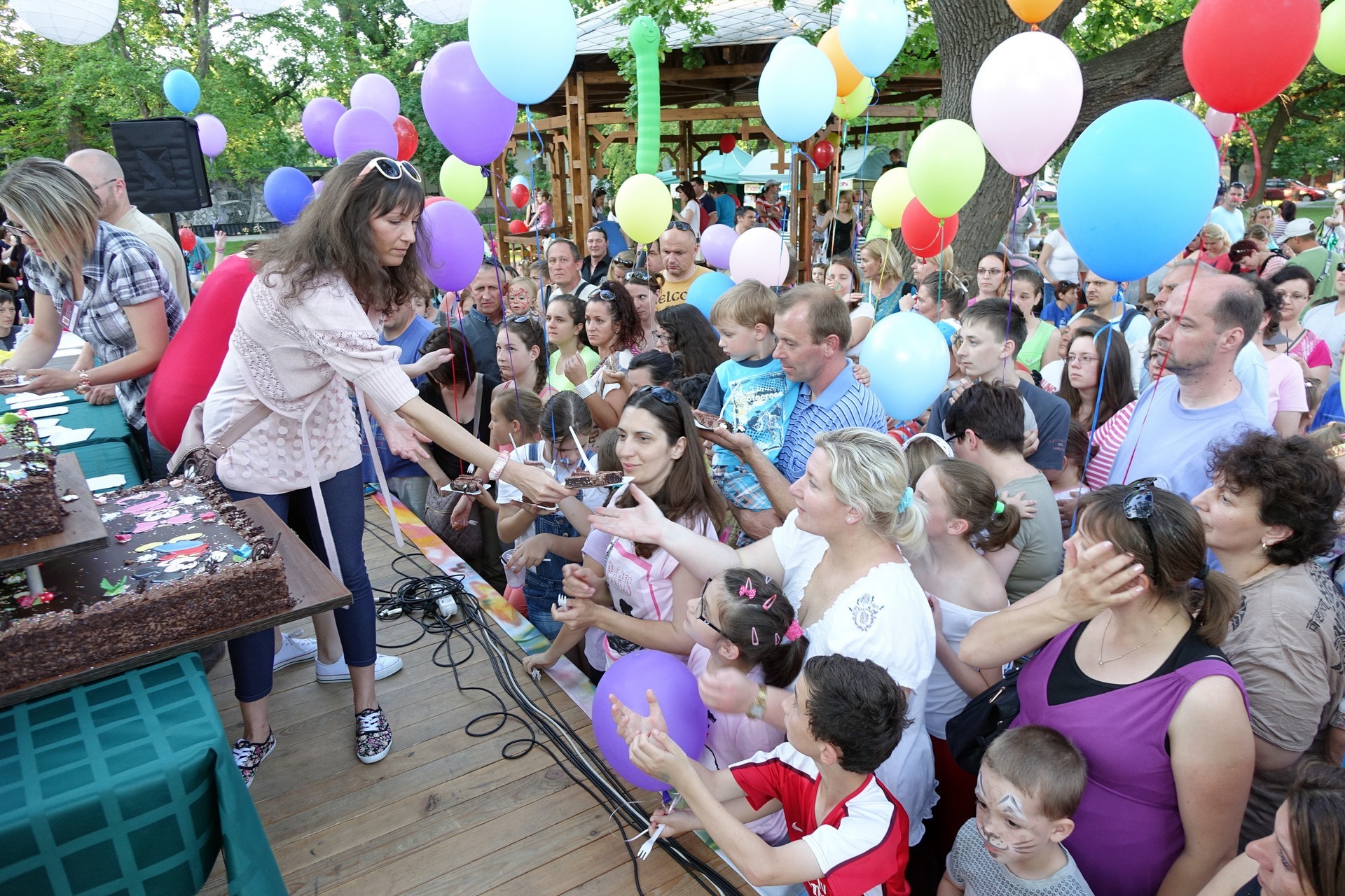 a gyereknapi rendezvényen egy óriástortát is szétosztottak