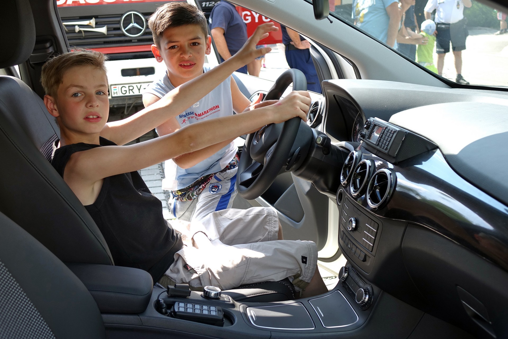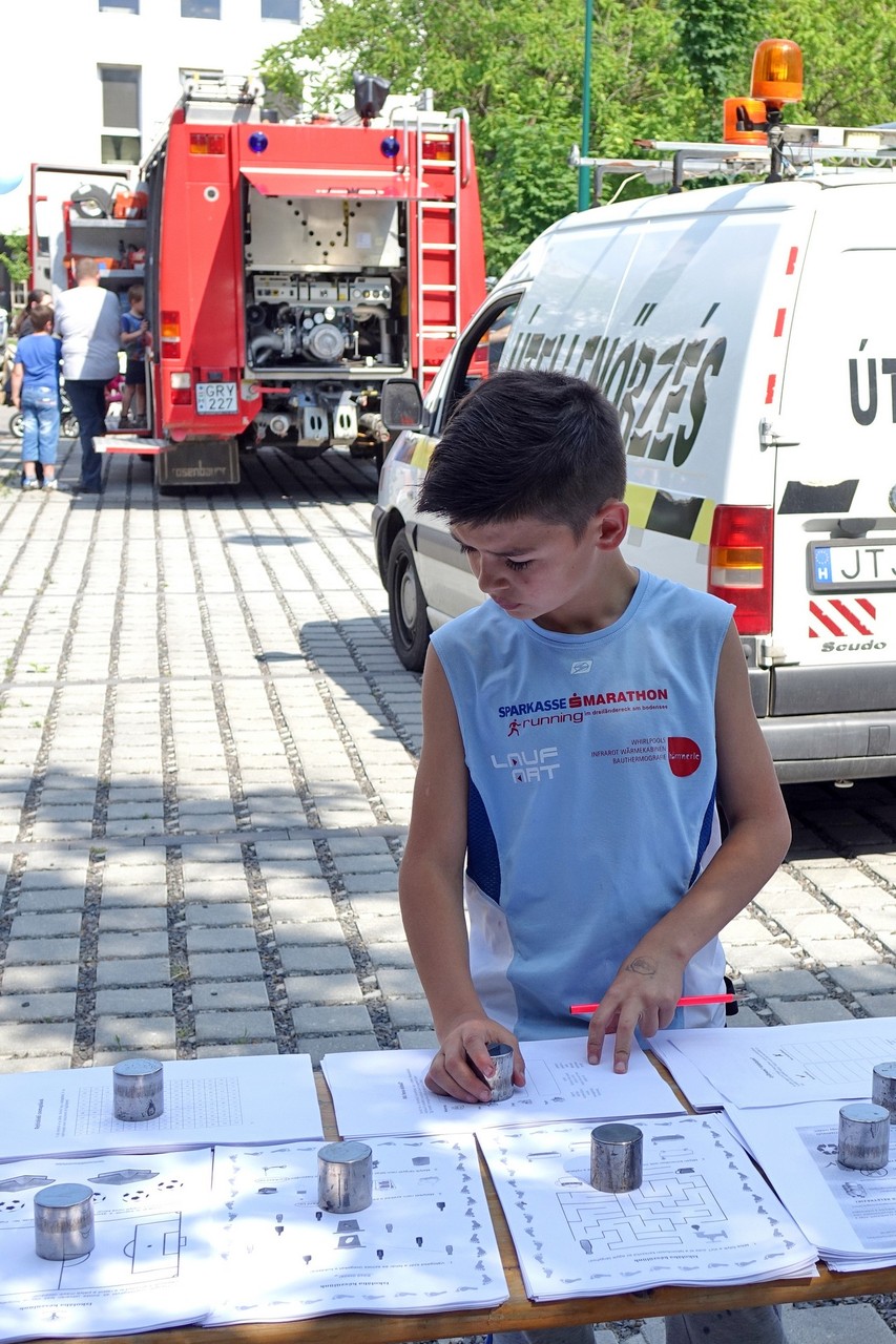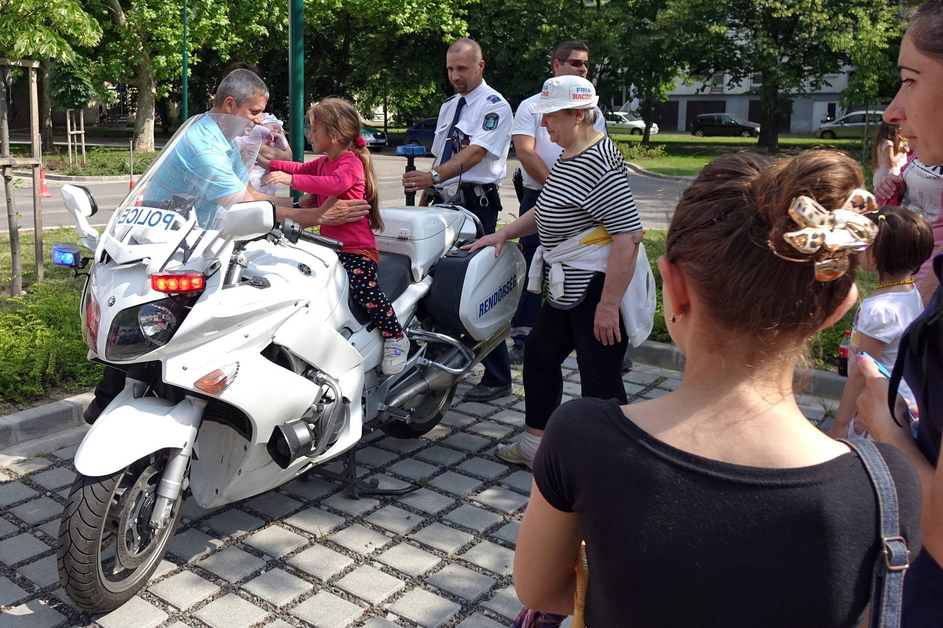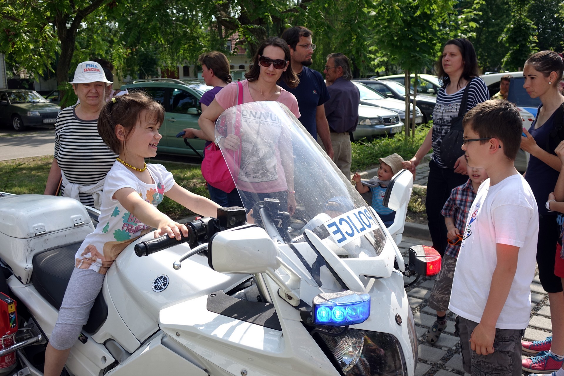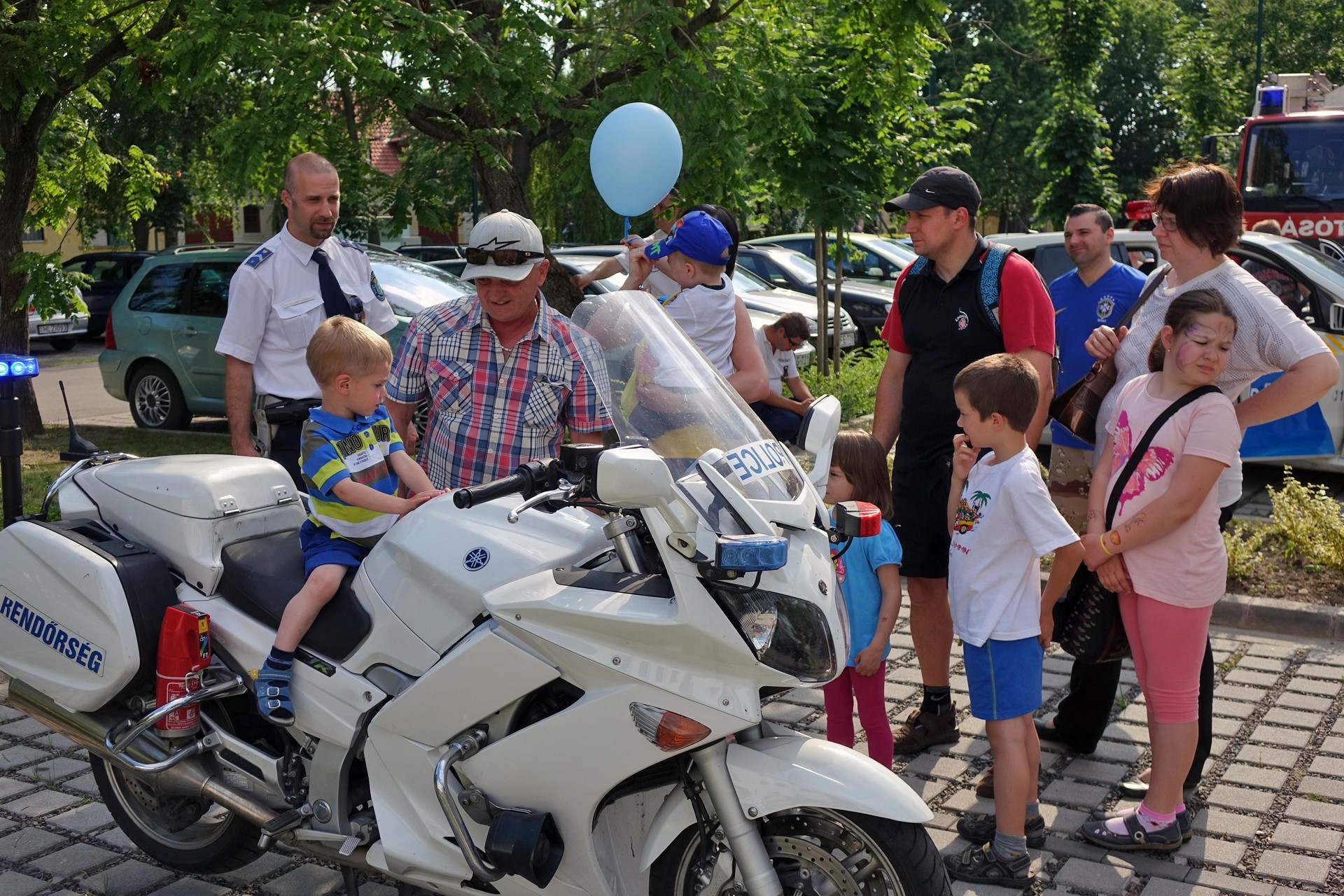 – Kipróbáltam az ugrálóvárat, a rendőrmotort, beültem a rabszállító kocsiba és a tűzoltókocsiba, ettem pattogatott kukoricát és vattacukrot, és kaptam lufit is – sorolta Tázló Dávid, hogy mi mindent csinált gyereknapon. A nyolcéves kisfiú érdeklődésünkre arról is beszámolt: a legnagyobb élmény az volt számára, amikor felvehette a tűzoltósisakot.