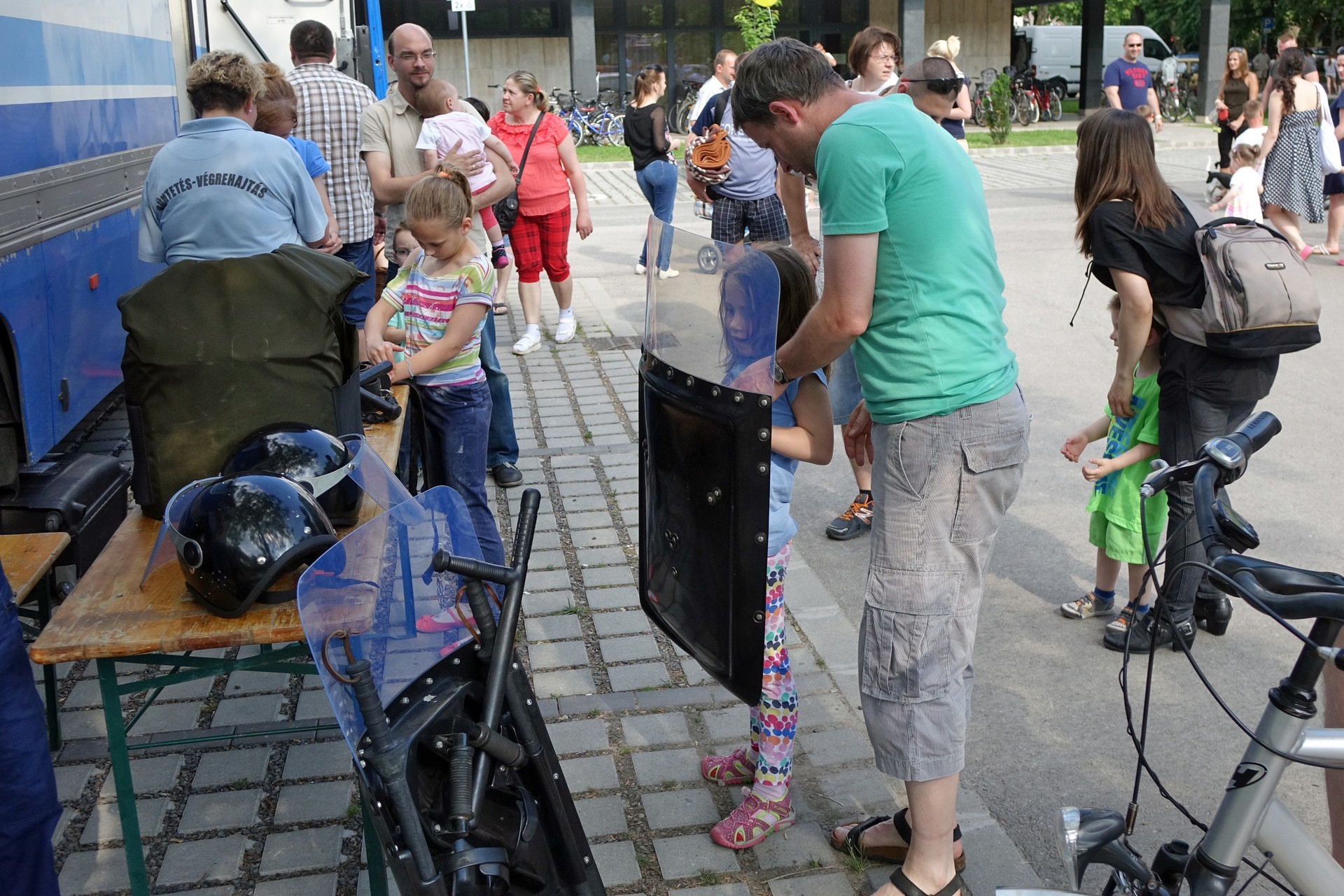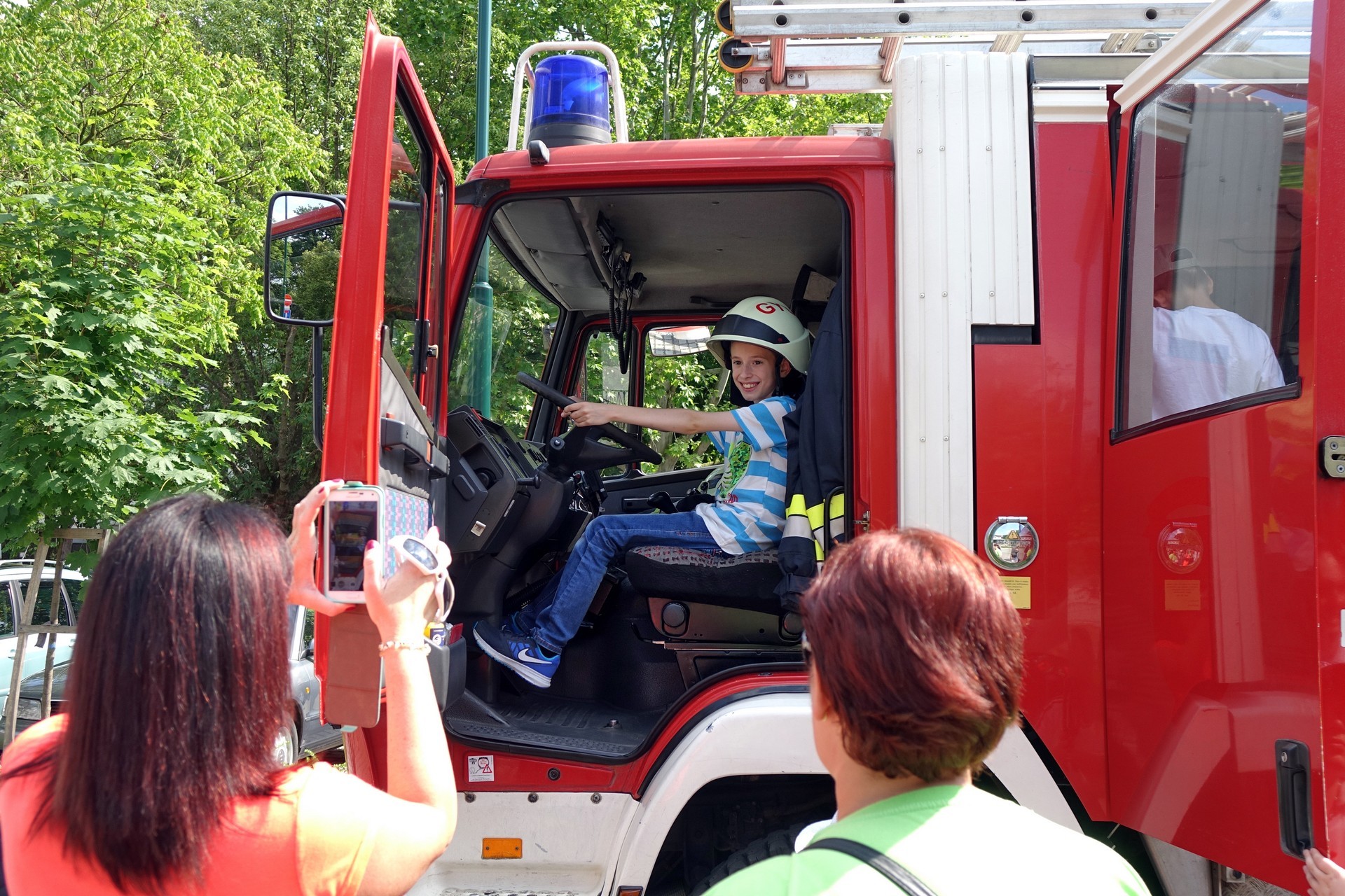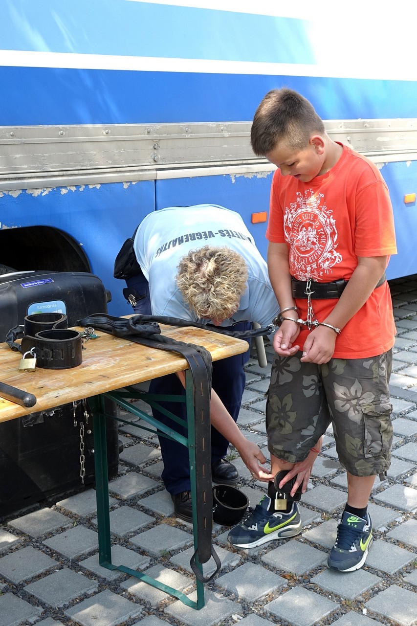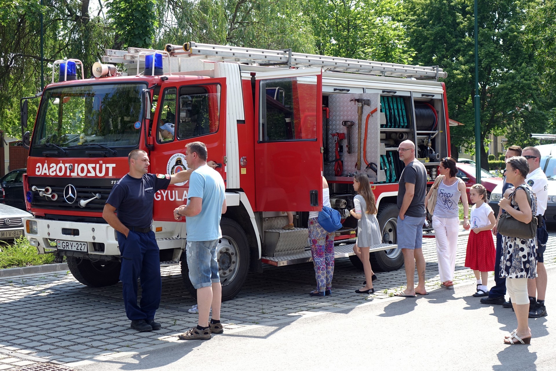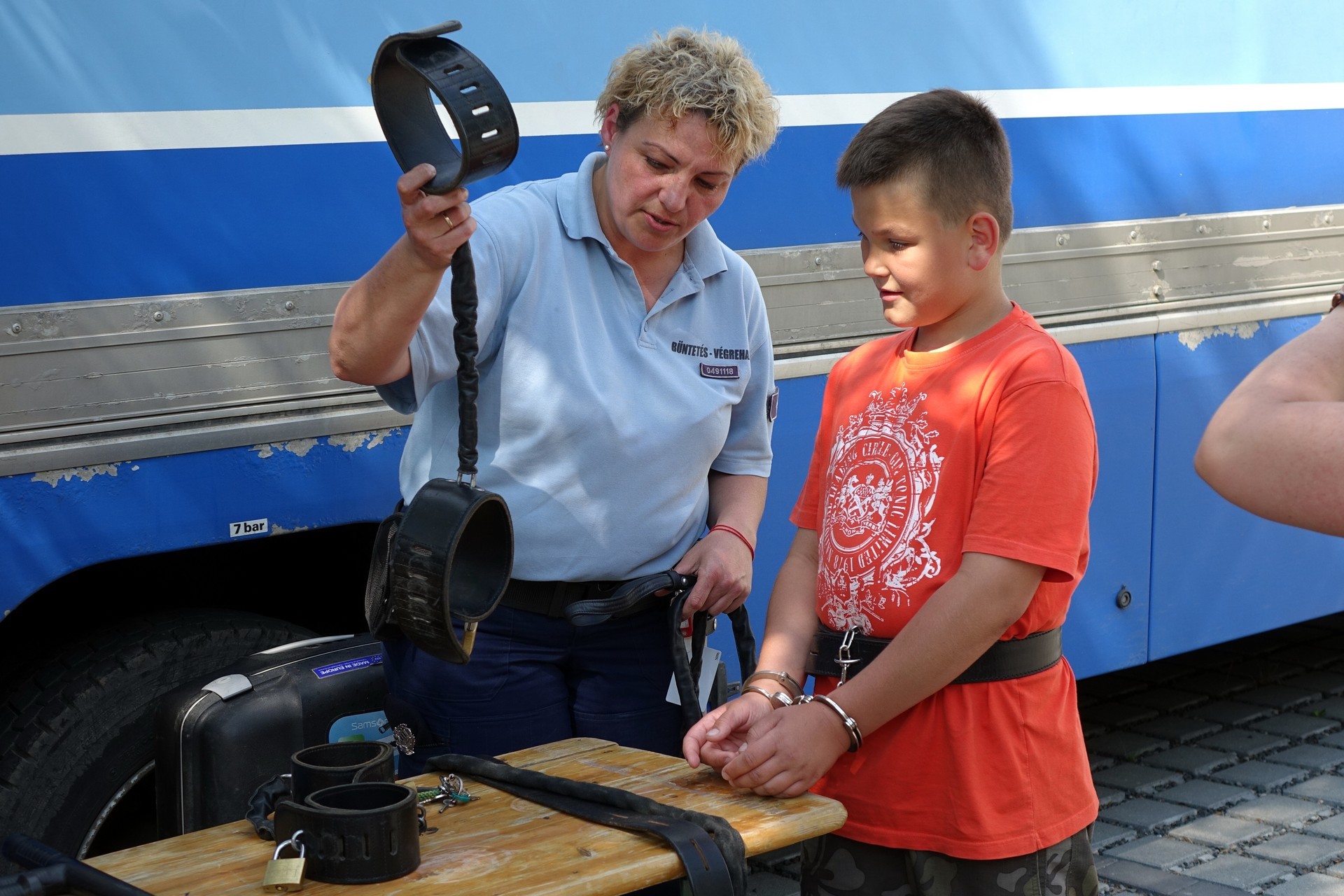 – Kipróbáltam az ugrálóvárat, a rendőrmotort, beültem a rabszállító kocsiba és a tűzoltókocsiba, ettem pattogatott kukoricát és vattacukrot, és kaptam lufit is – sorolta Tázló Dávid, hogy mi mindent csinált gyereknapon. A nyolcéves kisfiú érdeklődésünkre arról is beszámolt: a legnagyobb élmény az volt számára, amikor felvehette a tűzoltósisakot.