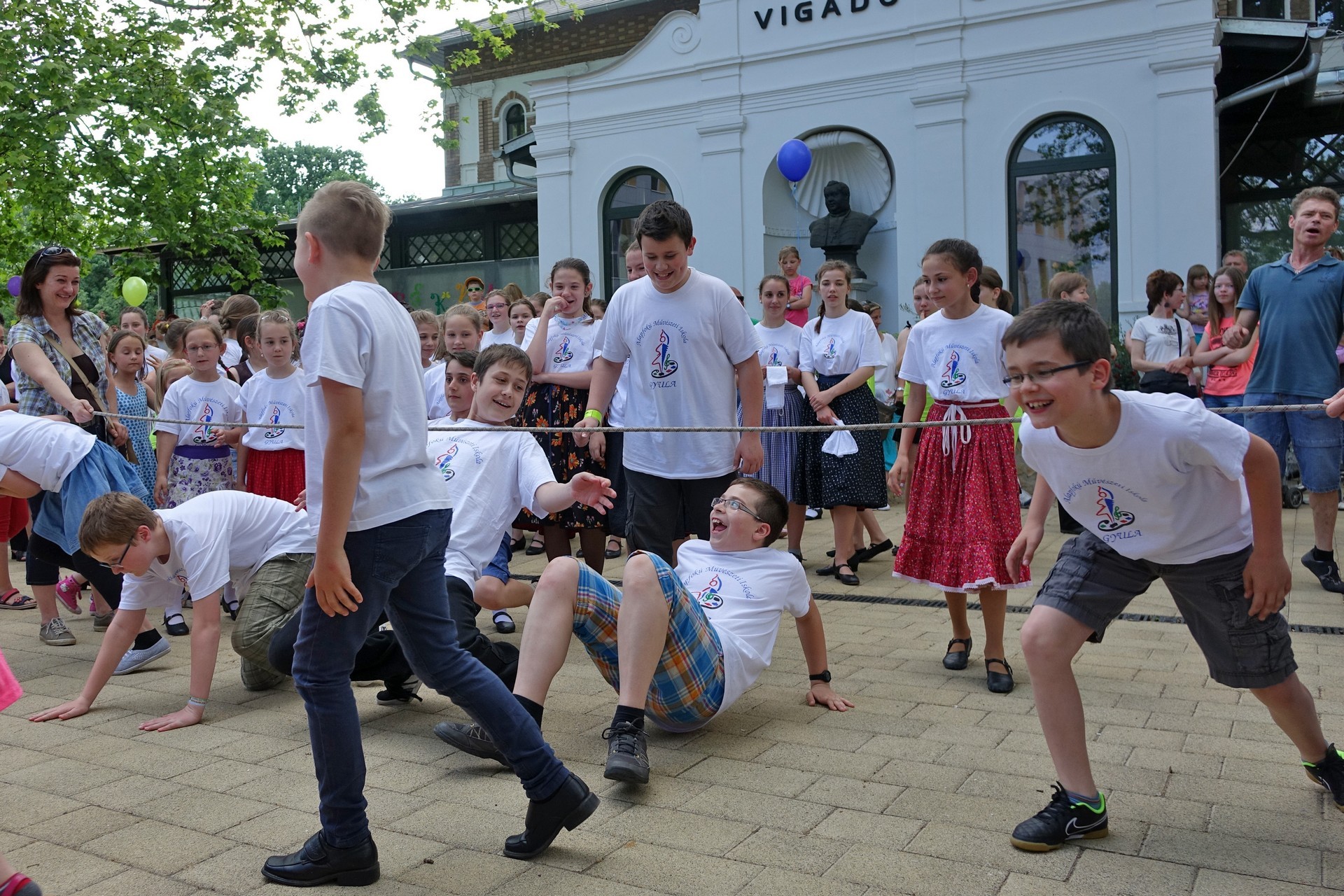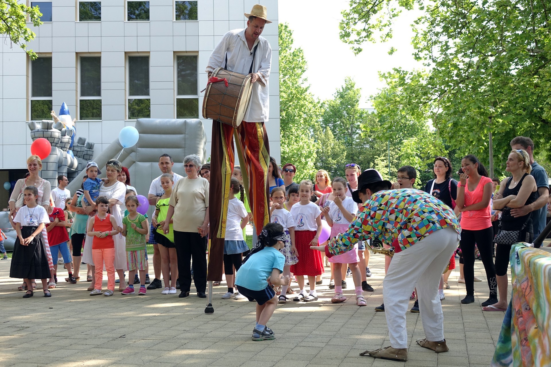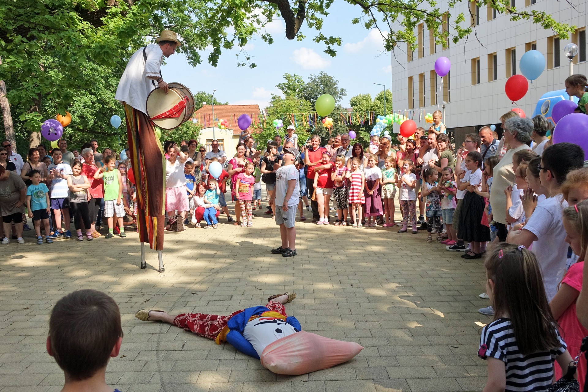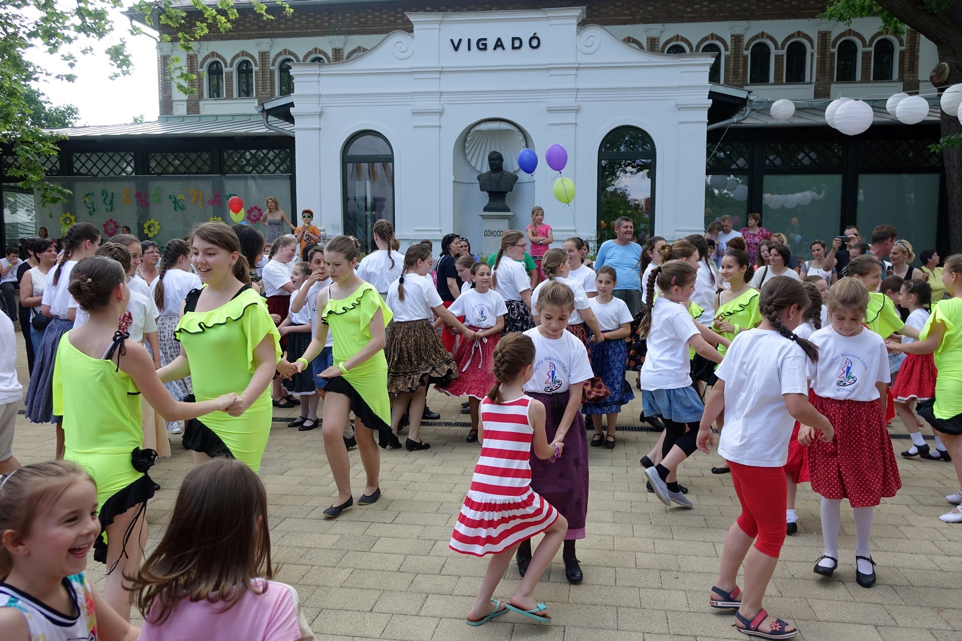A Vigadó előtti téren és az ott felállított színpadon egymást váltották a fellépők: a NewFolderS nevű gyerekzenekar koncertje után gólyalábasok szórakoztatták a kicsiket, majd a 20 éves születésnapját ünneplő Erkel Ferenc Alapfokú Művészeti iskola növendékei tartottak interaktív bemutatót. A rendezvény zárásaként Farkasházi Réka és a Tintanyúl zenélt a családoknak, és egy ötszáz szeletes csokitortát is szétosztottak a gyerekek között.