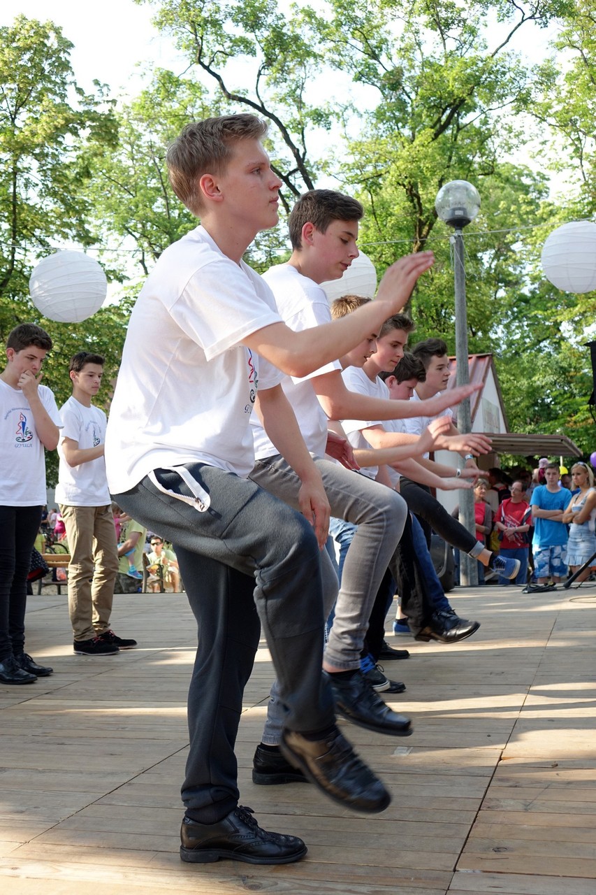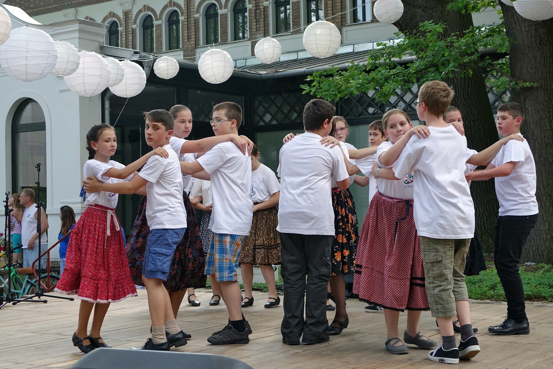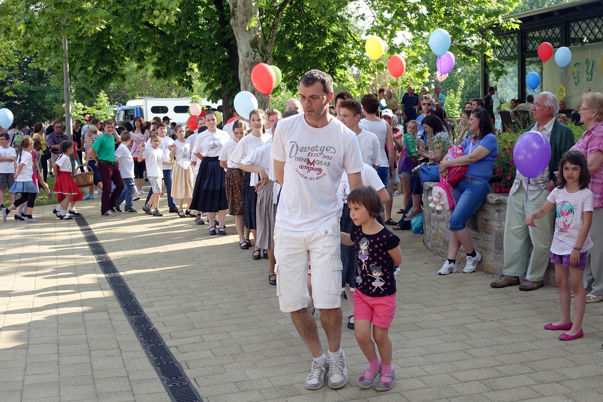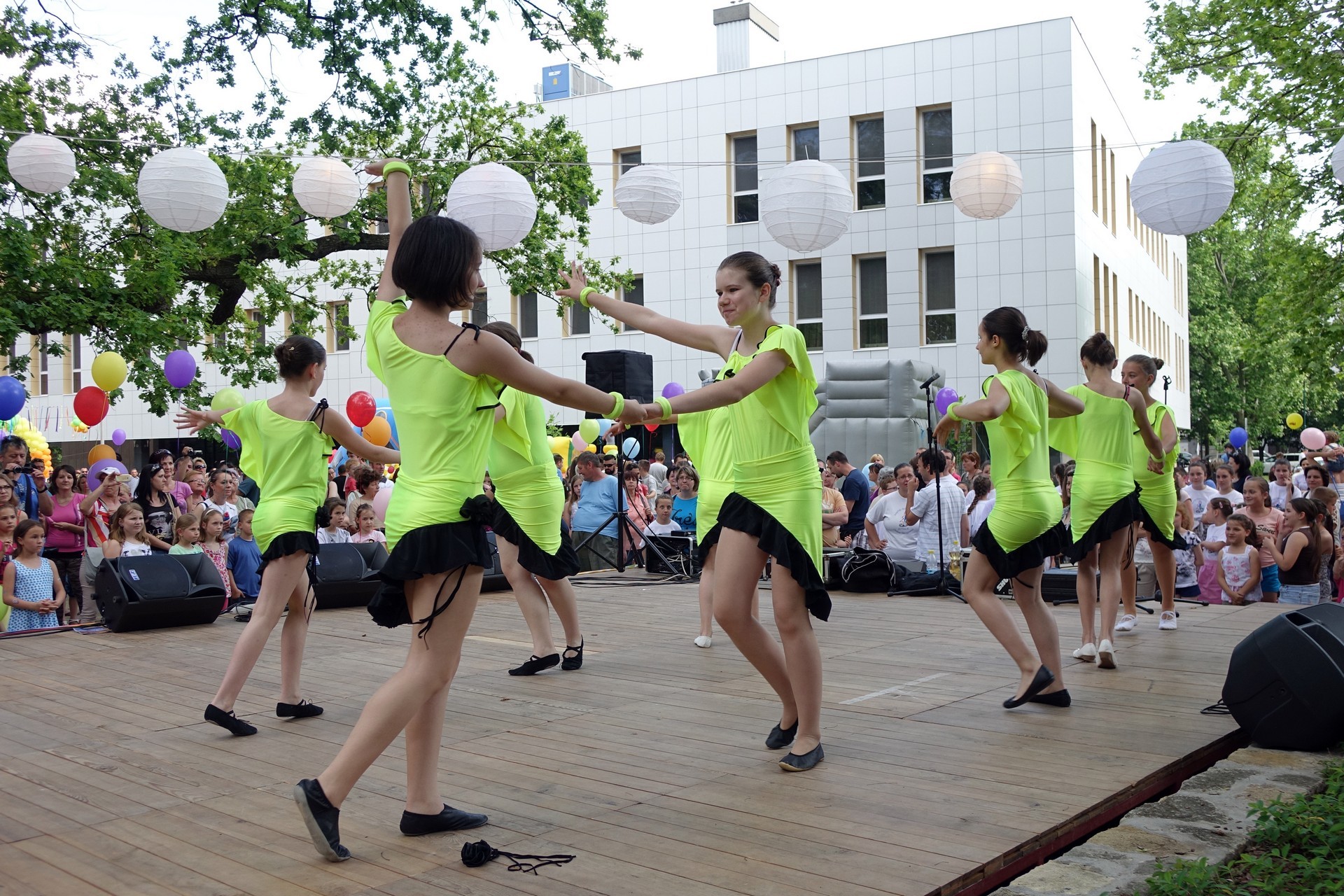 A Vigadó előtti téren és az ott felállított színpadon egymást váltották a fellépők: a NewFolderS nevű gyerekzenekar koncertje után gólyalábasok szórakoztatták a kicsiket, majd a 20 éves születésnapját ünneplő Erkel Ferenc Alapfokú Művészeti iskola növendékei tartottak interaktív bemutatót. A rendezvény zárásaként Farkasházi Réka és a Tintanyúl zenélt a családoknak, és egy ötszáz szeletes csokitortát is szétosztottak a gyerekek között.